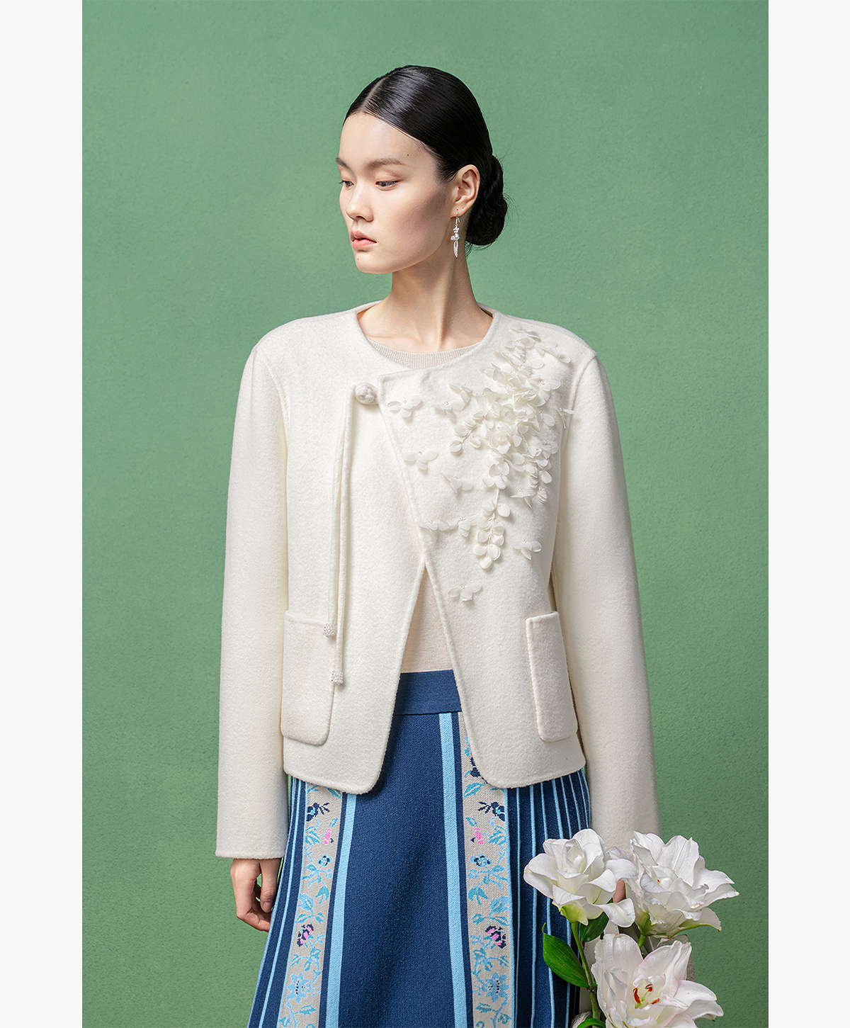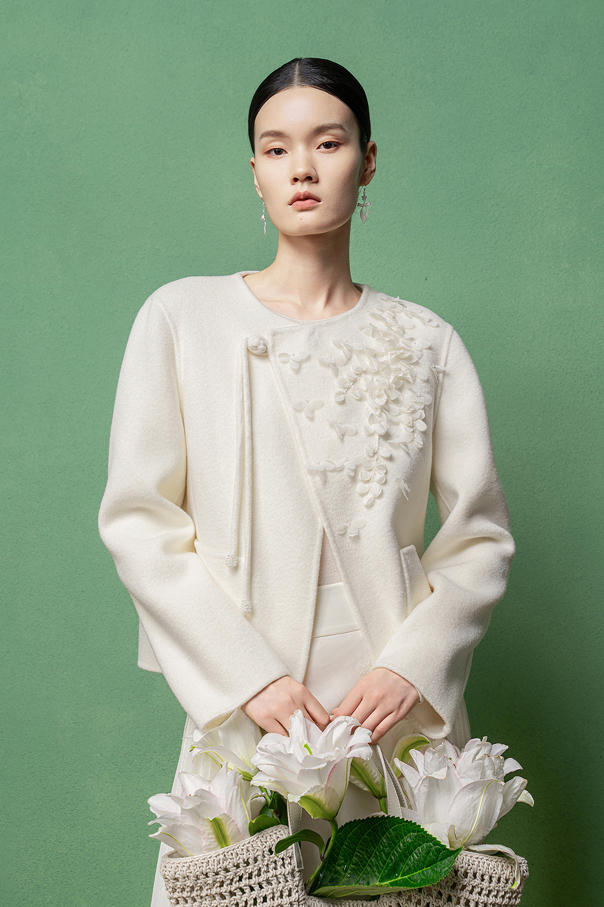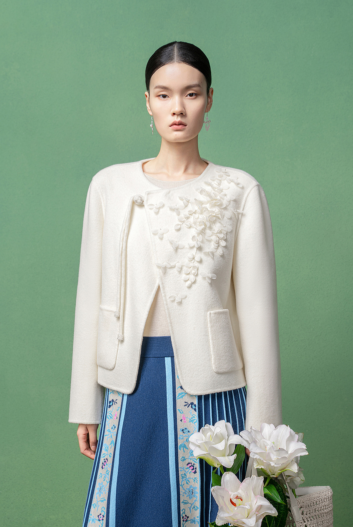 【林栖设计小店】(现货)绵羊毛双面呢手工钉花2025秋冬新款外套女1954069