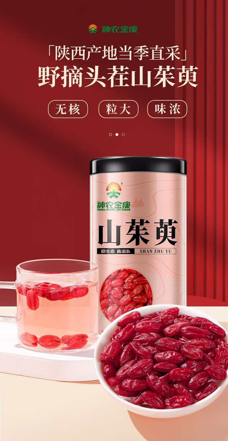 神农金康 山茱萸250克/罐 去核茱萸果干 原生态真滋补喝护家人健康