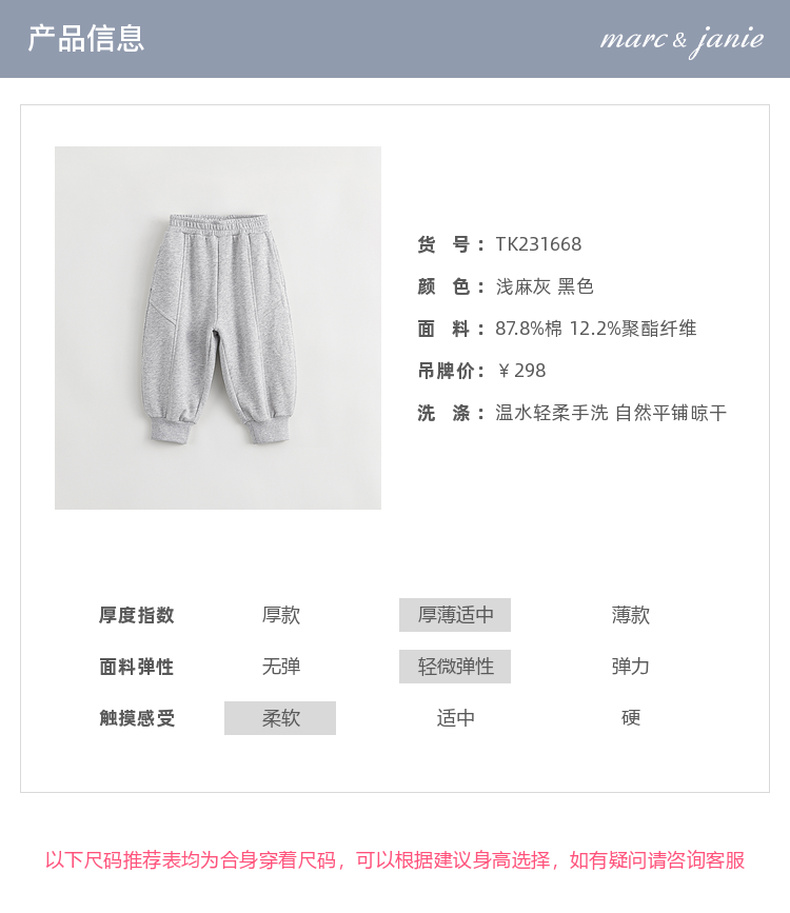 马克珍妮秋装新款 男童超舒棉户外风抽绳束脚运动裤231668