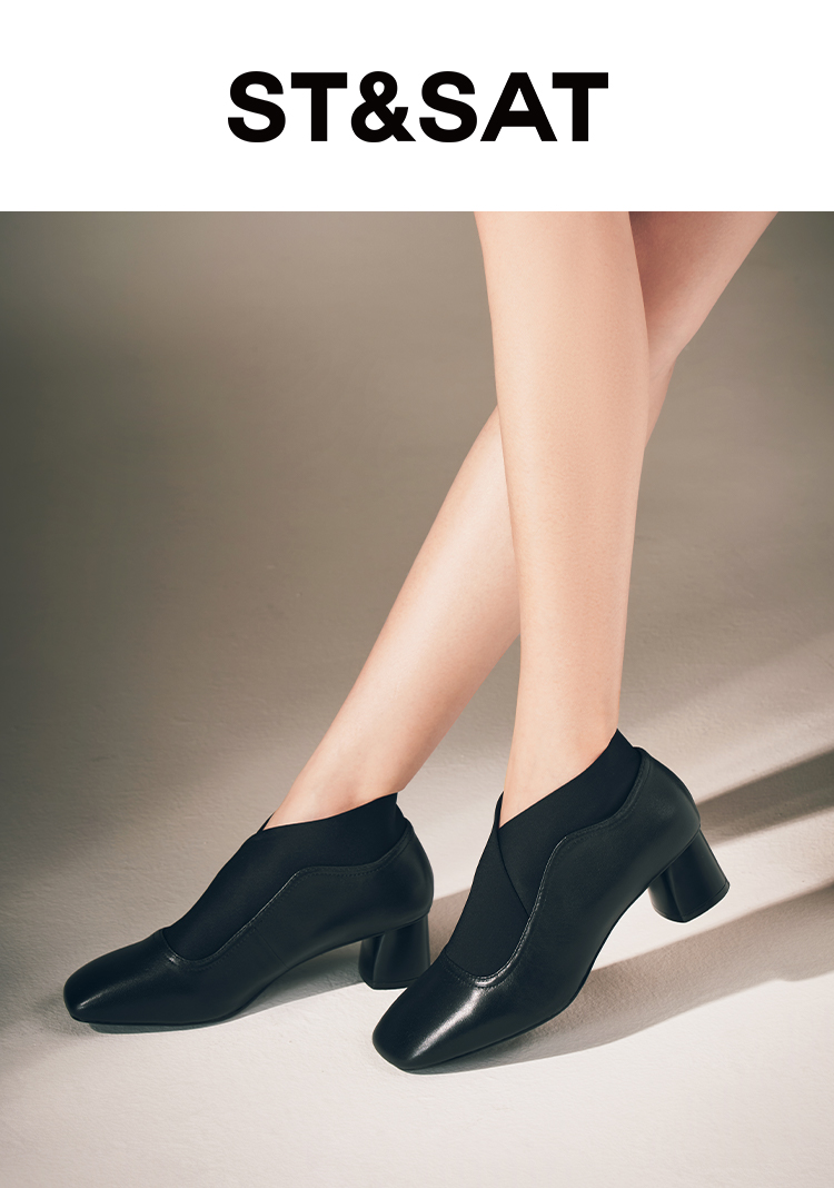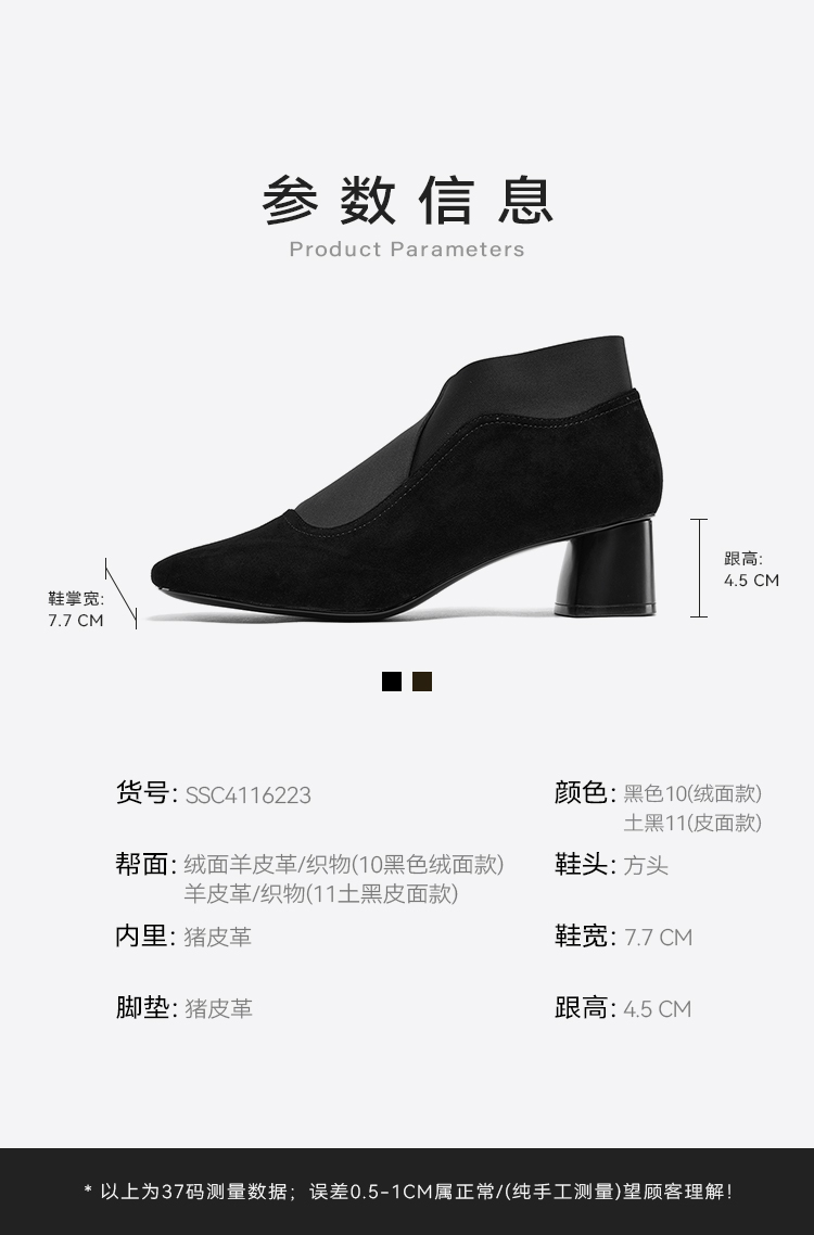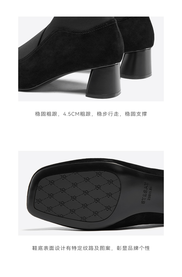 星期六简约素面弹力中粗跟踝靴SSC4116223