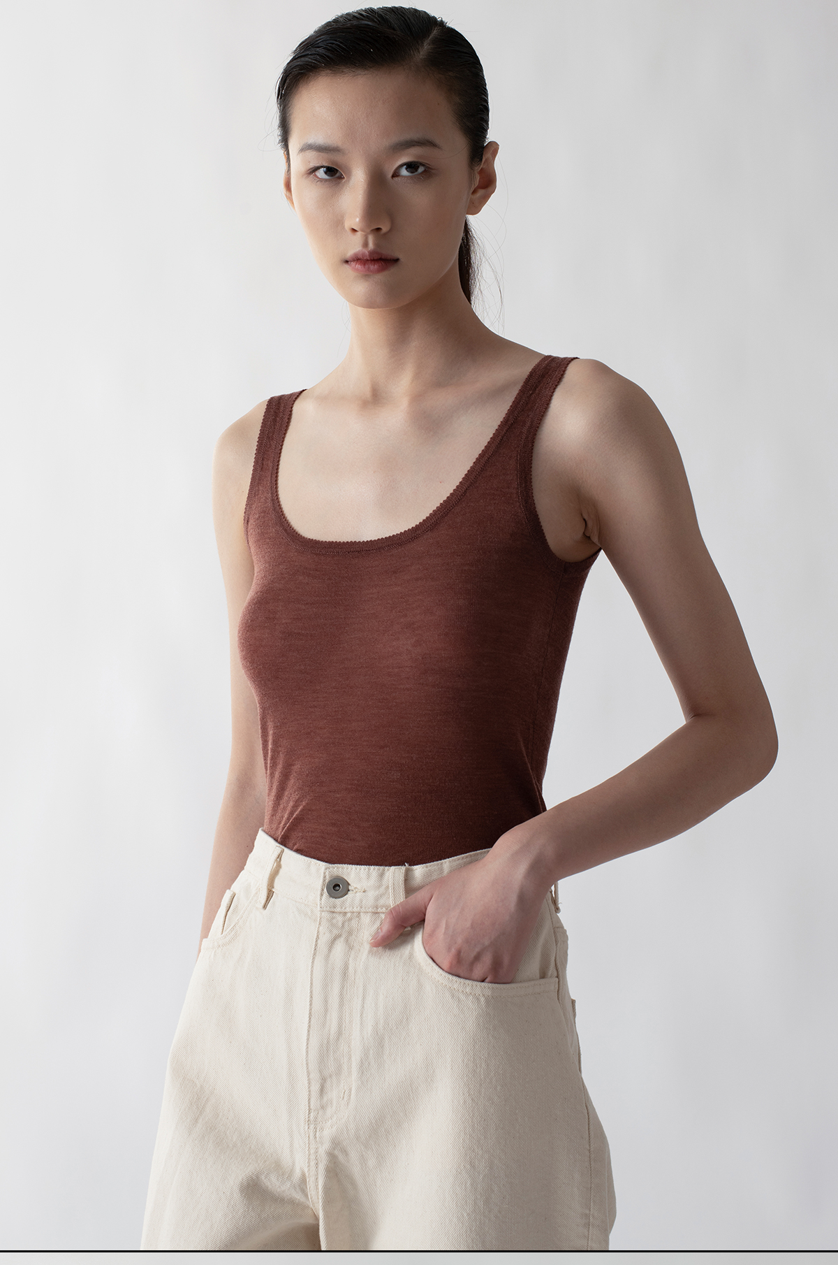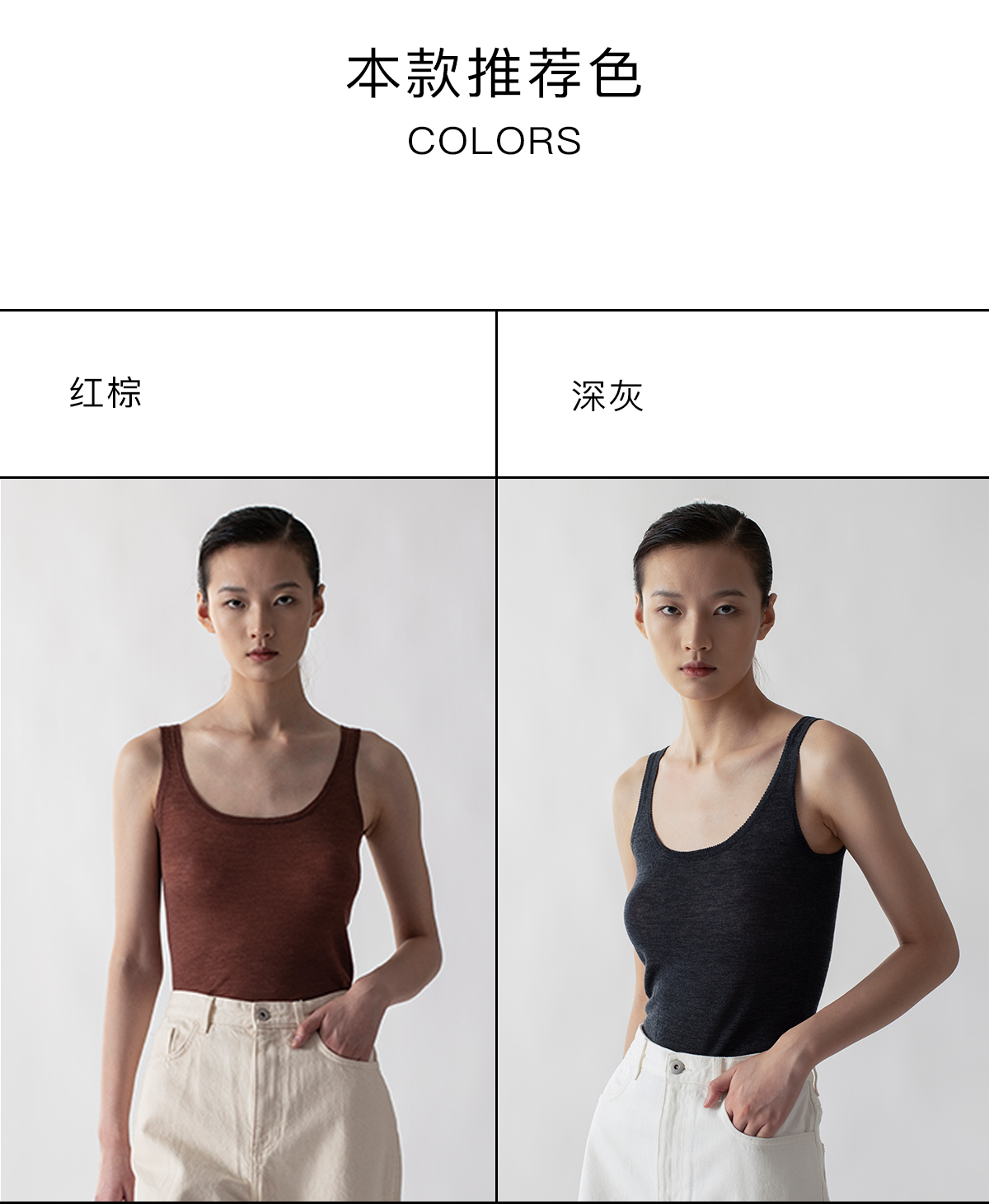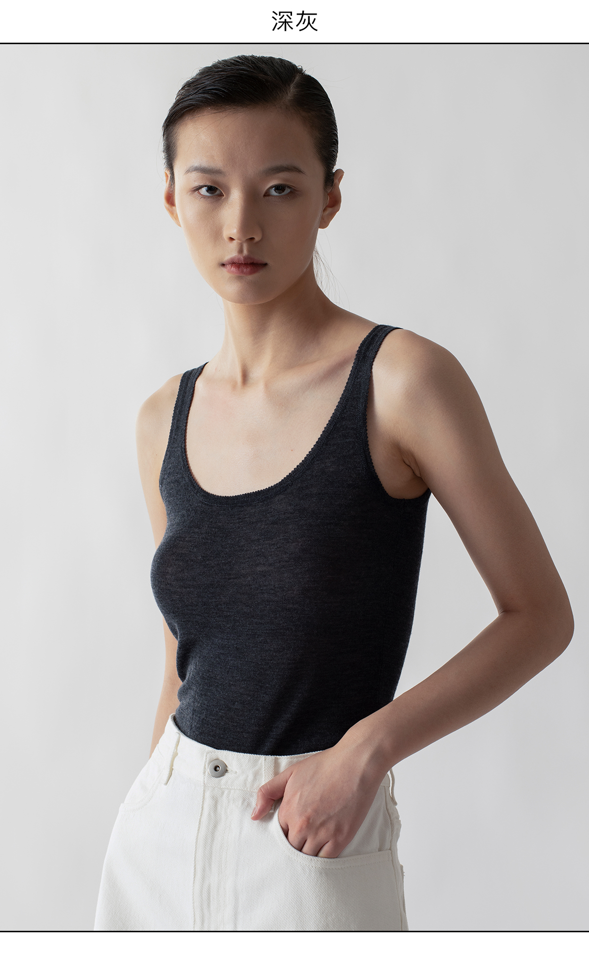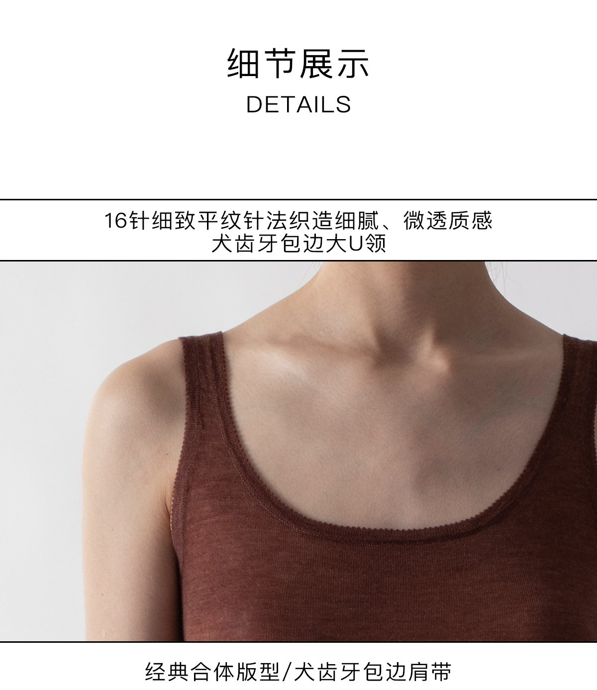 322工房透视吊带B备打底背心2022年秋冬新款丝光羊毛修身纯色吊带