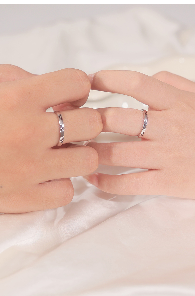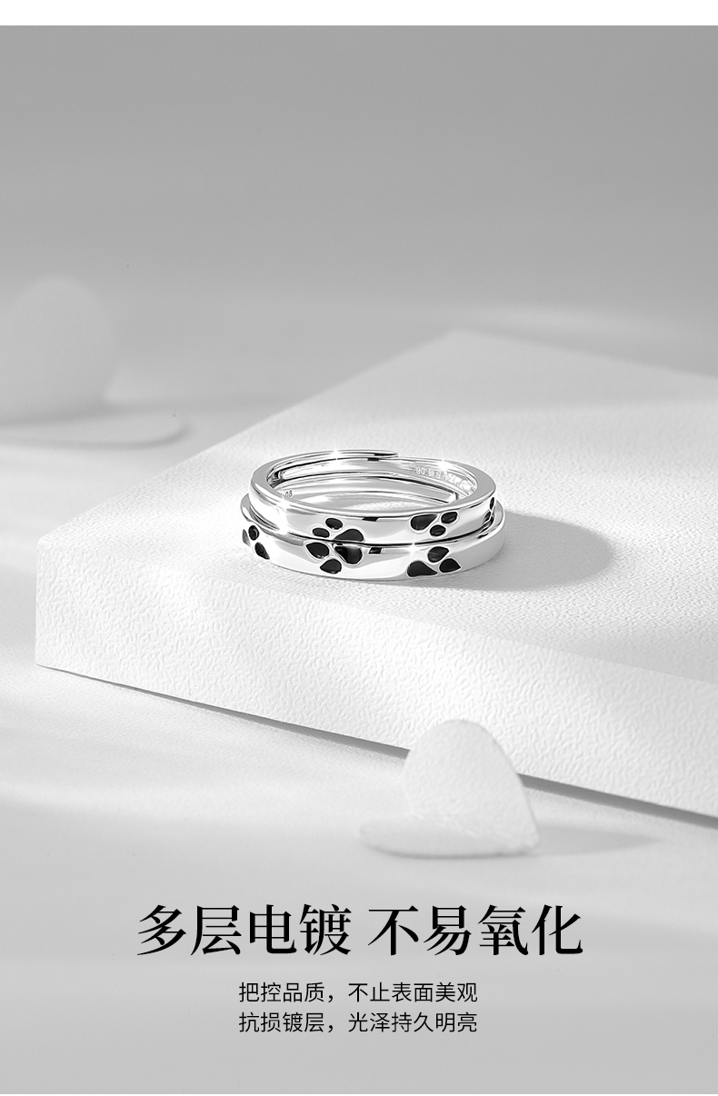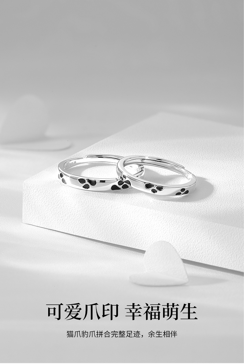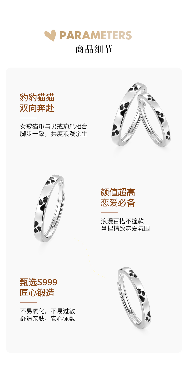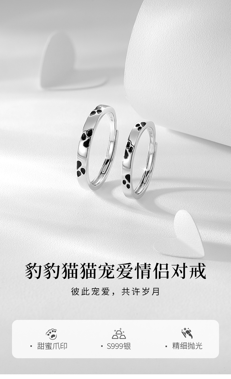 【999足银】卡蒂罗KADER 豹豹猫猫宠爱情侣对戒 萌趣涂鸦独特守护挚爱原创小众设计素圈可调节戒 轻奢百搭