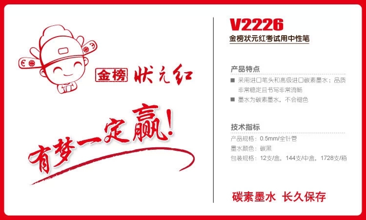 真彩状元红V2226中性笔一盒12支
