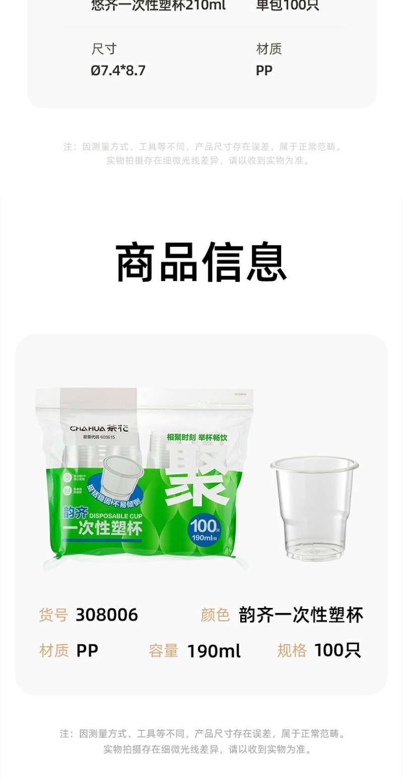 【茶花】一次性加厚塑料杯派对聚会水杯