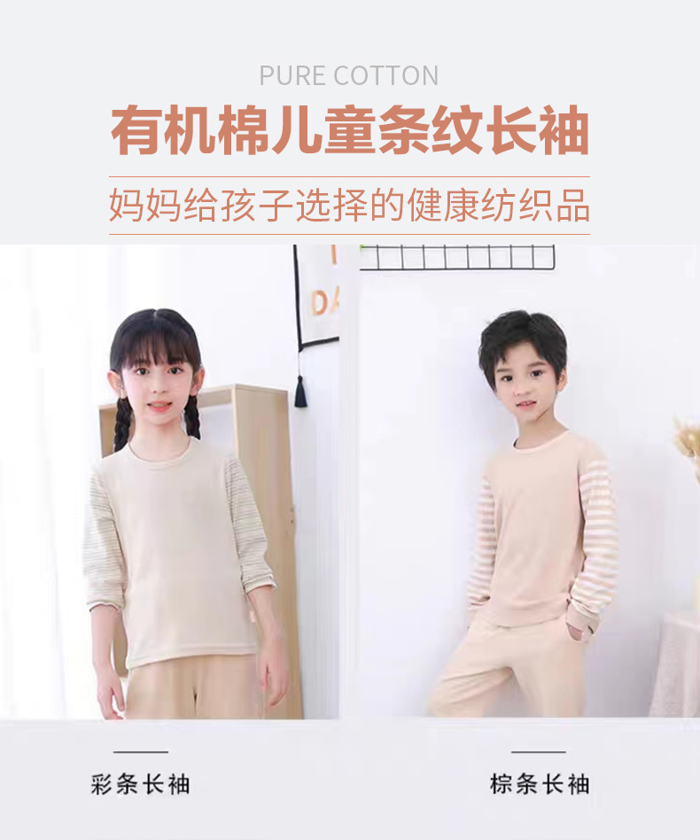 【儿童条纹长袖】100%棉,素道有机彩棉-A类男女童纯棉圆领长袖(基地直发-申通包邮),来自敦煌,品牌:素道【合作生产,公平贸易】