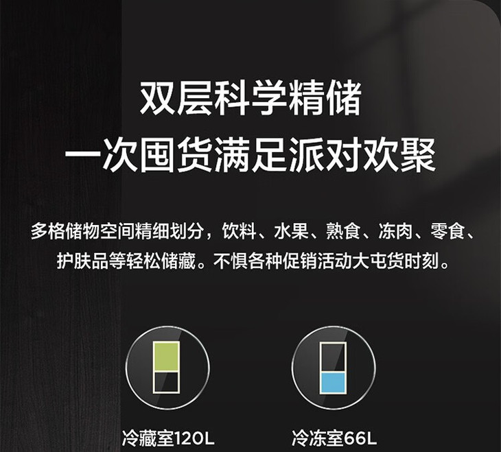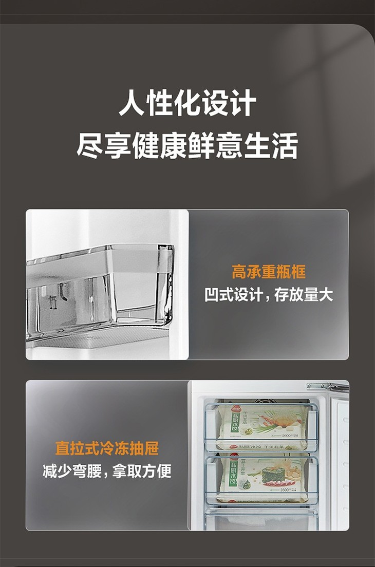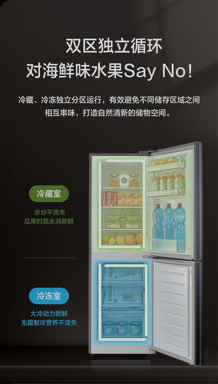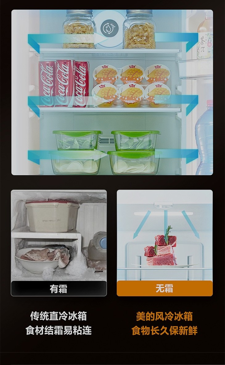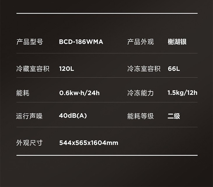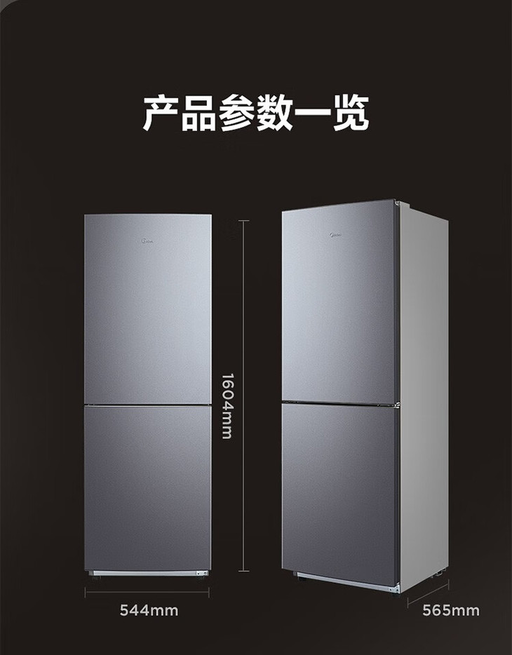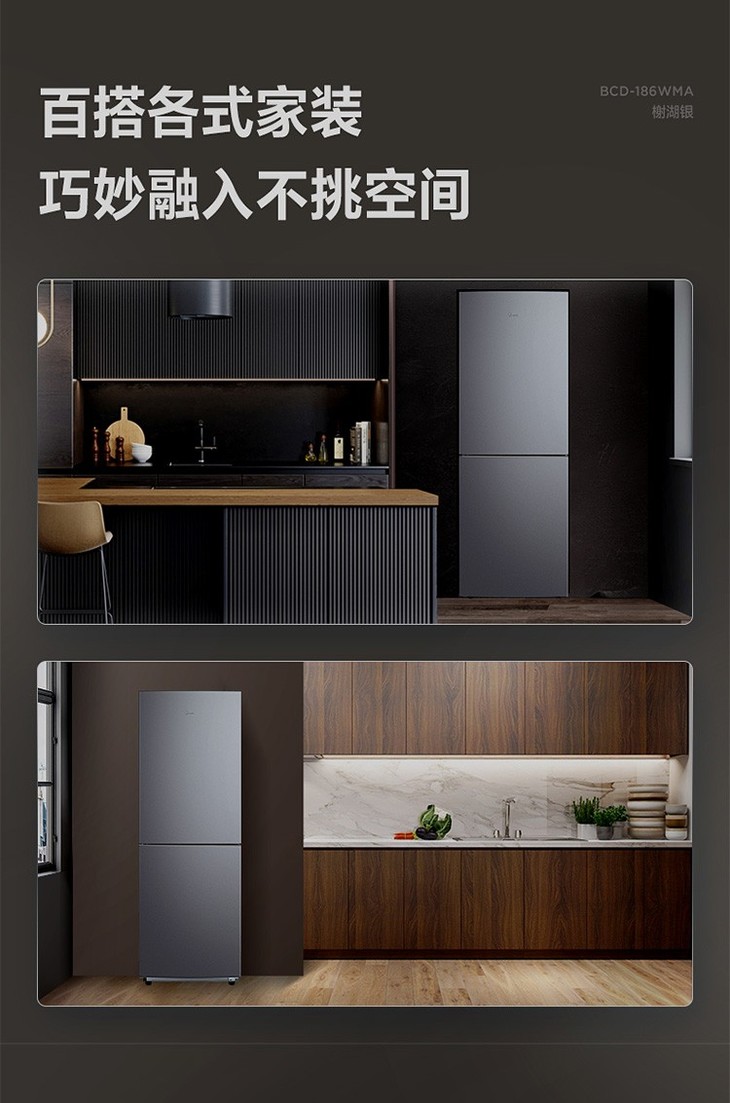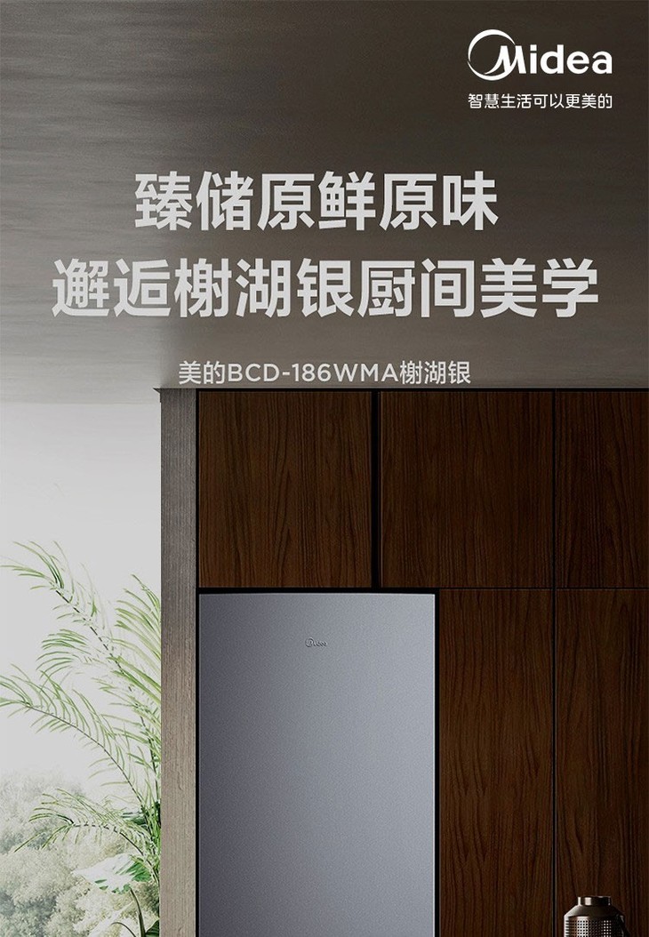 美的(202654)(Midea)186升两门小冰箱 风冷无霜 PT铂金净味 节能省电 双开门双温 宿舍租房公寓家用大容量优选线下同款 BCD-186WMA 榭湖银