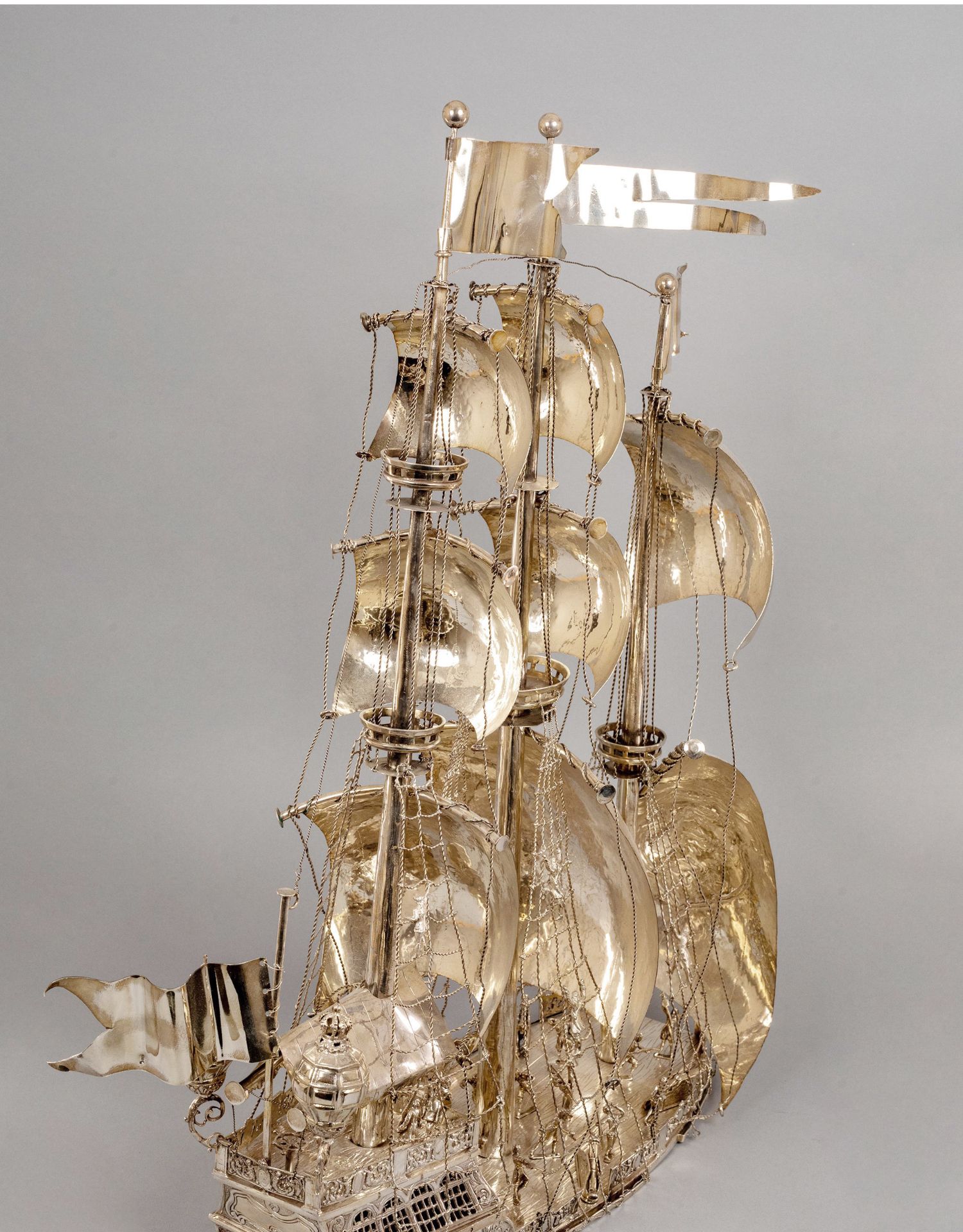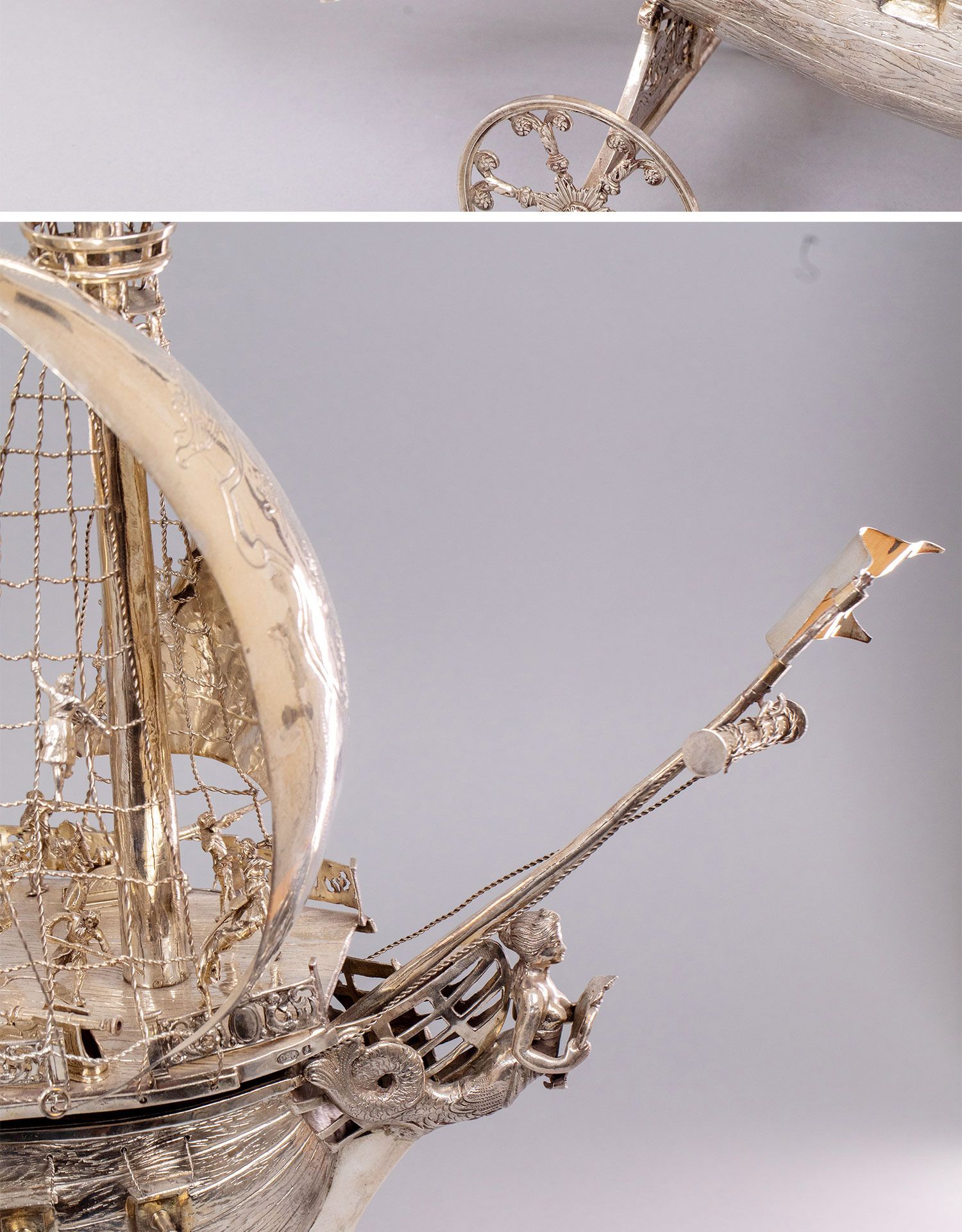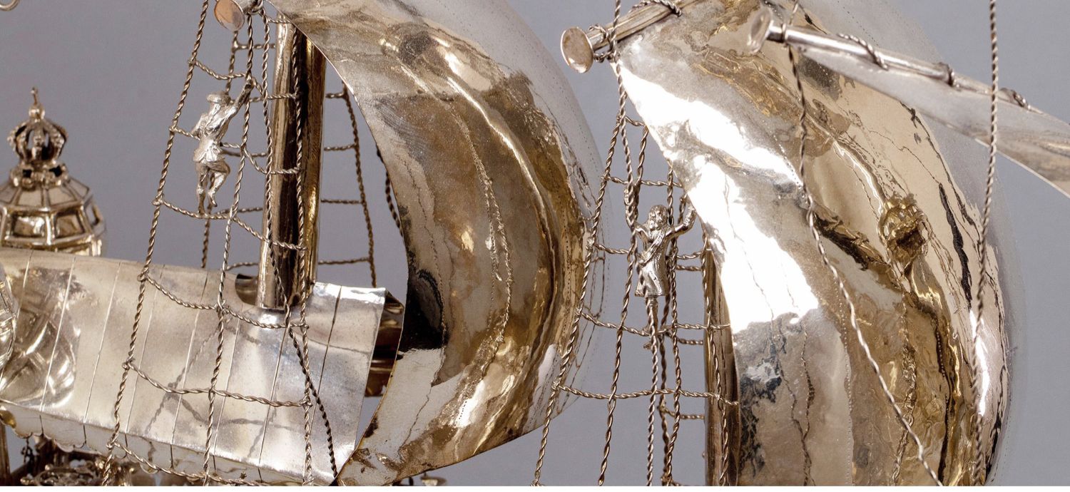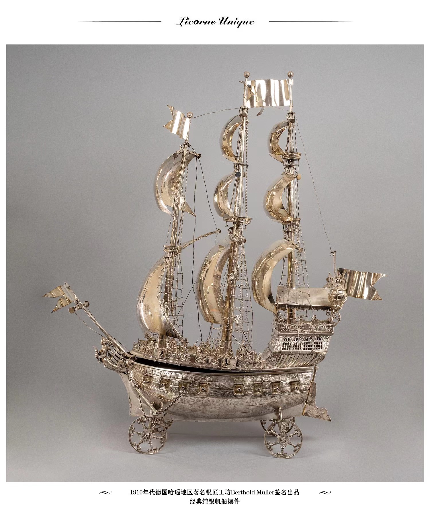 独角鹿西洋古董德国工坊Berthold Muller经典纯银帆船摆件
