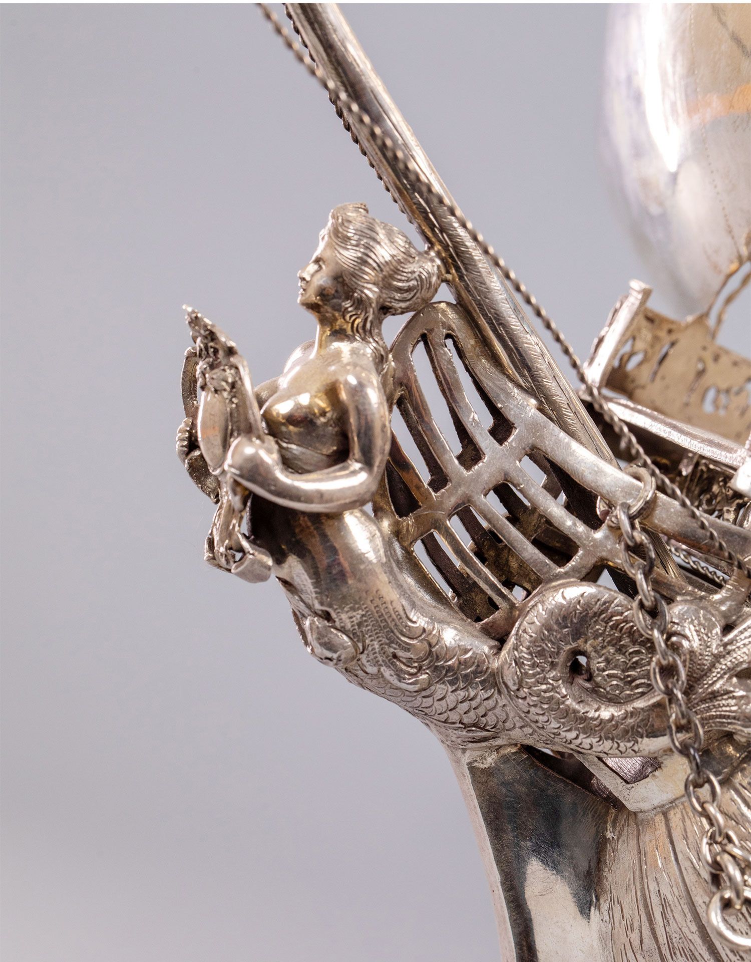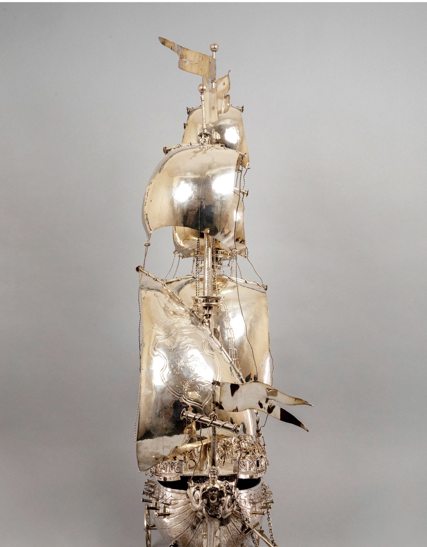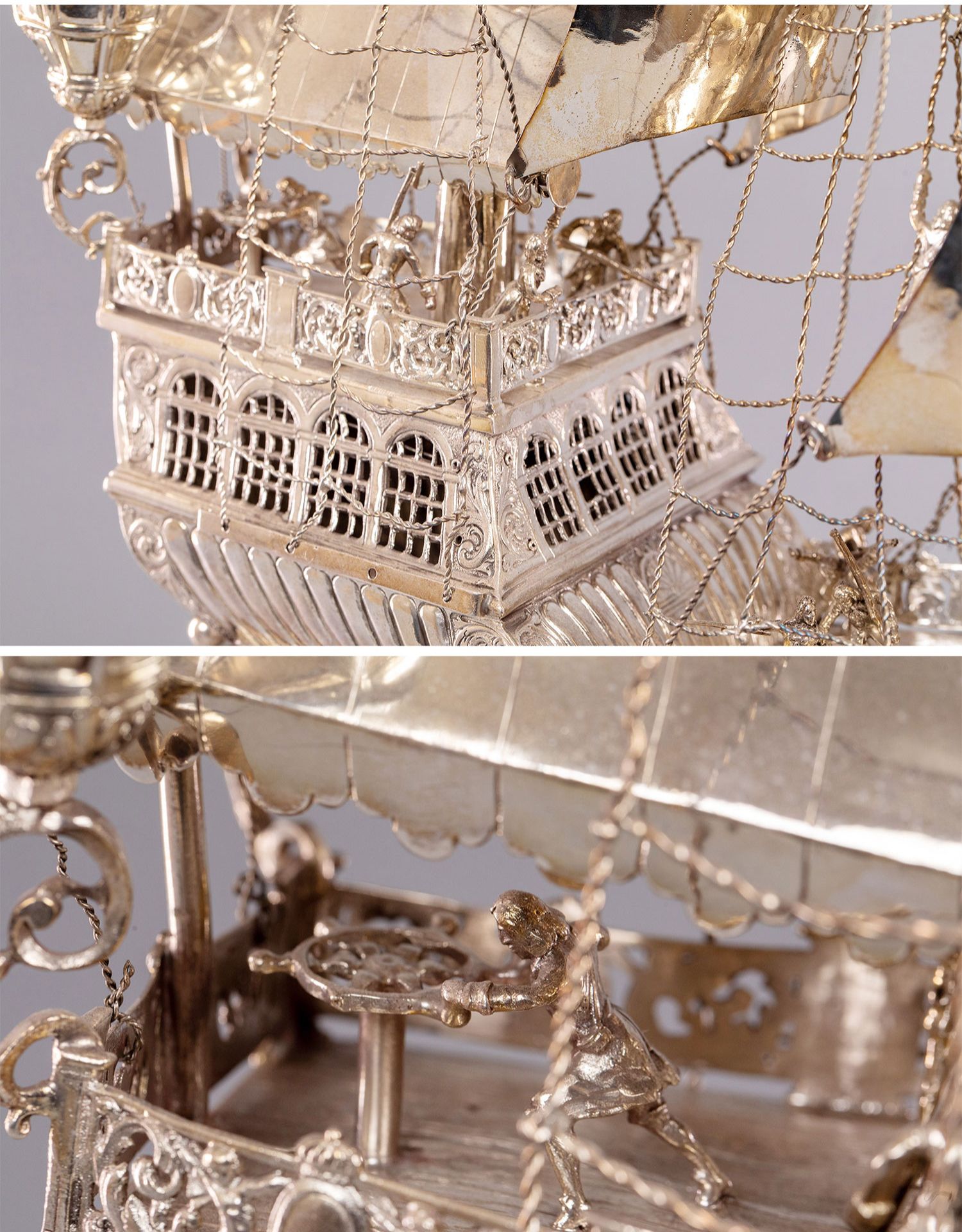 独角鹿西洋古董德国工坊Berthold Muller经典纯银帆船摆件