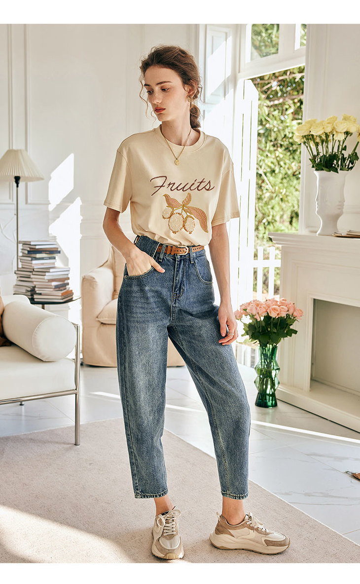 OLrain欧芮儿法式短袖T恤女春季2023年新款宽松时尚刺绣休闲上衣