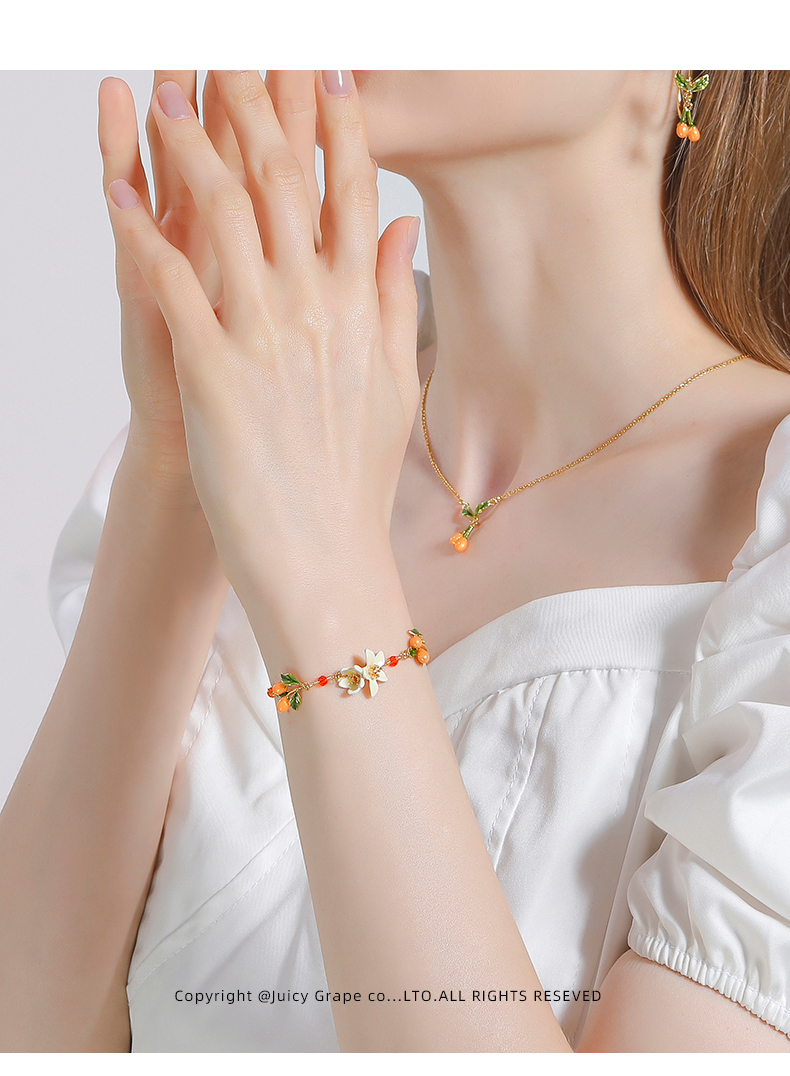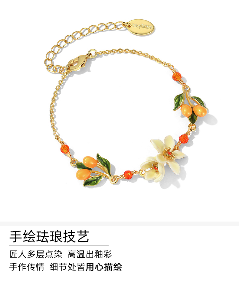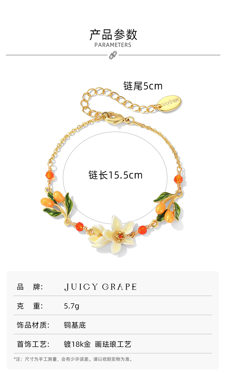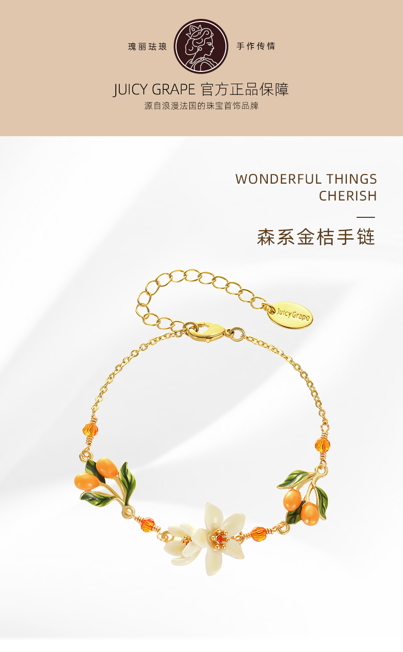 【焕新季】Juicy Grape原创甜美ins小众设计白色橙花小金桔法式森系手链女