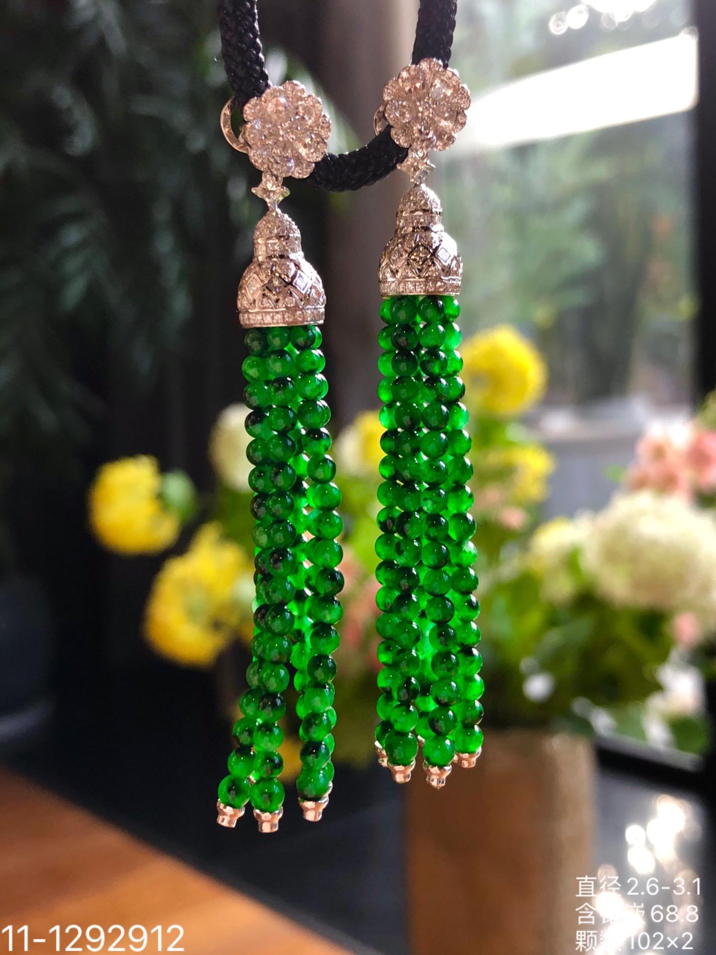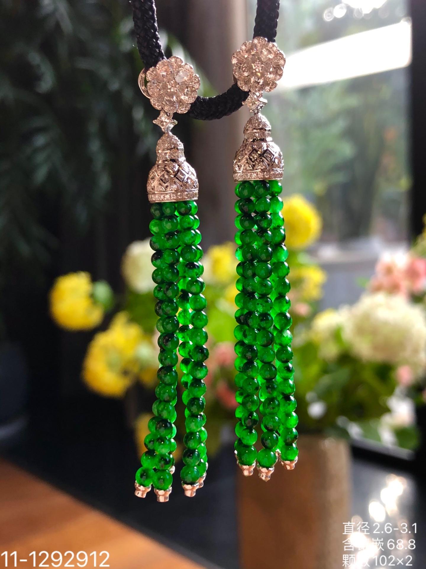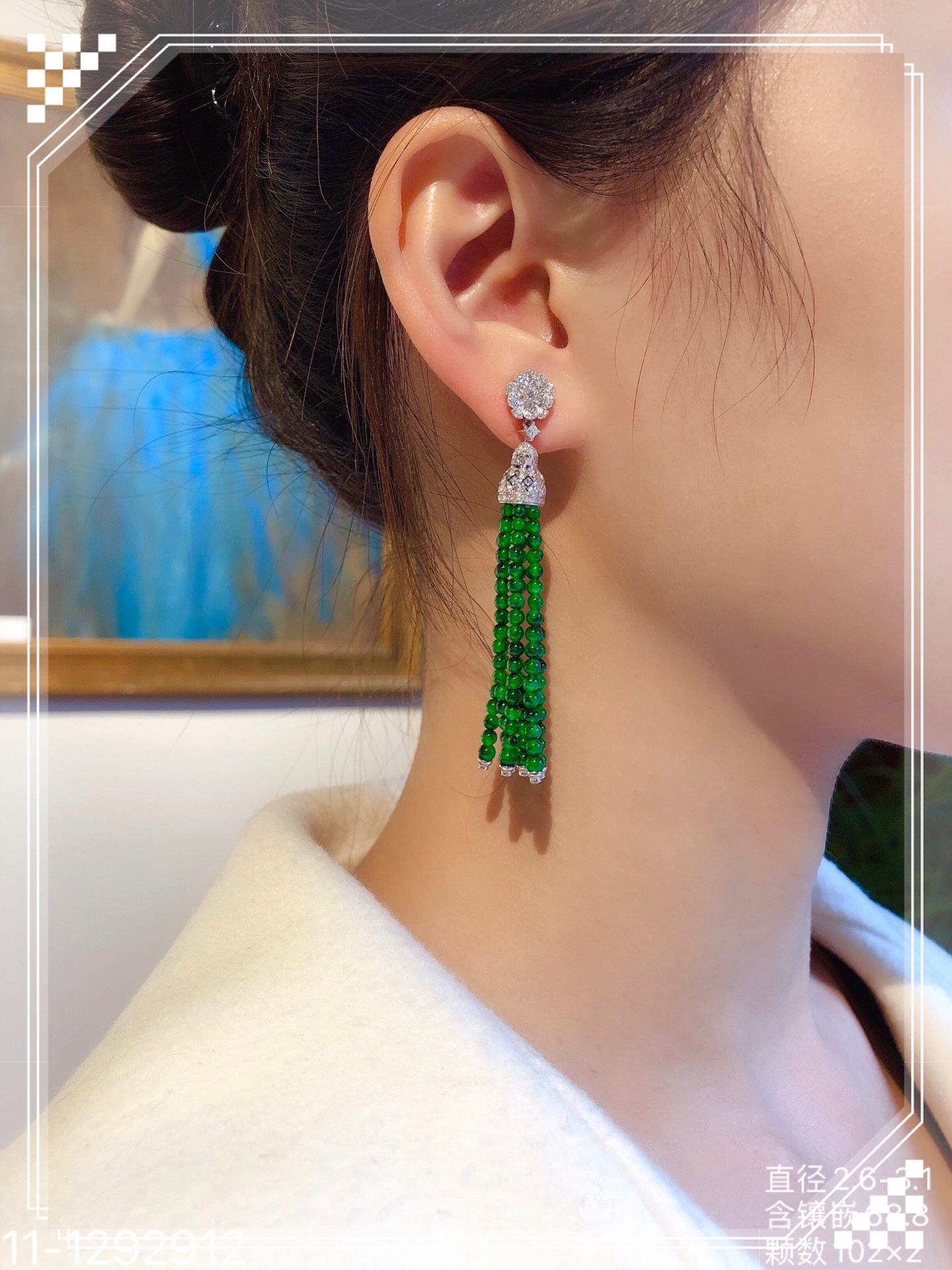 老坑艳绿珠子耳坠 55999【11-1292912】