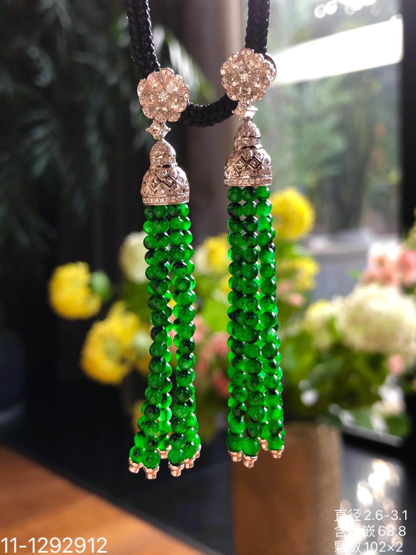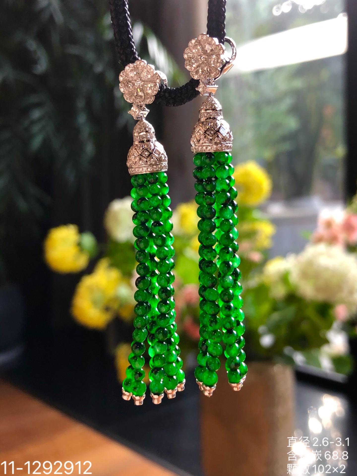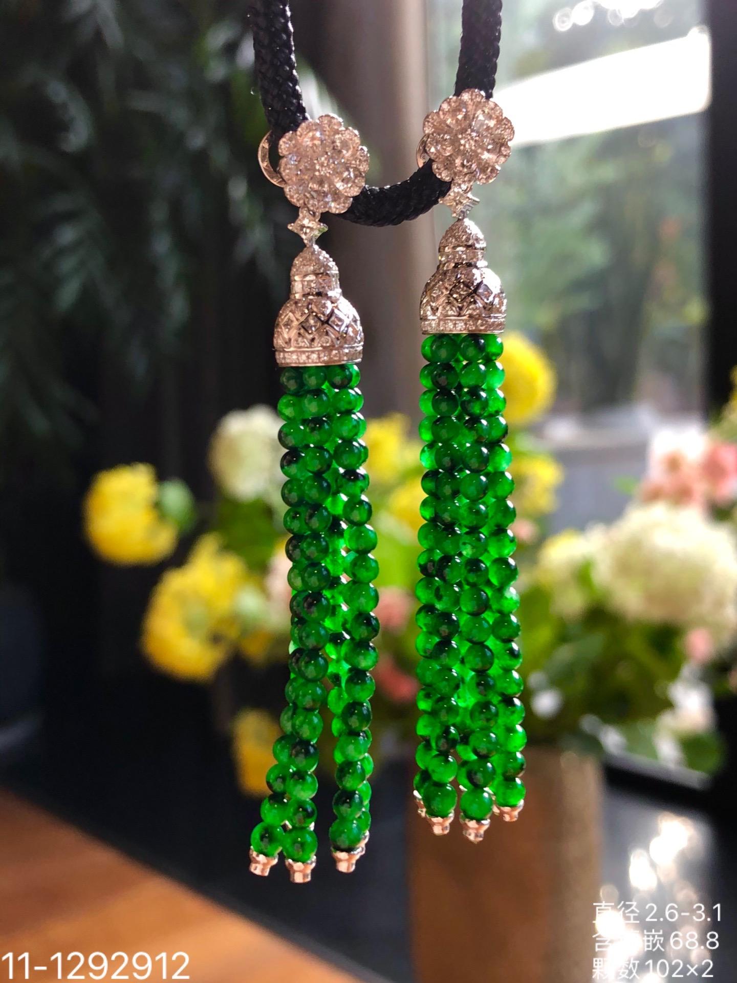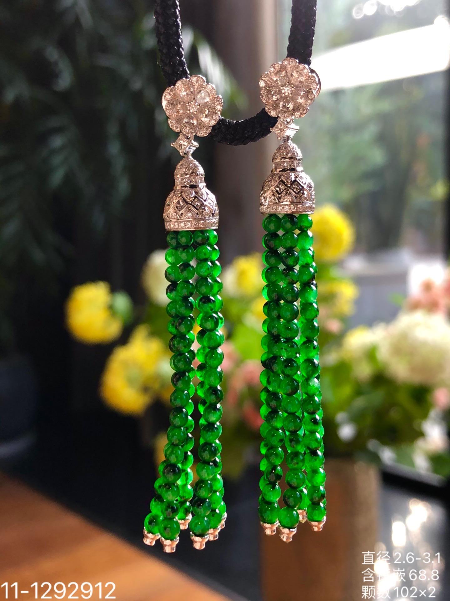 老坑艳绿珠子耳坠 55999【11-1292912】