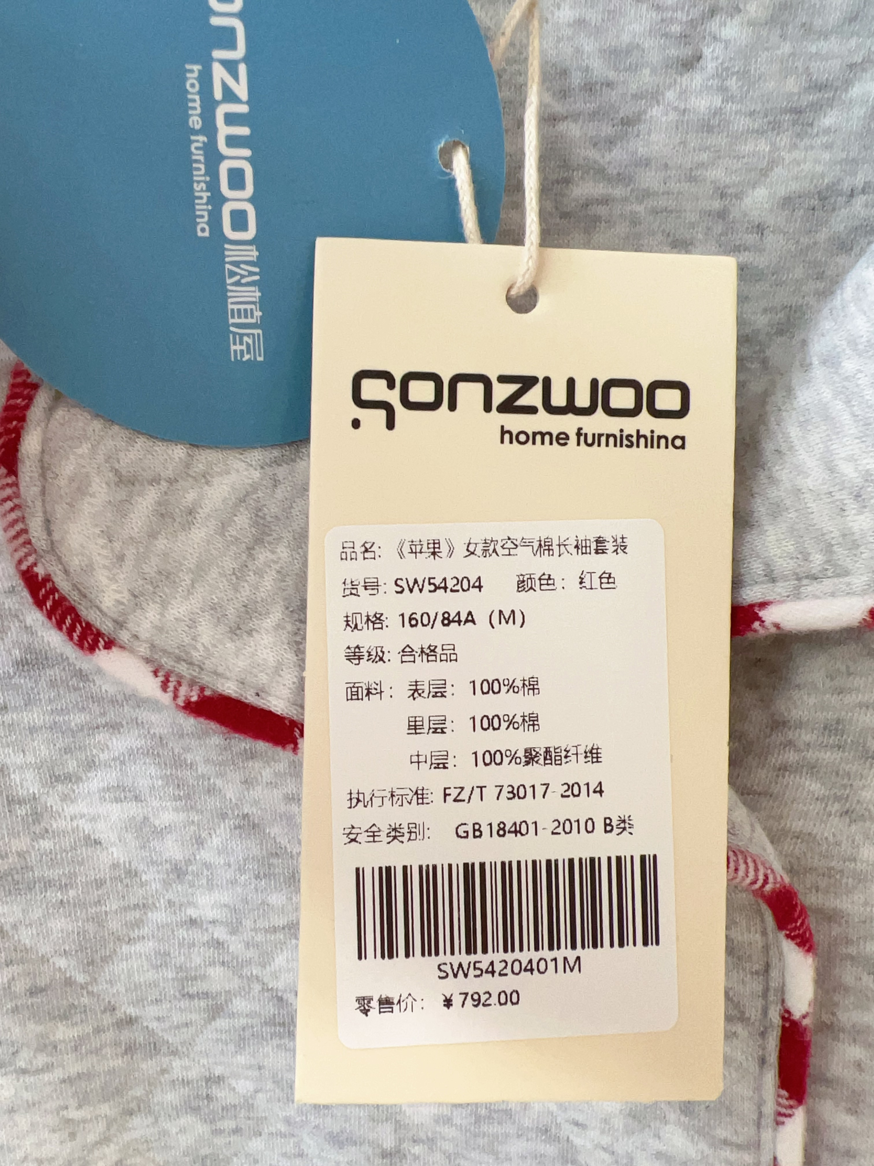 松植屋《苹果》女款空气棉睡衣套装