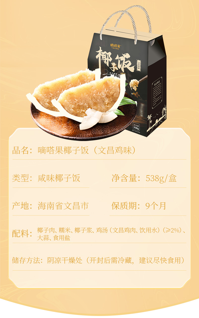 嘀嗒果椰子饭原味/文昌鸡肉味538g🥥甄选鲜椰 满口软糯鲜香~海南特色伴手礼!