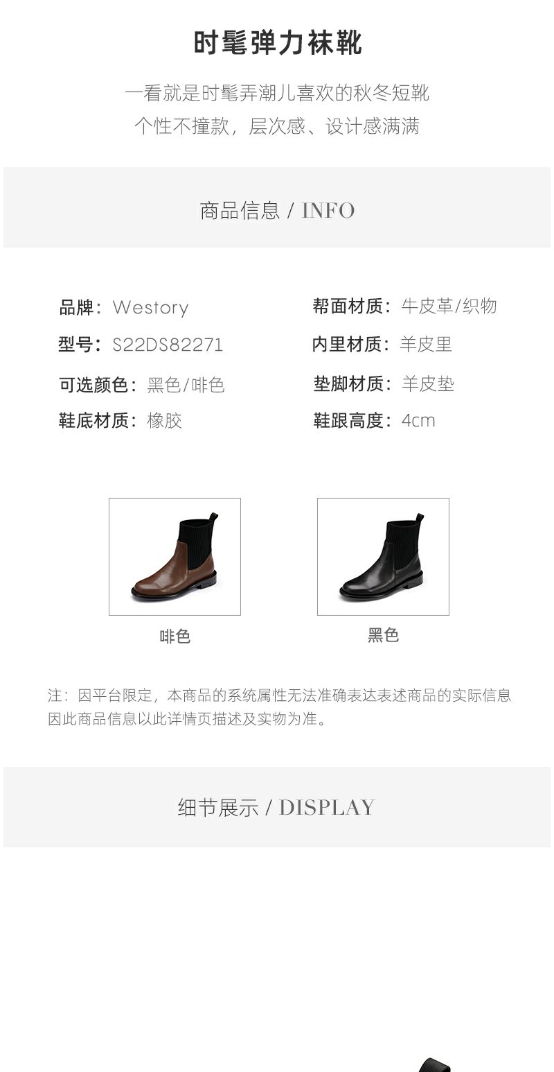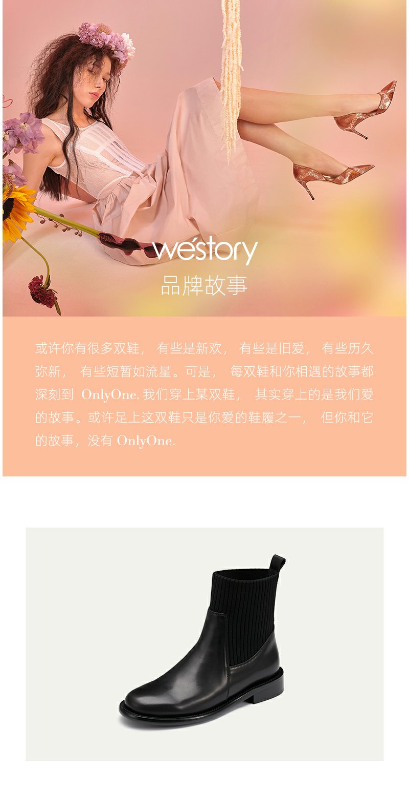 westory2022年秋冬新款百搭通勤短筒低跟不累脚弹力靴袜靴女82271
