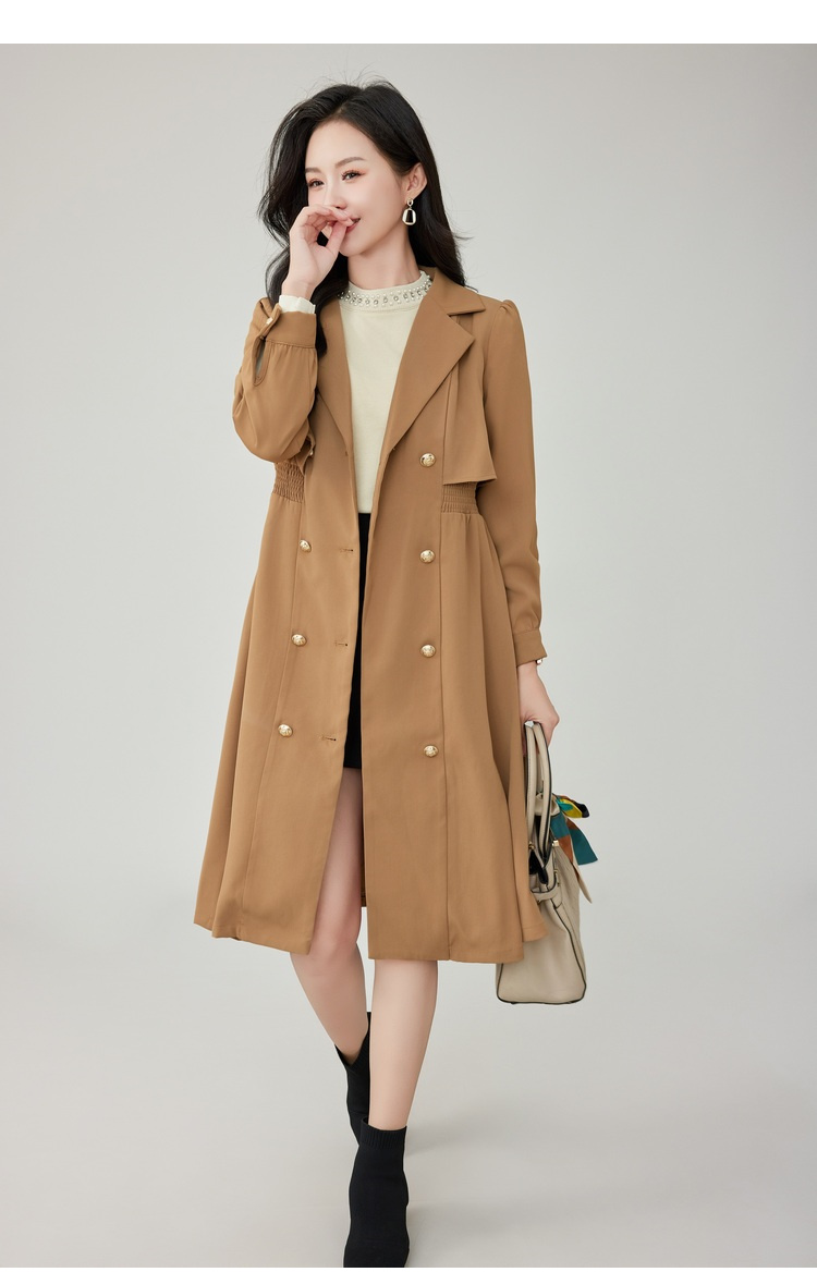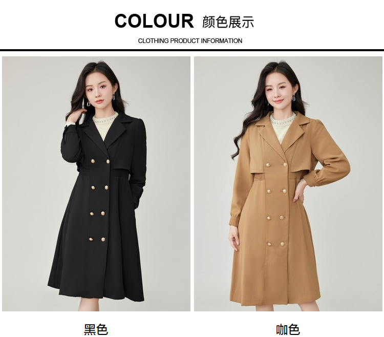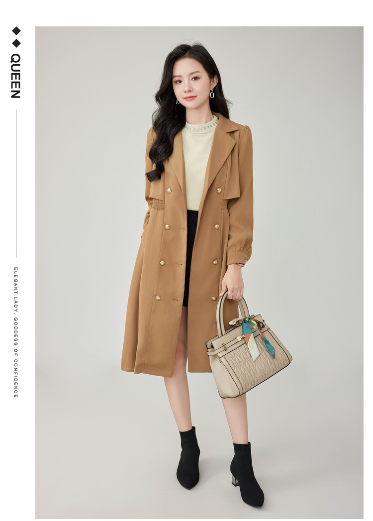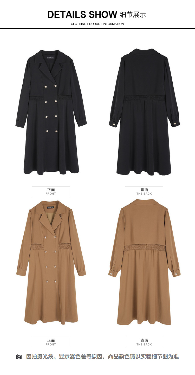 奢姿2025年秋装新款大码女装双排扣翻驳领外套胖mm气质时尚风衣9923366511