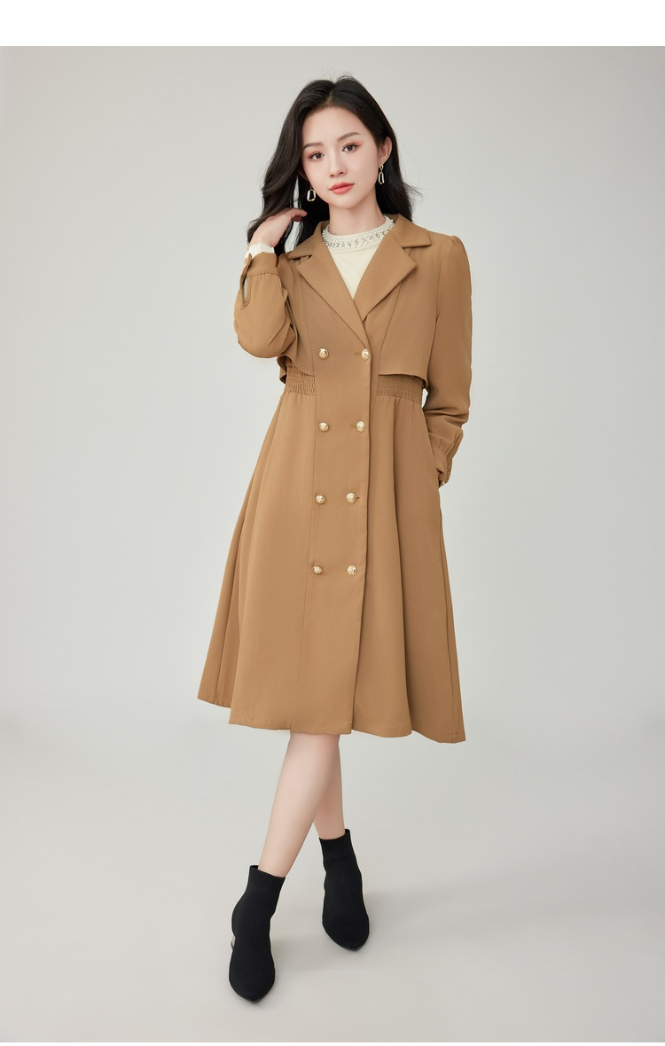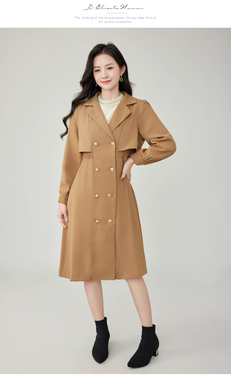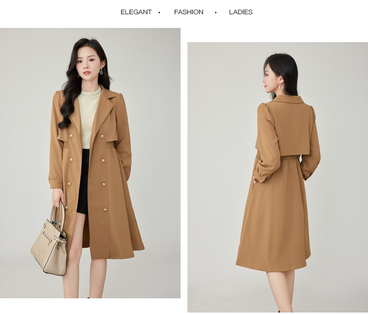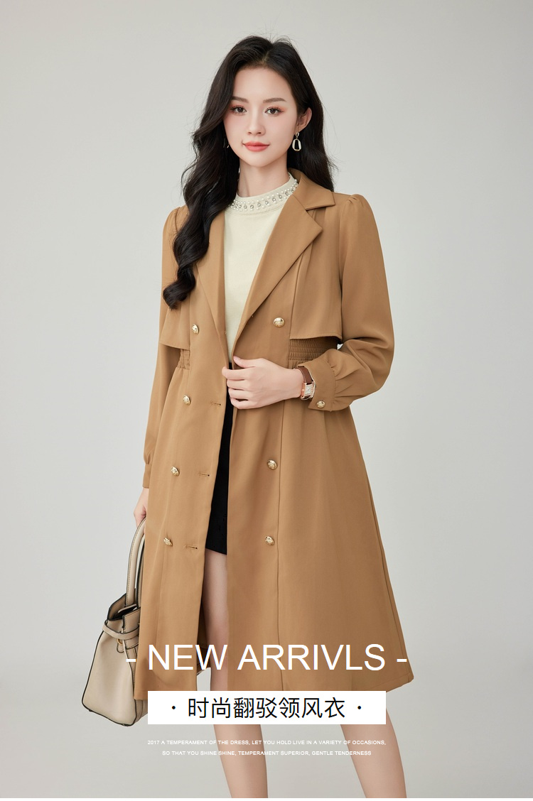 奢姿2025年秋装新款大码女装双排扣翻驳领外套胖mm气质时尚风衣9923366511