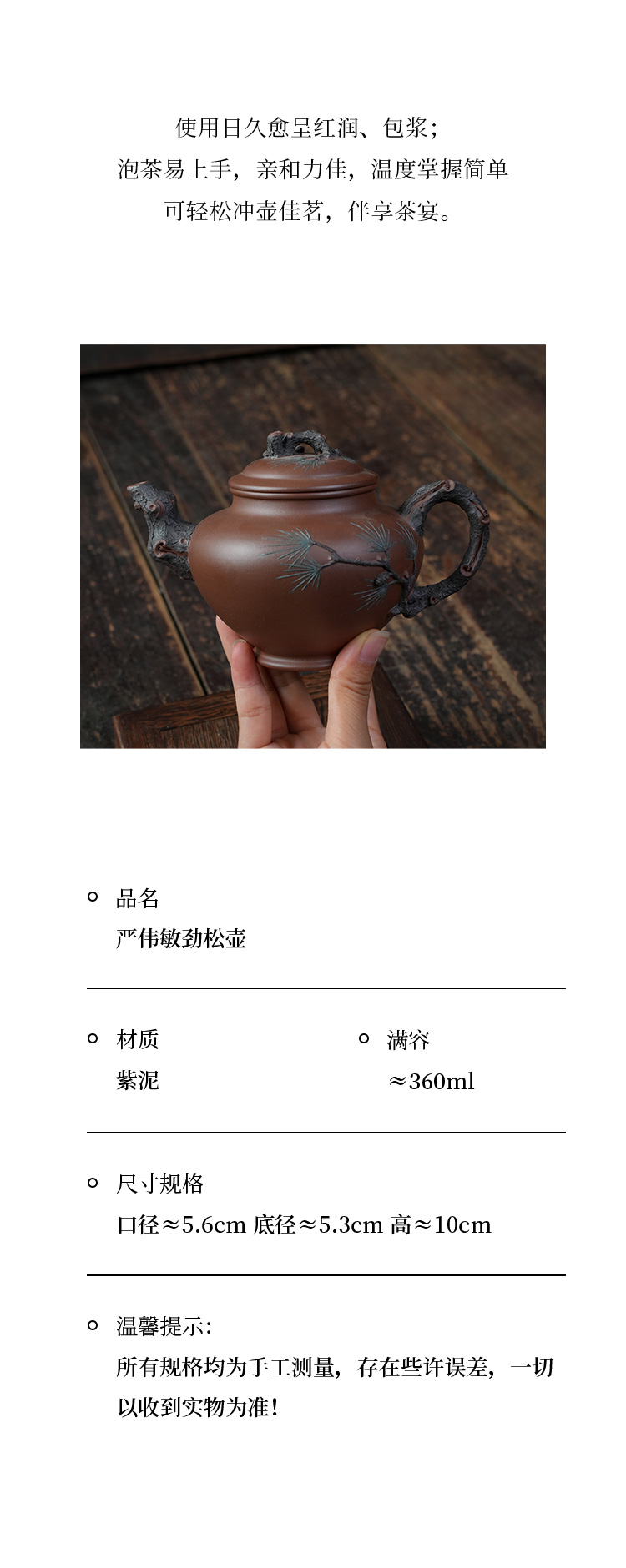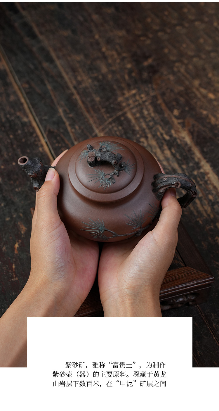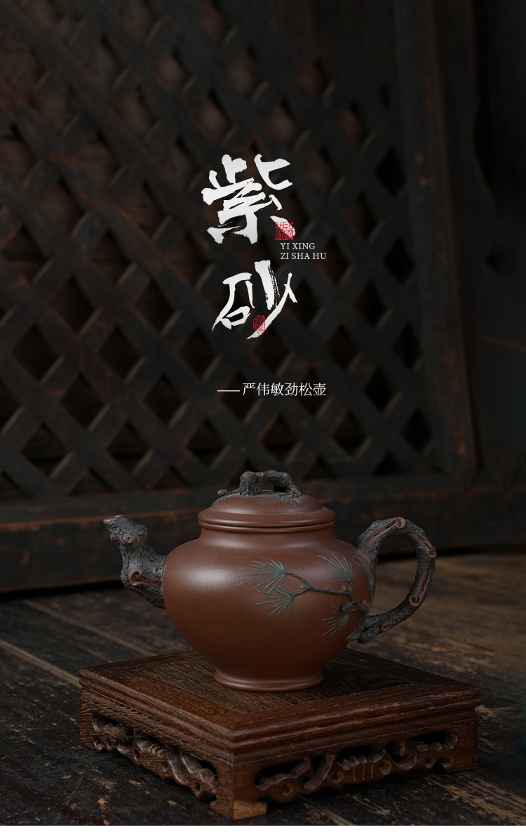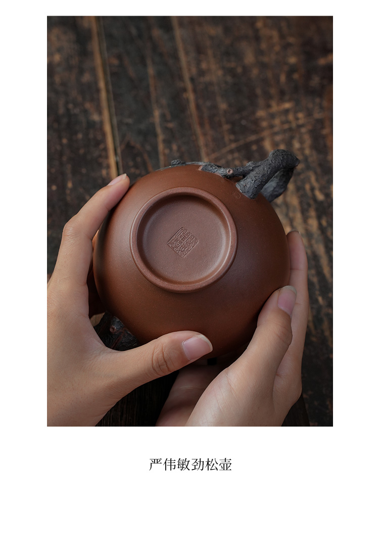 严伟敏劲松壶 紫泥 宜兴紫砂原矿茶壶紫砂壶功夫茶泡茶壶茶具仿古