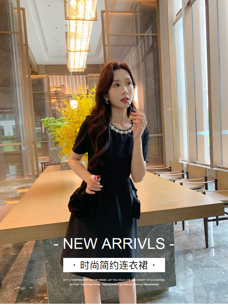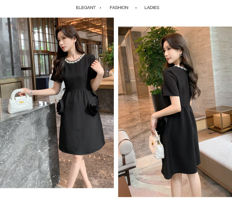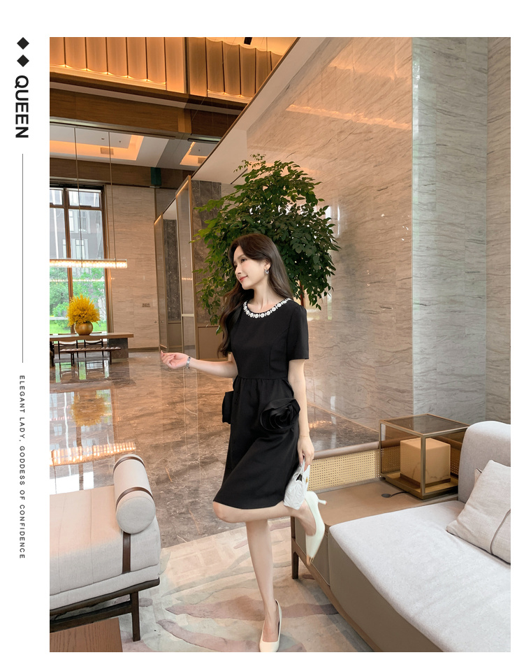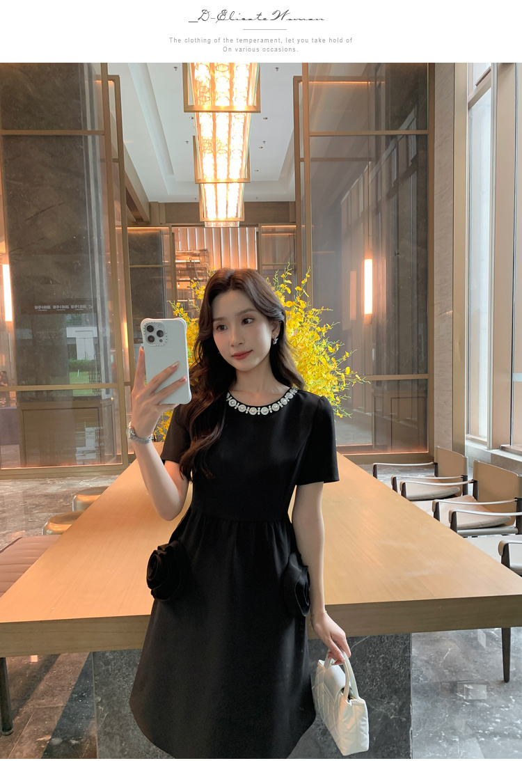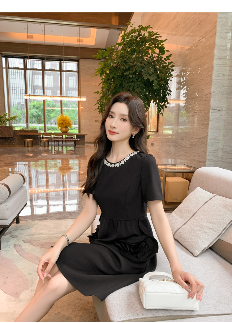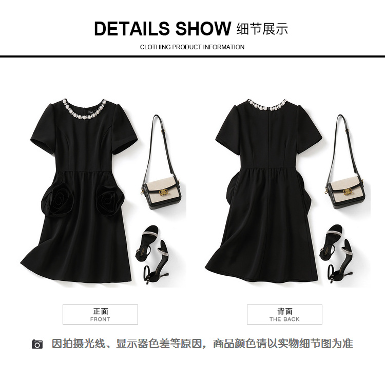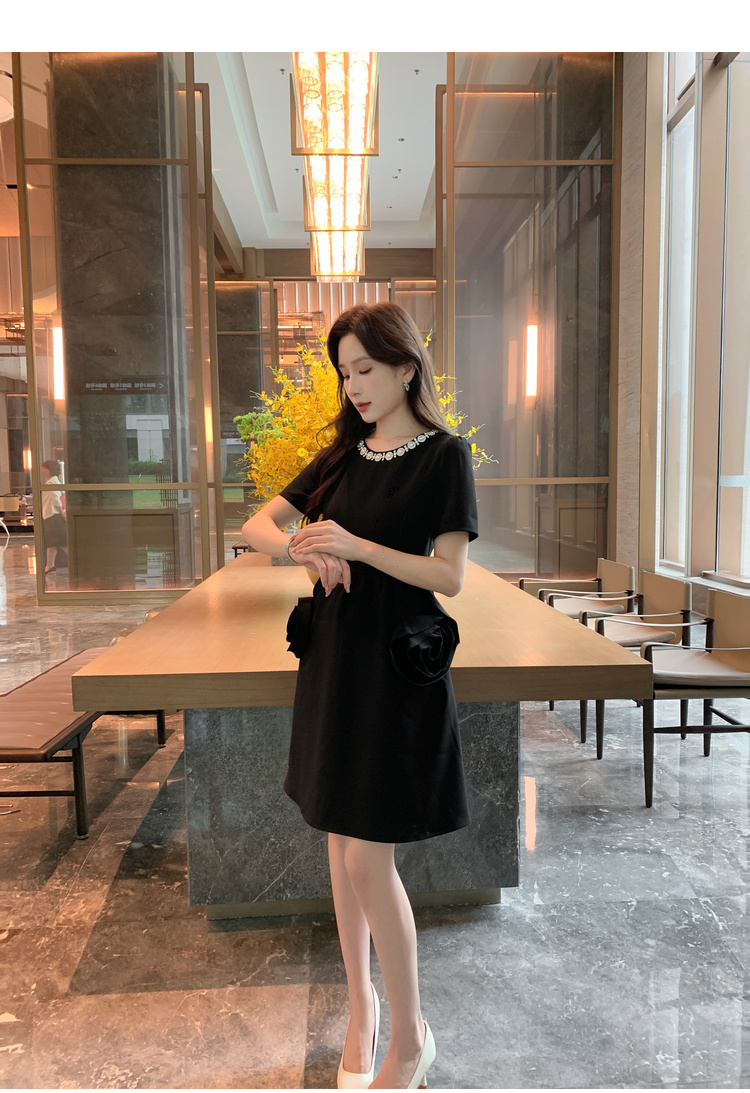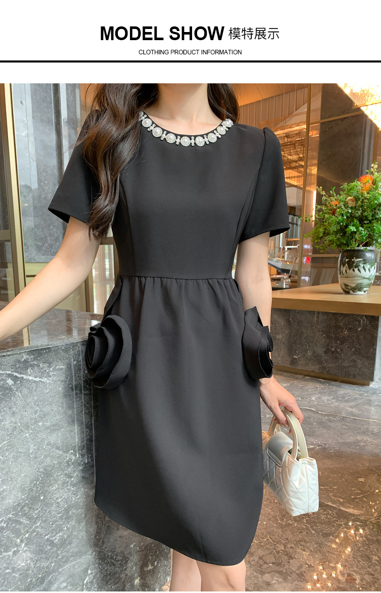 【清仓超15天不保价】[奢姿轻奢系列]大码女装2024夏季玫瑰装饰裙子胖妹妹时尚连衣裙8942890080