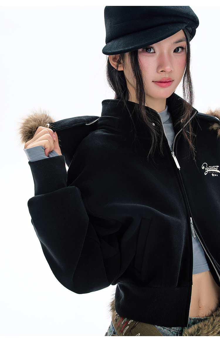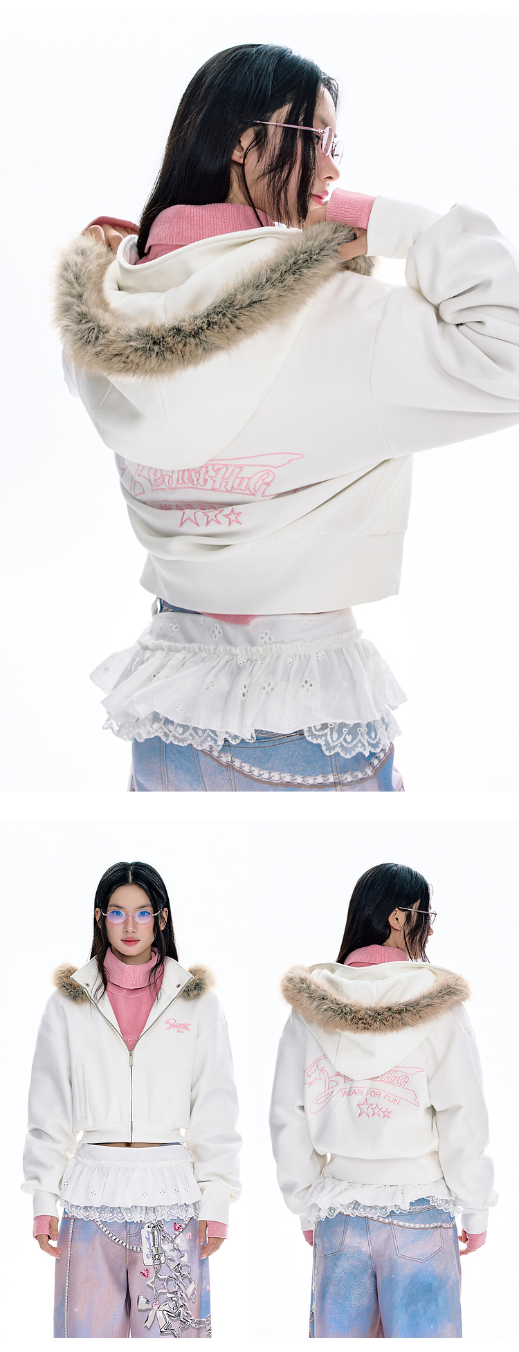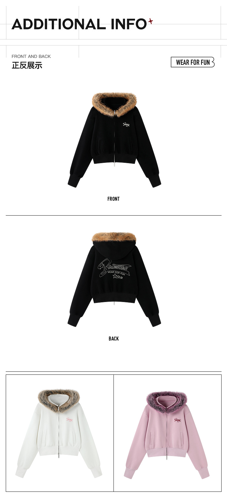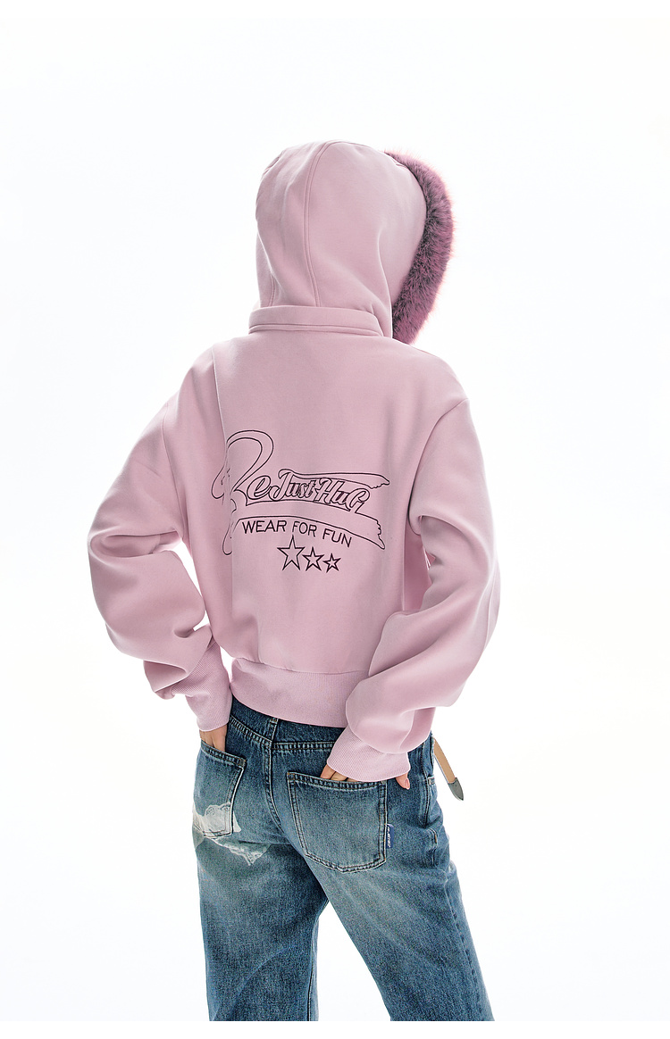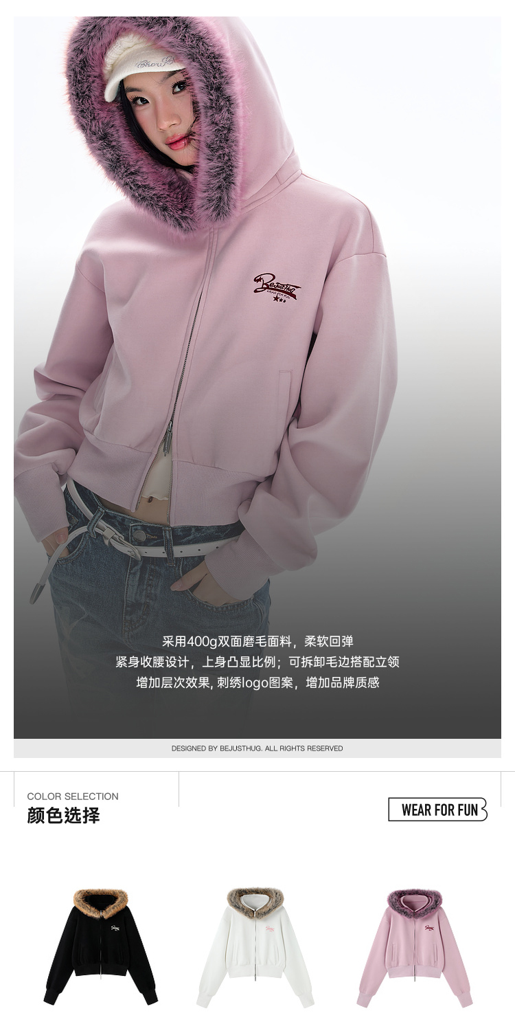BJHG不计后果短款连帽卫衣女款冬季2025新款紧身休闲绣花开衫外套