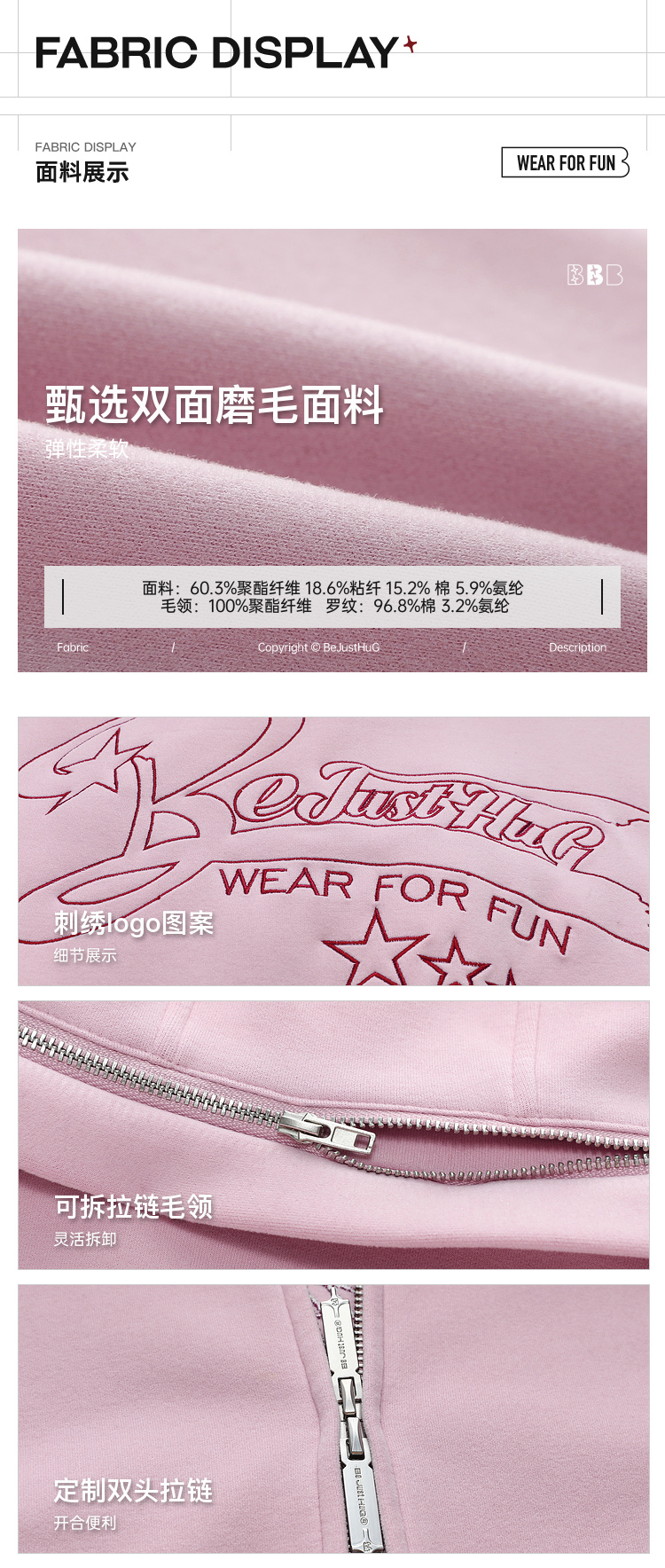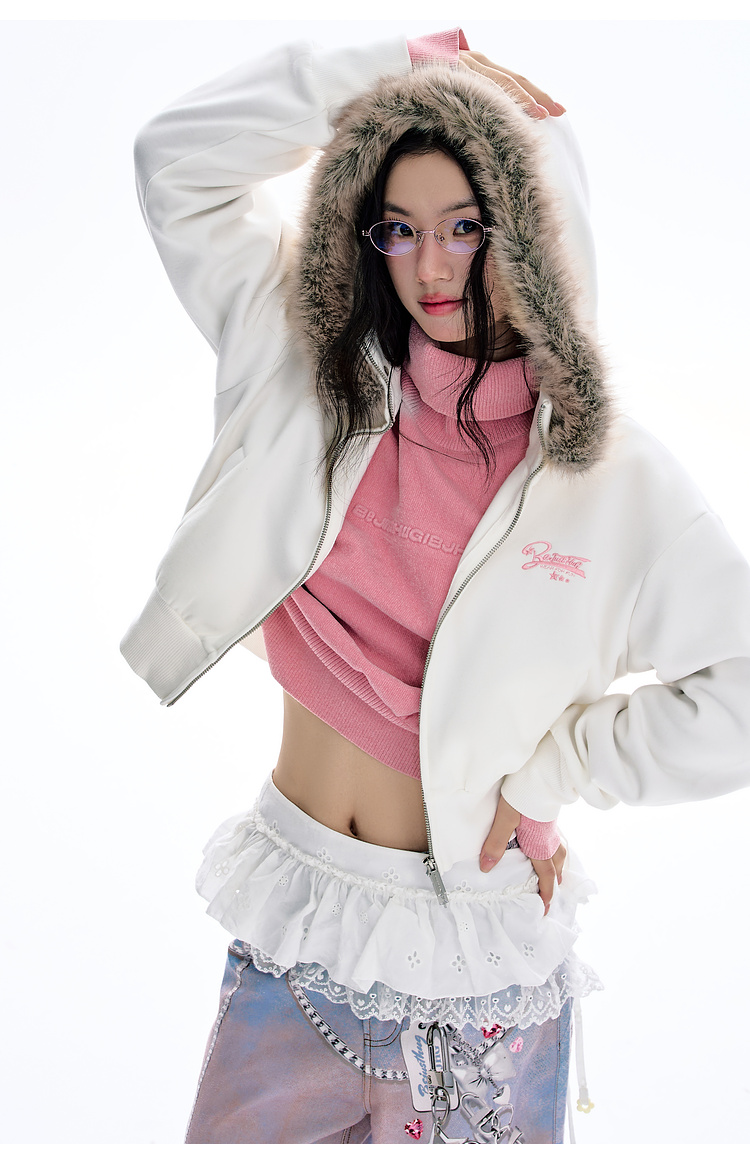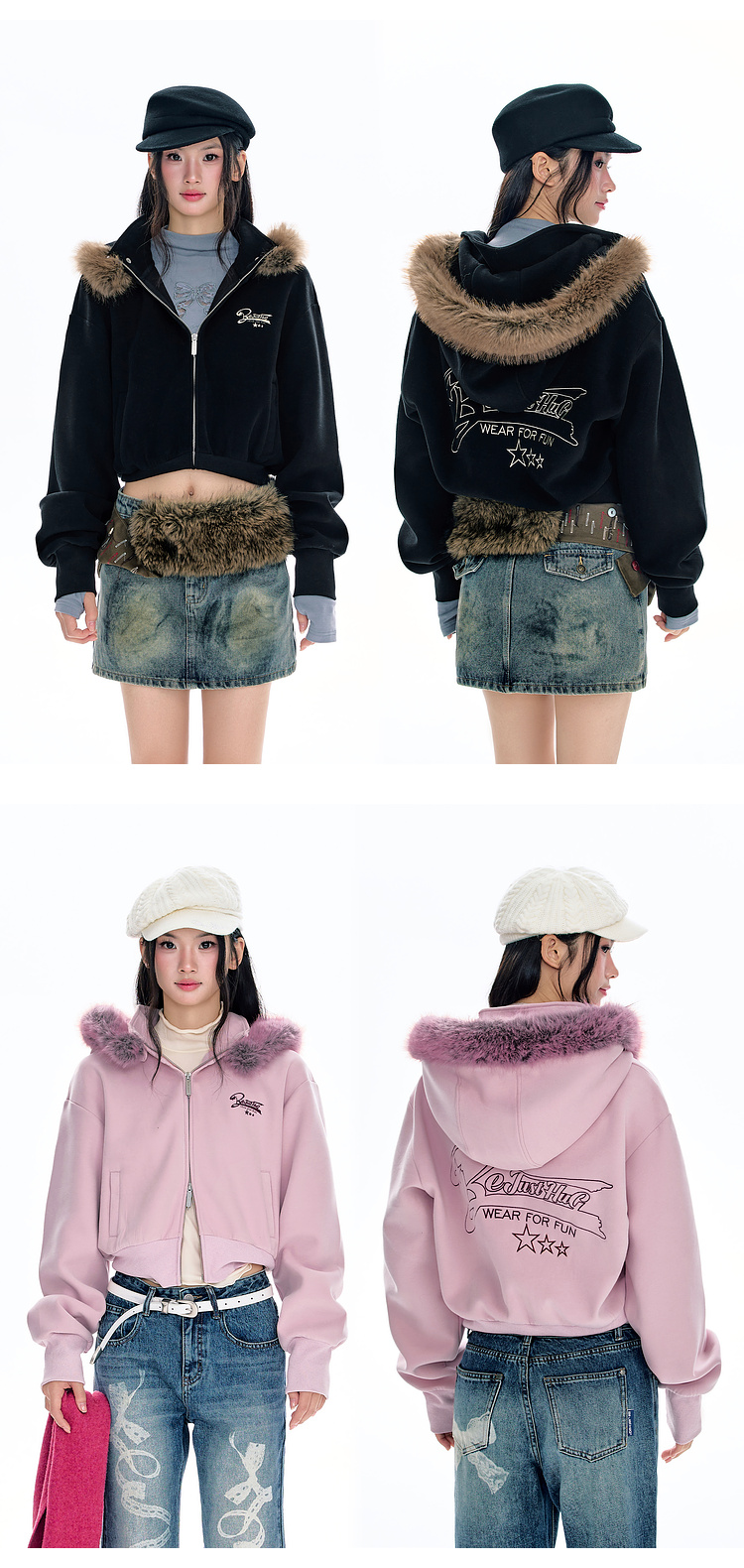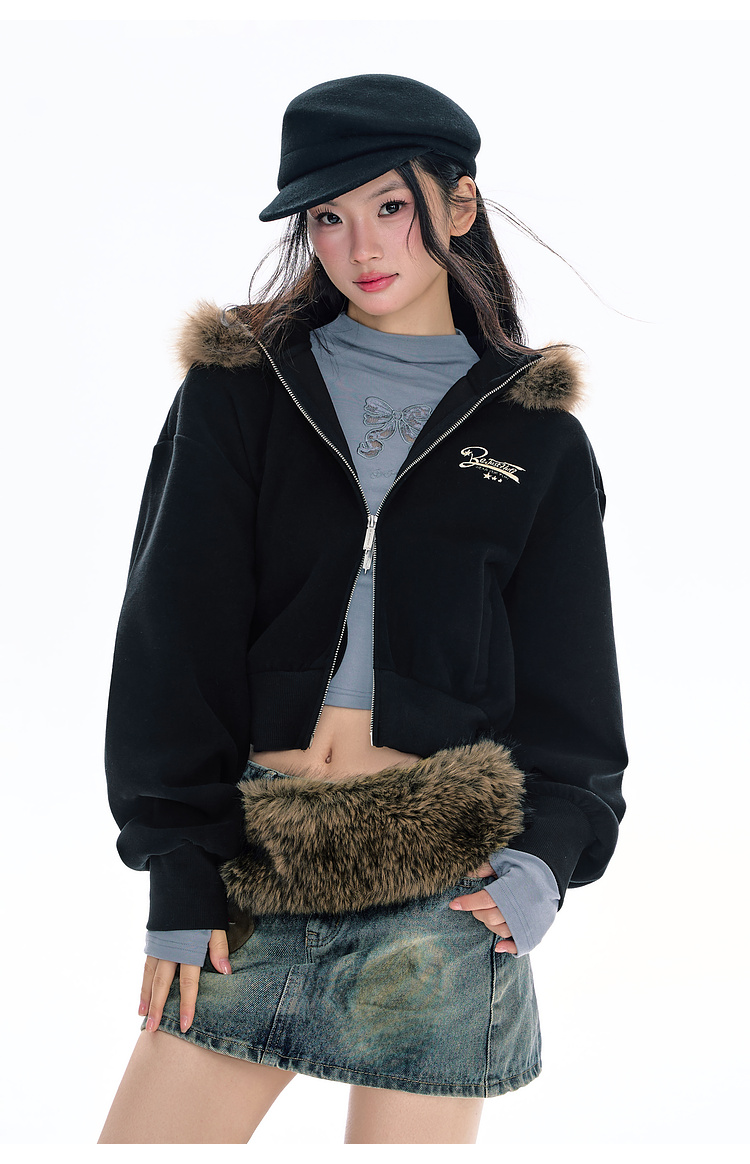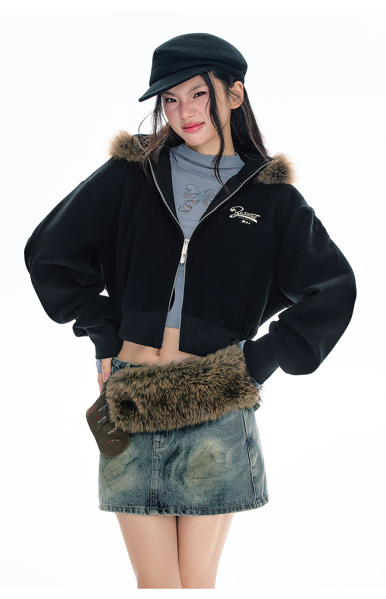 BJHG不计后果短款连帽卫衣女款冬季2025新款紧身休闲绣花开衫外套