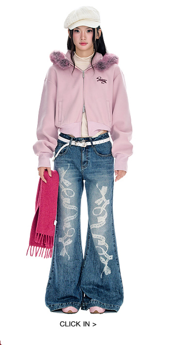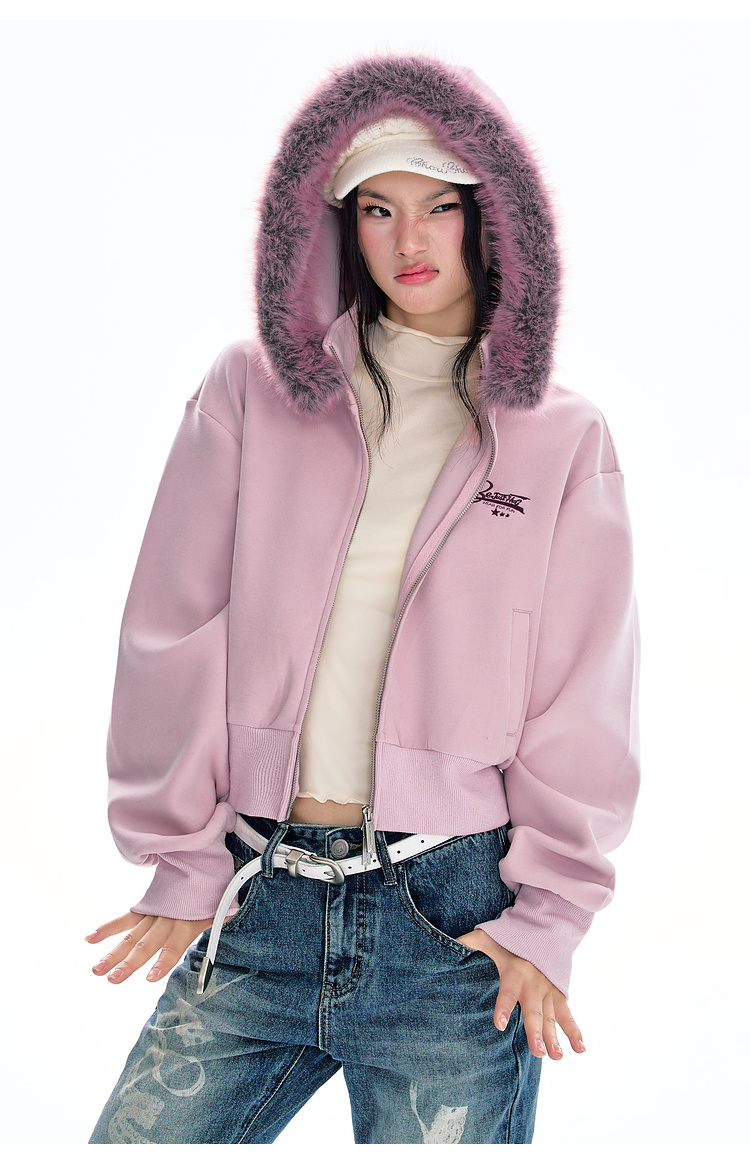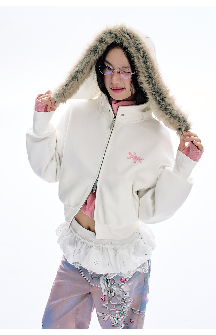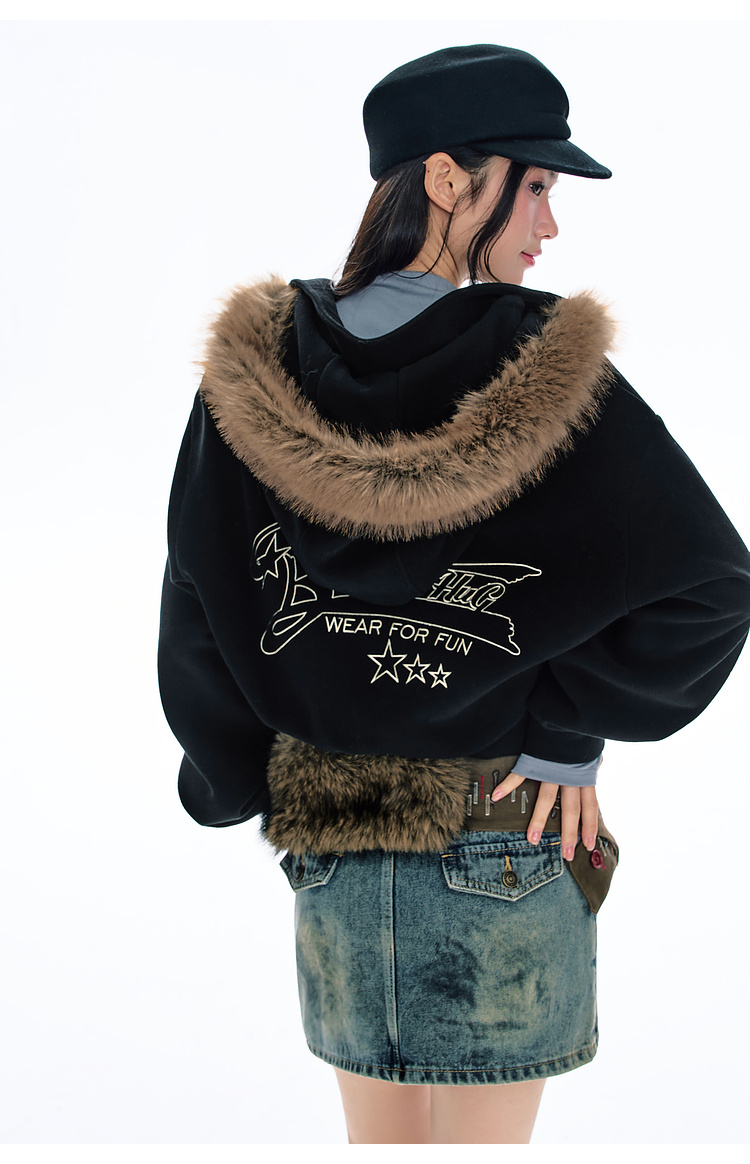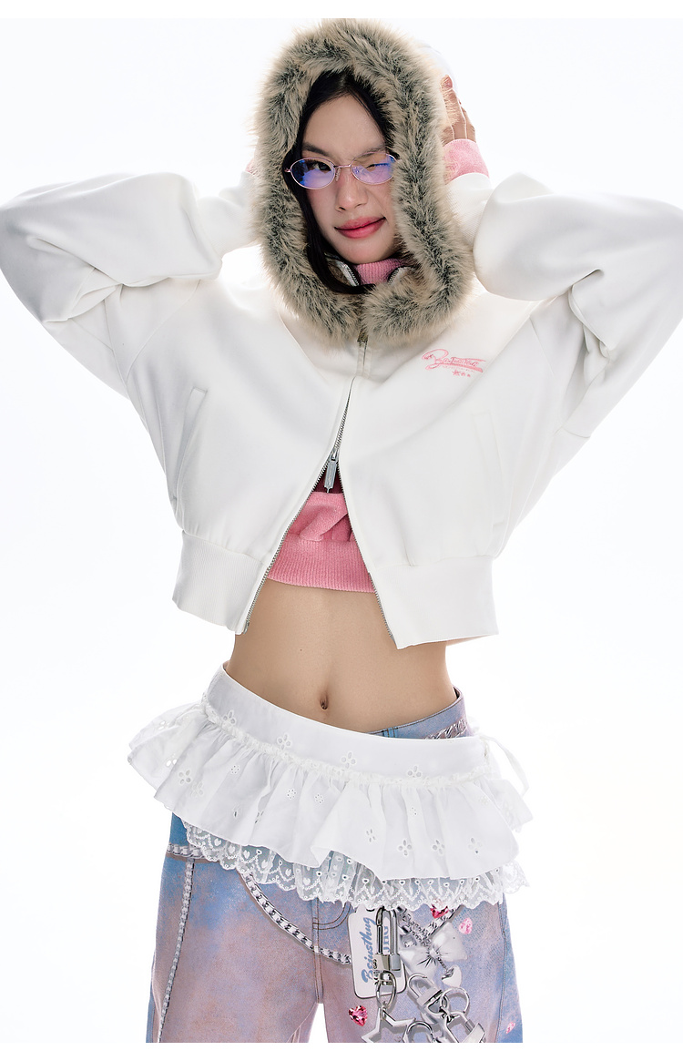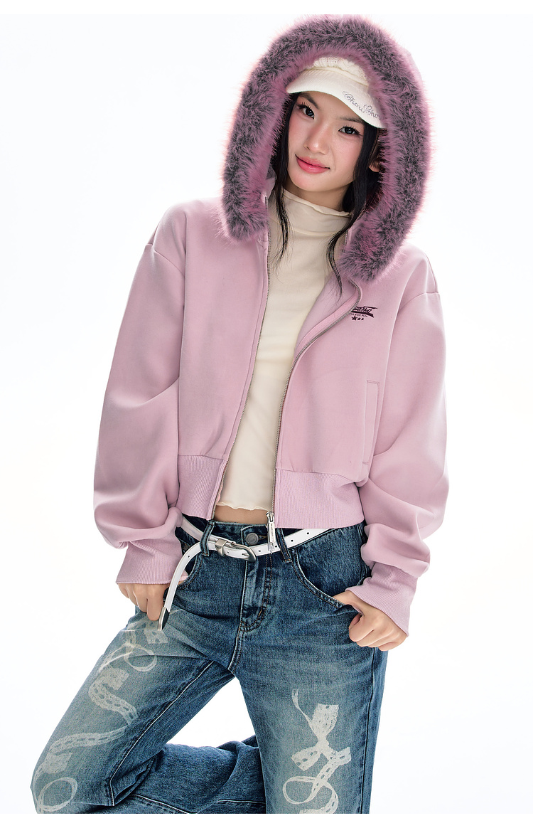 BJHG不计后果短款连帽卫衣女款冬季2025新款紧身休闲绣花开衫外套