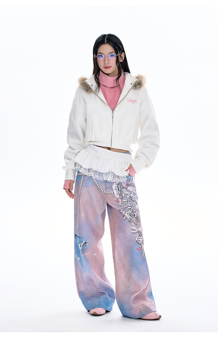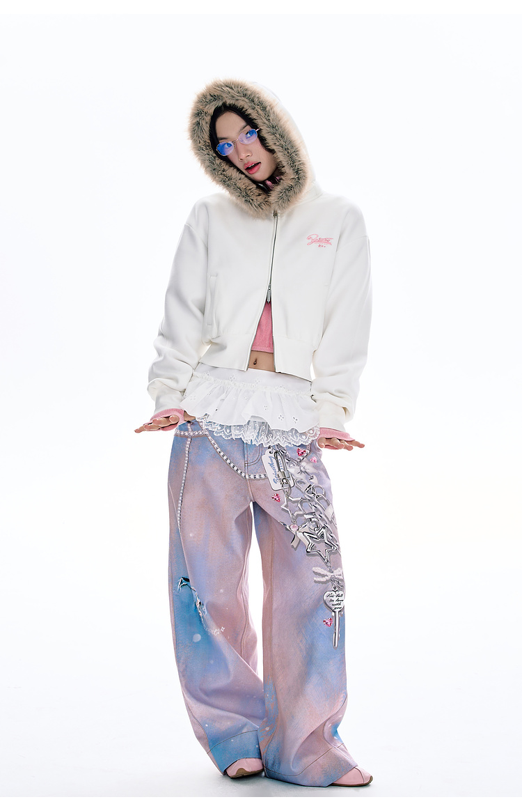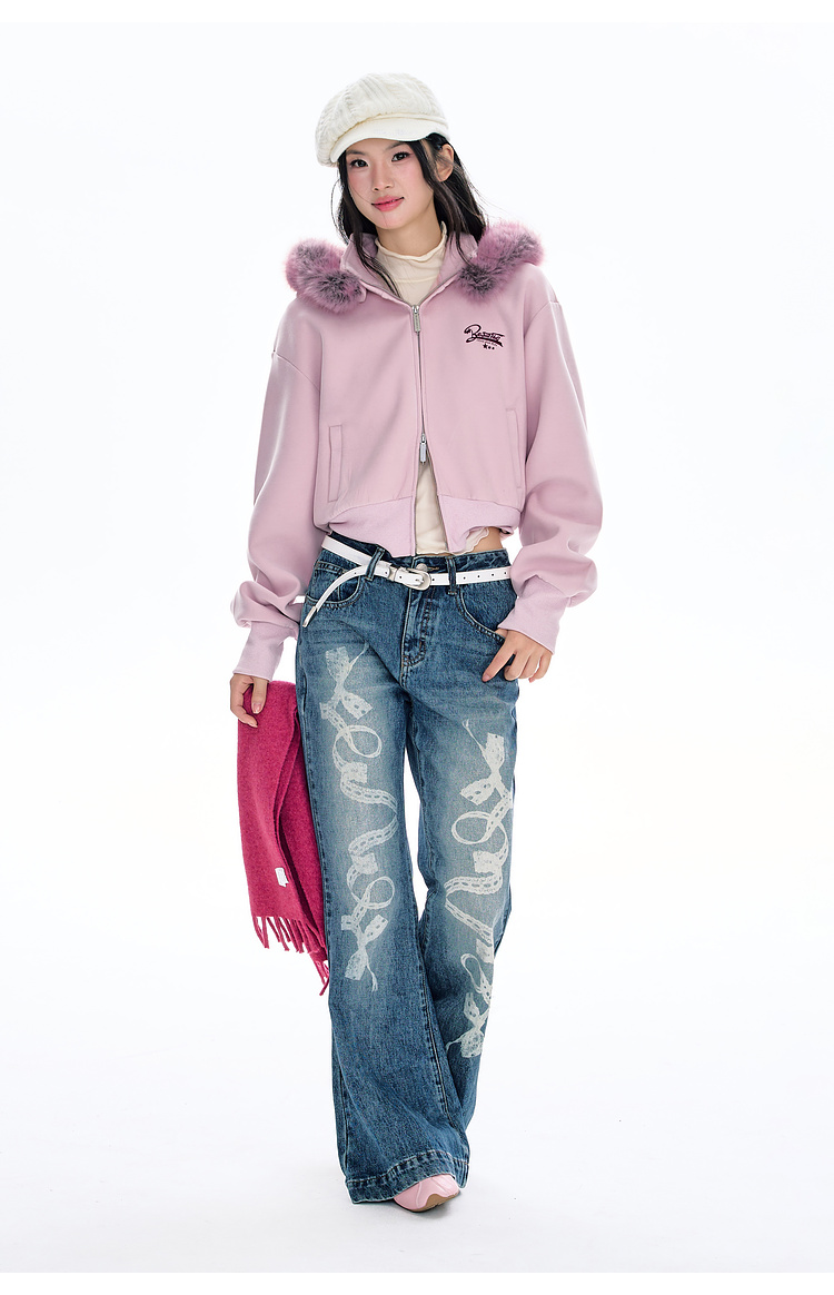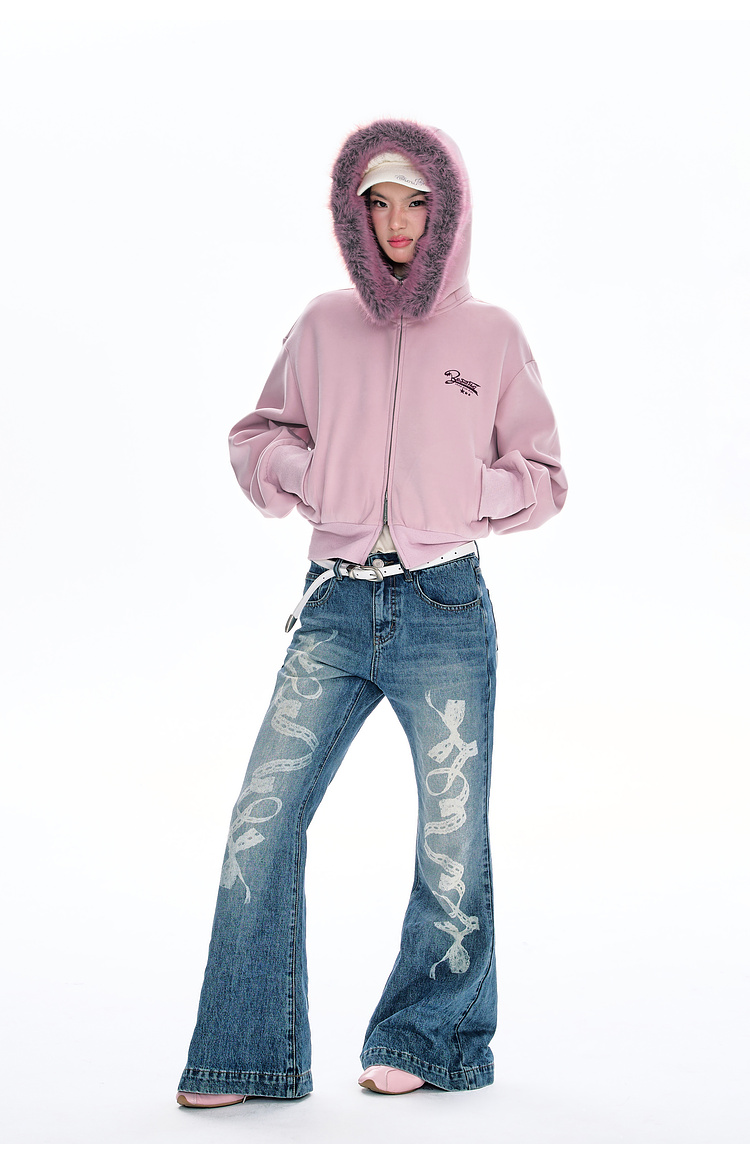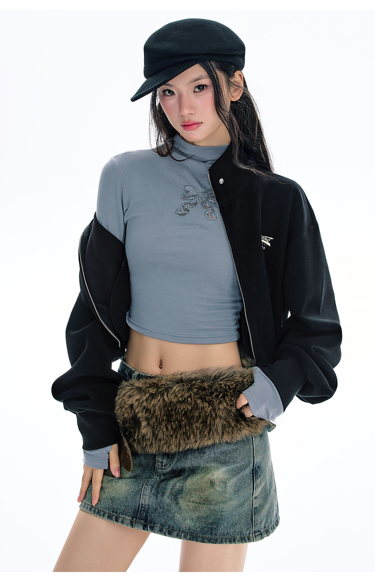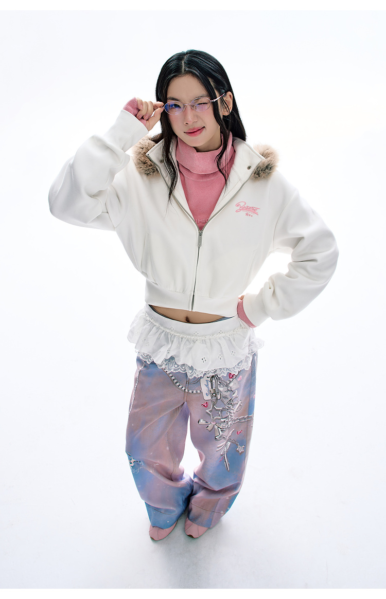 BJHG不计后果短款连帽卫衣女款冬季2025新款紧身休闲绣花开衫外套