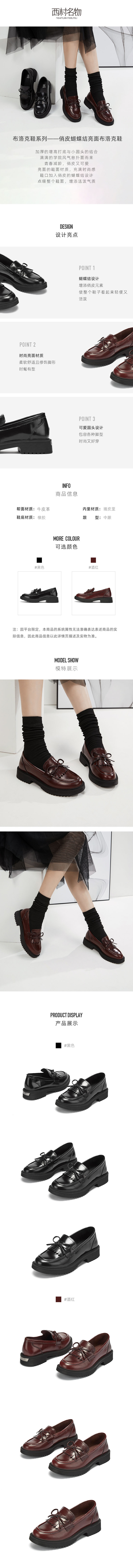 西村名物2020秋季新款乐福鞋平跟圆头复古英伦风布洛克皮鞋 T20CM30911
