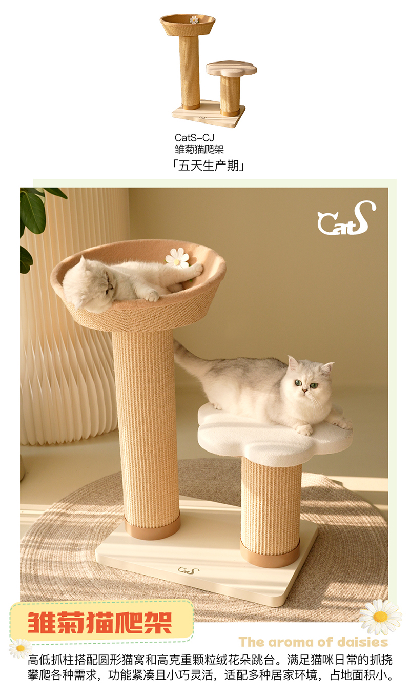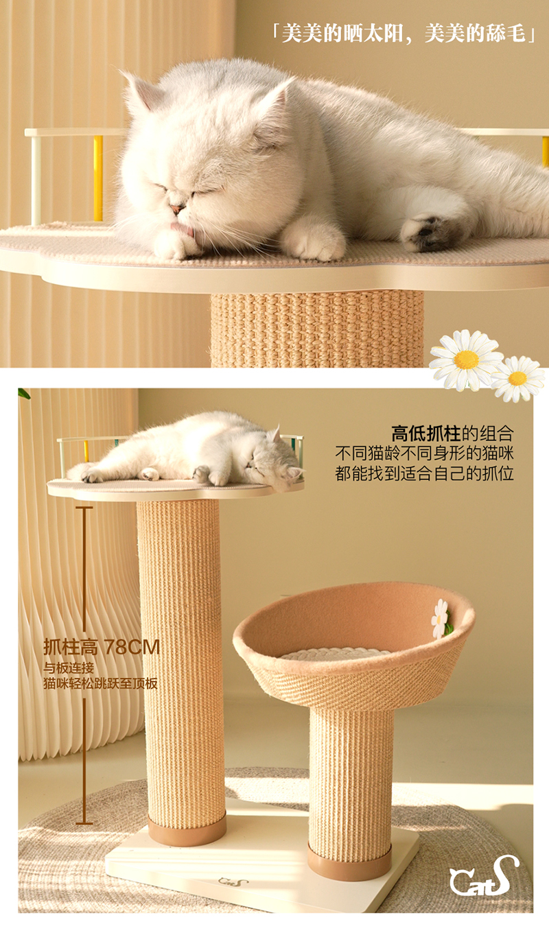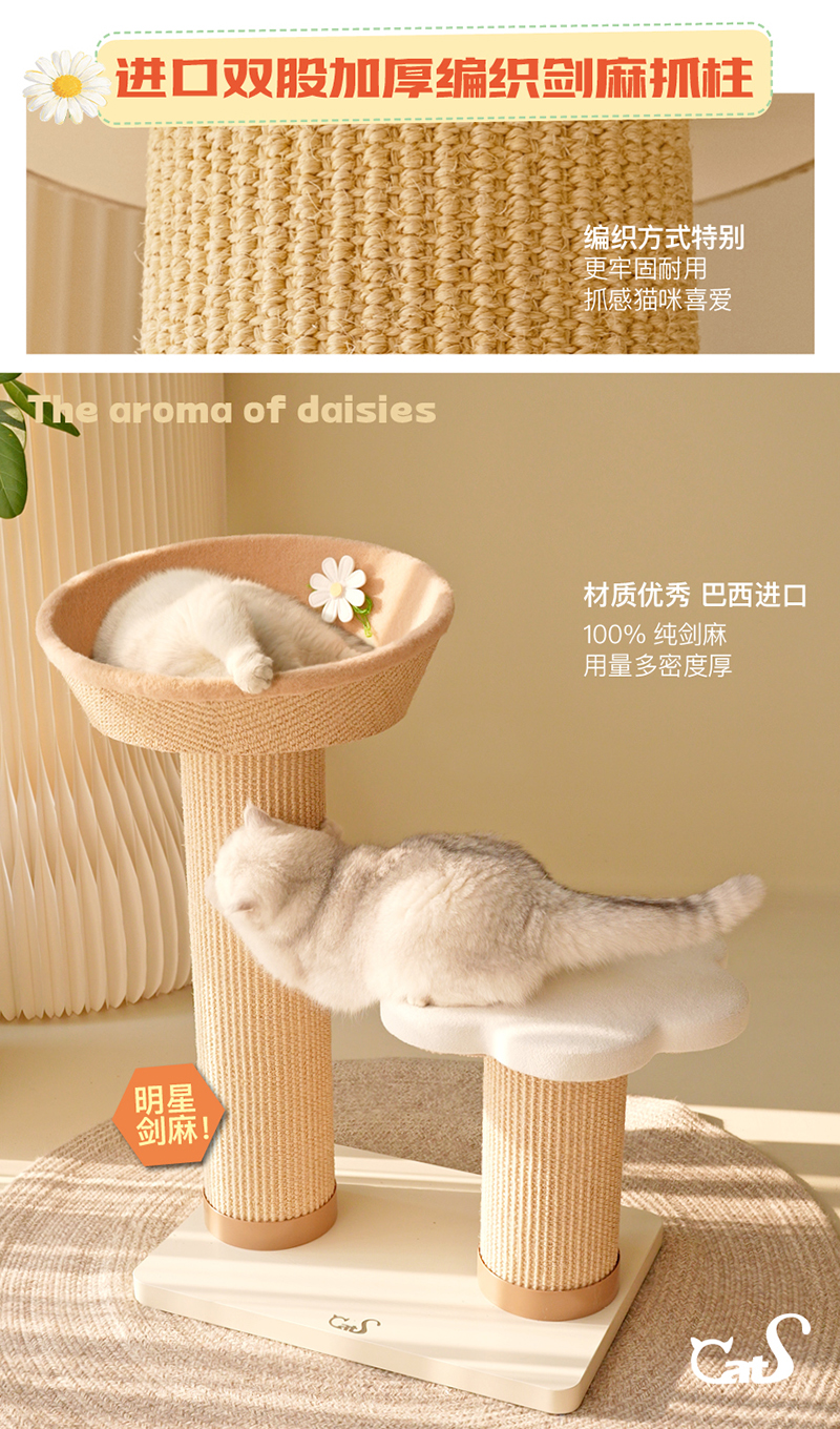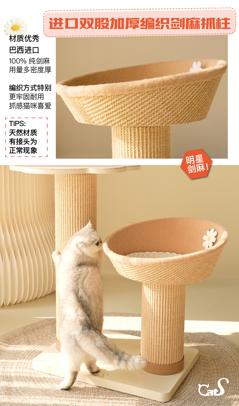 雏菊花栖爬架 超耐抓剑麻实木猫抓板大小体型猫通用