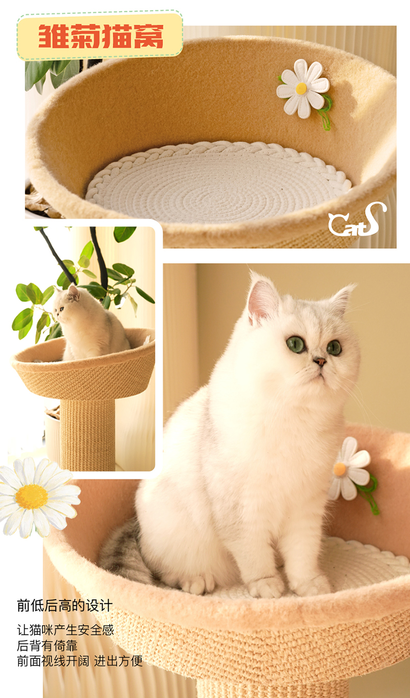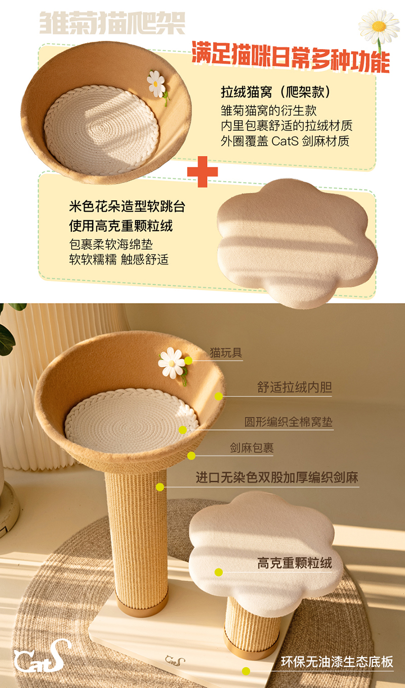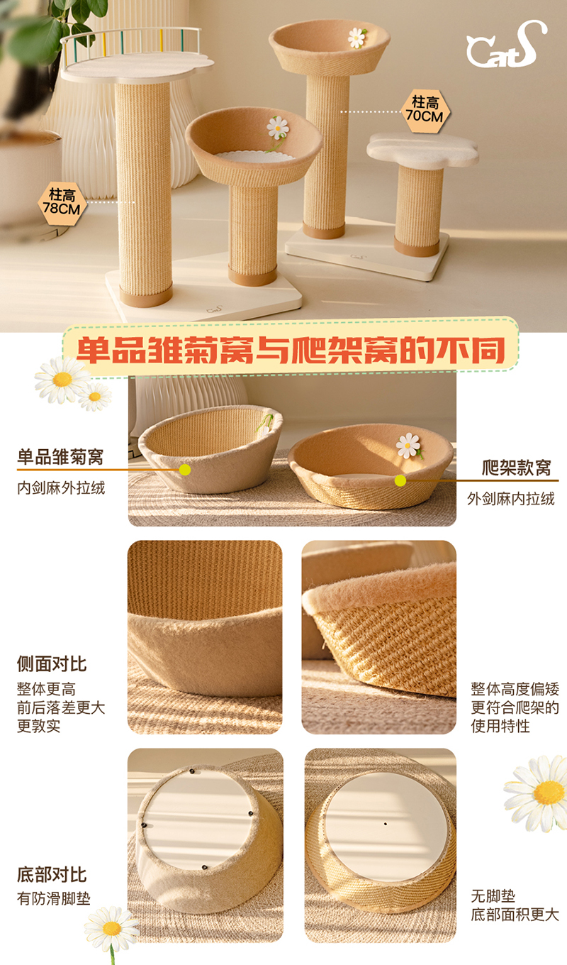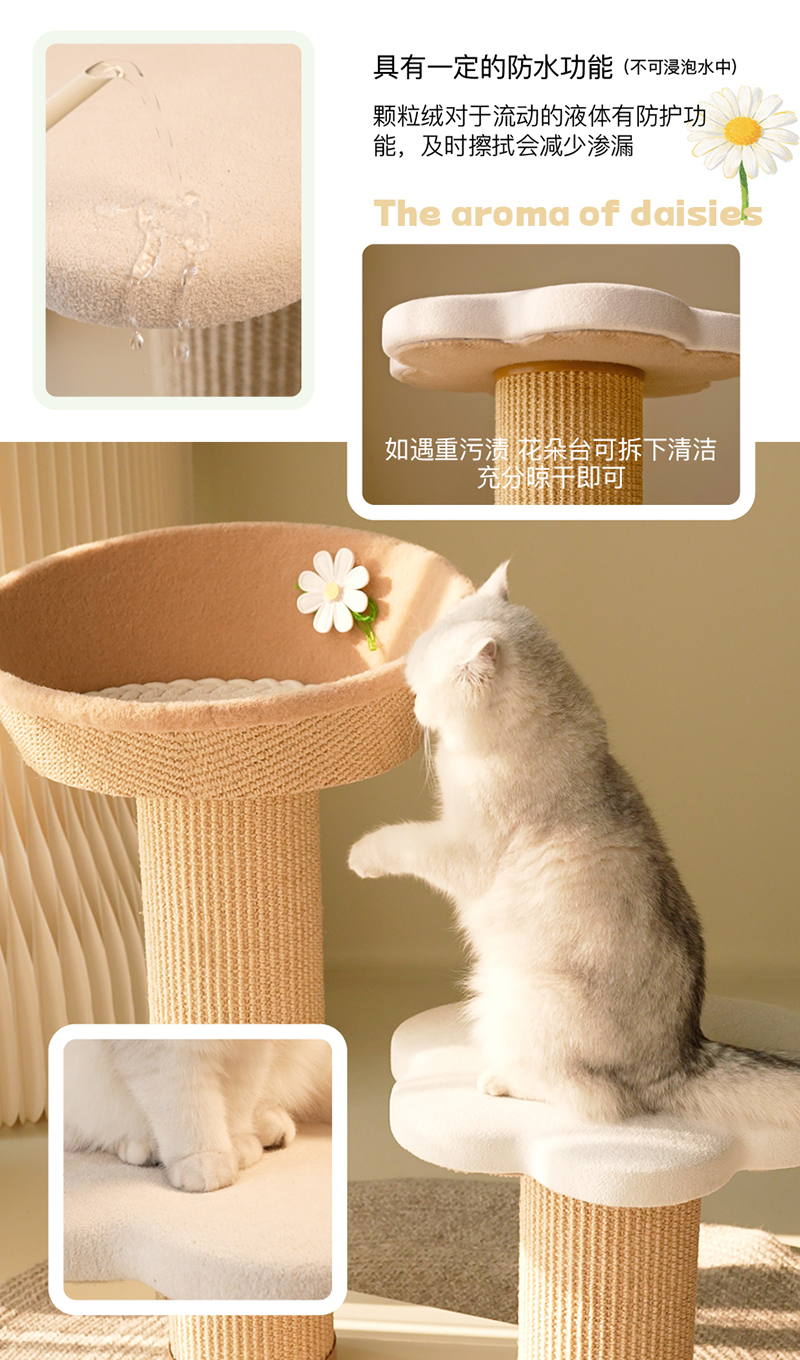 雏菊花栖爬架 超耐抓剑麻实木猫抓板大小体型猫通用
