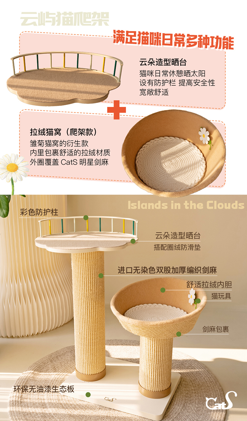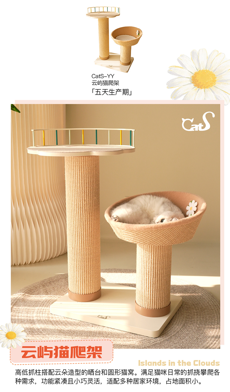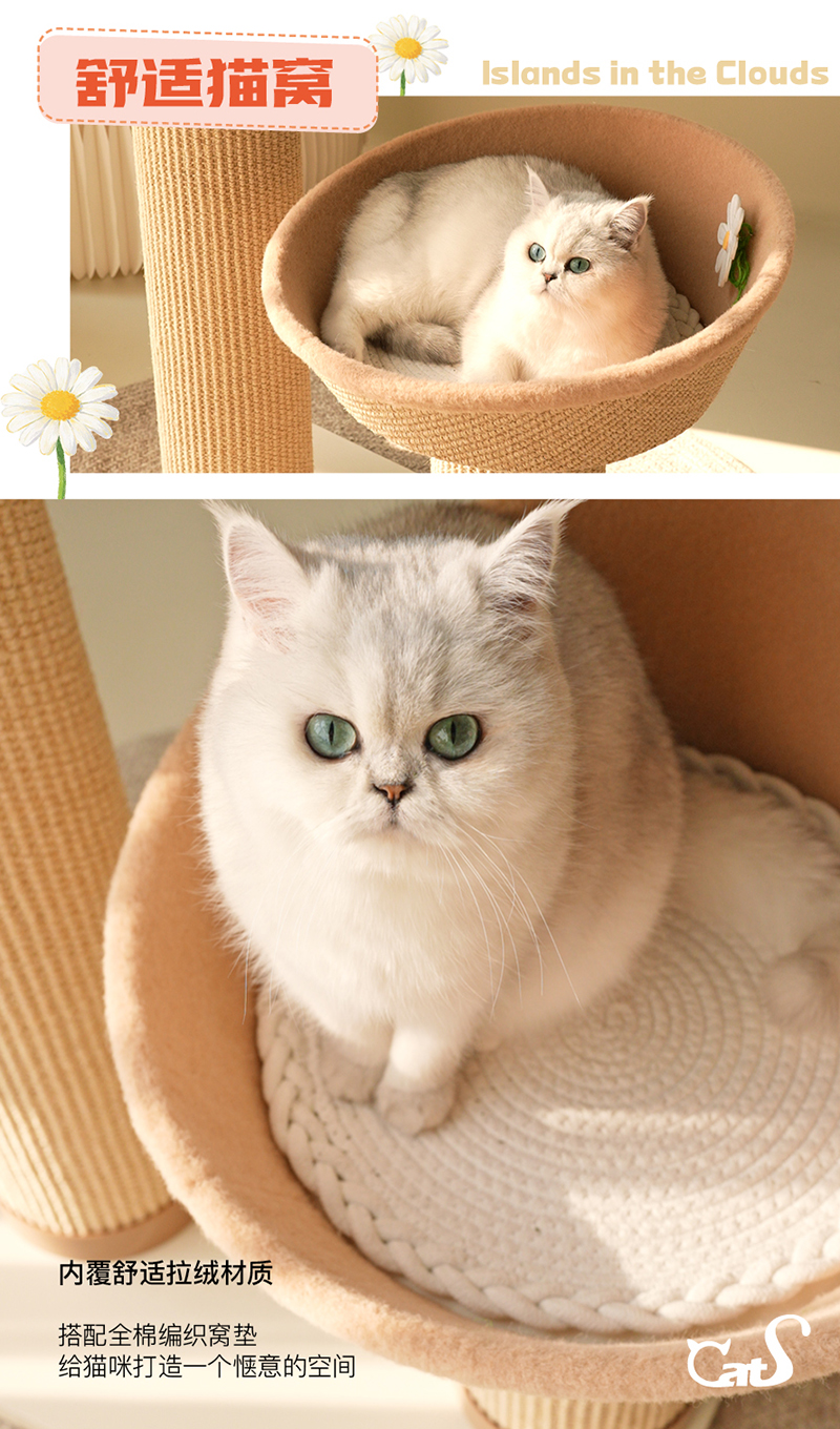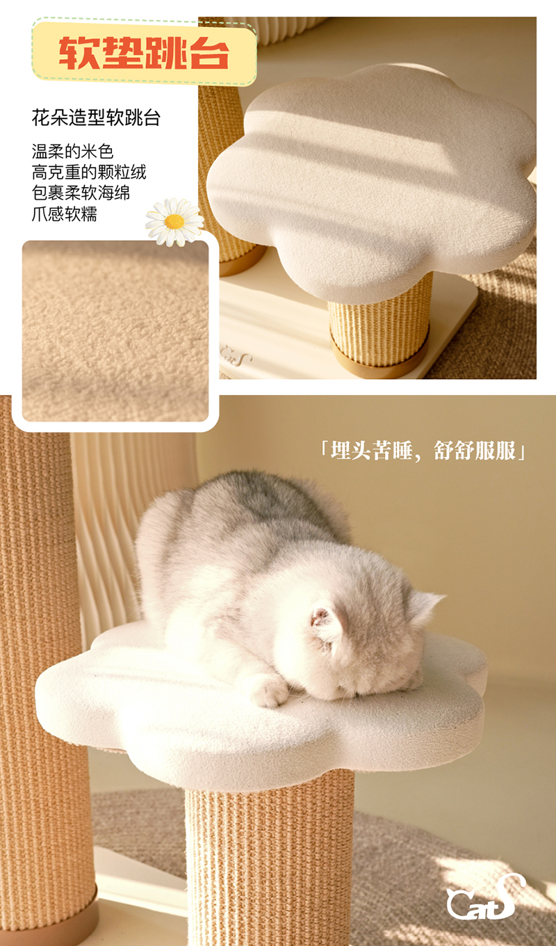 雏菊花栖爬架 超耐抓剑麻实木猫抓板大小体型猫通用
