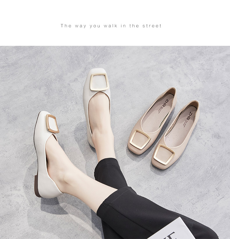 ZHR平底蛋卷鞋通勤鞋奶奶鞋女豆豆鞋子女皮鞋浅口女单鞋女鞋