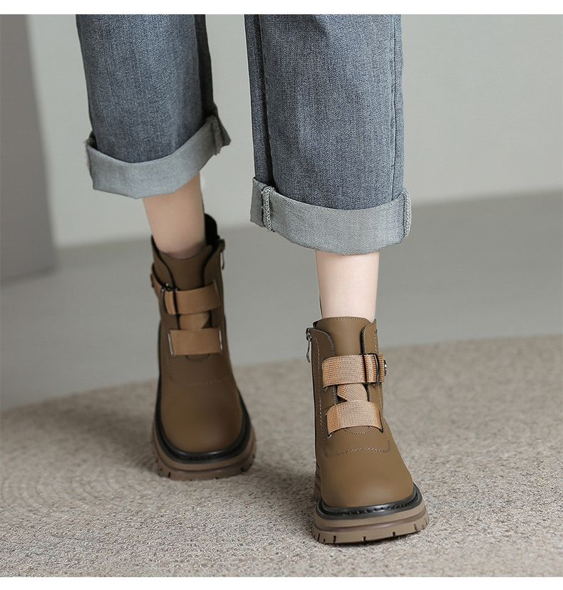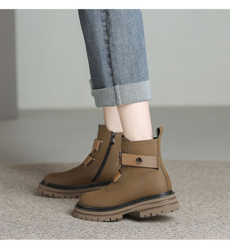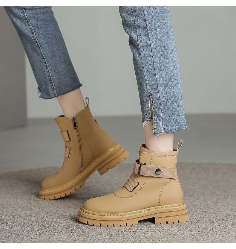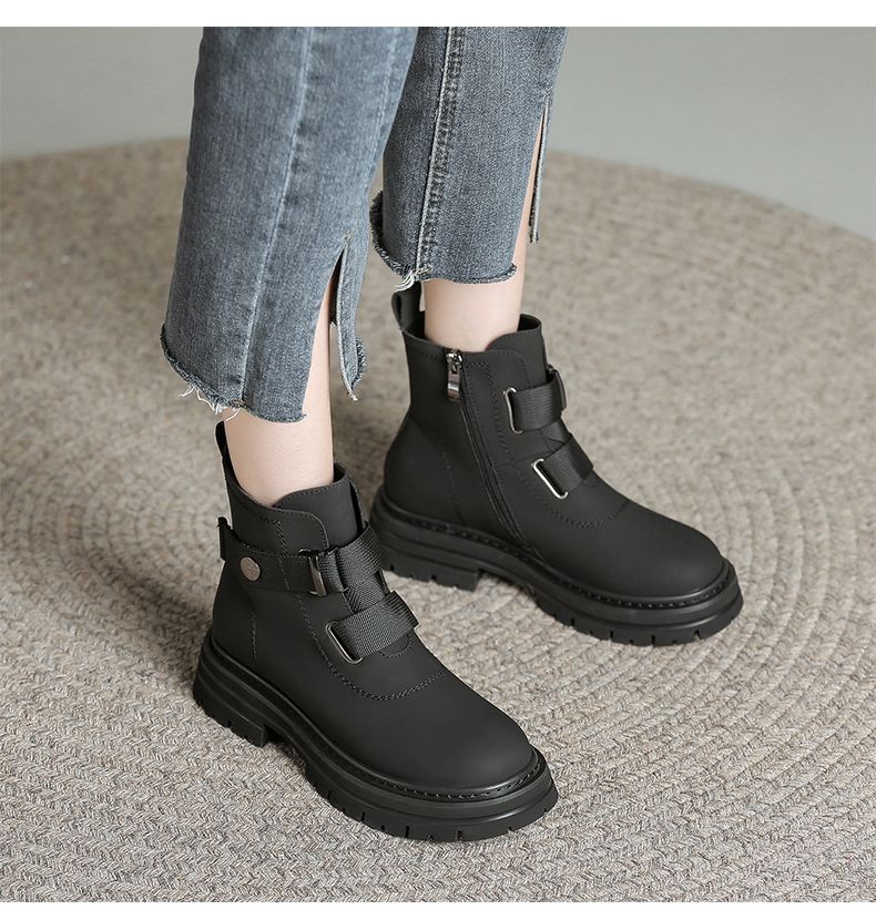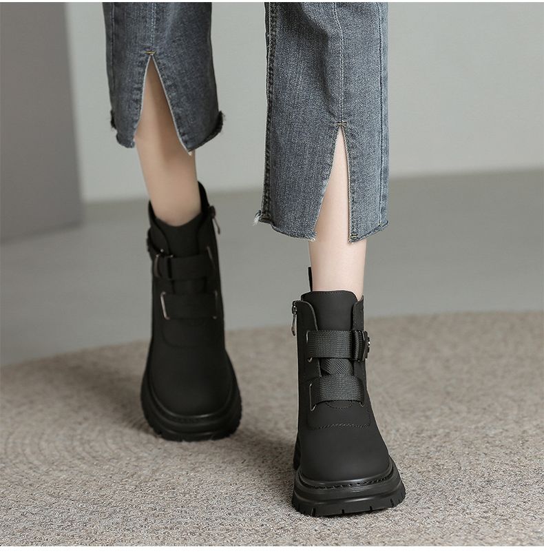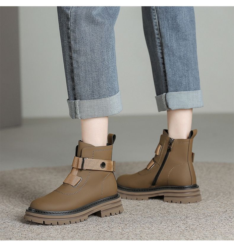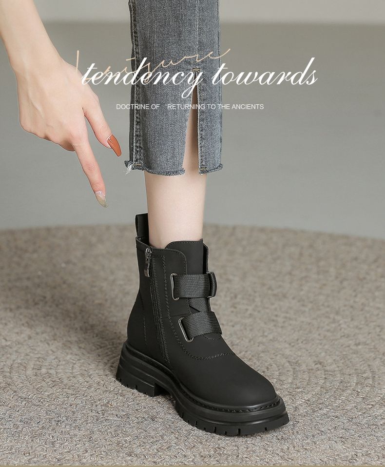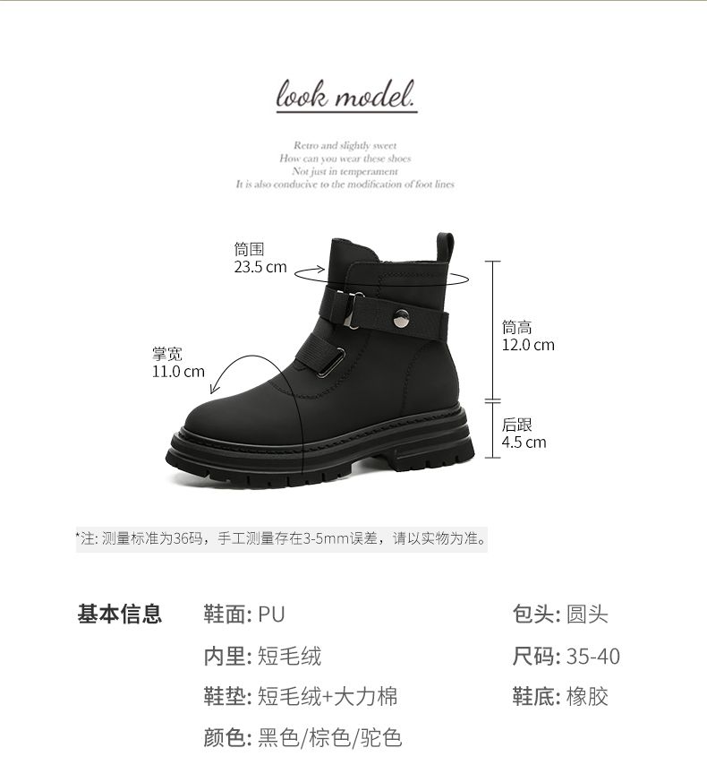 ZHR加绒马丁靴女英伦风厚底短靴女2023新款马丁靴秋冬款百搭女靴