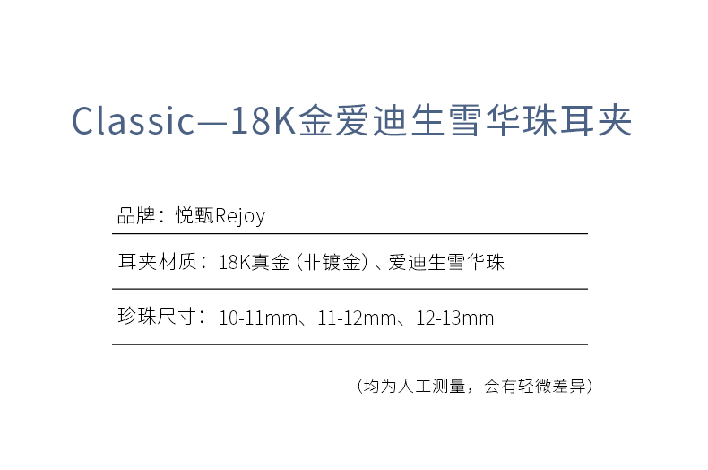 【天猫同款】18k金最高等级爱迪生雪华珠耳夹 classic