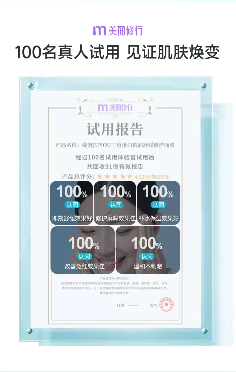 绽妍三重蛋白精润舒缓修护面膜补水保湿修护舒缓泛红干痒红敏感肌
