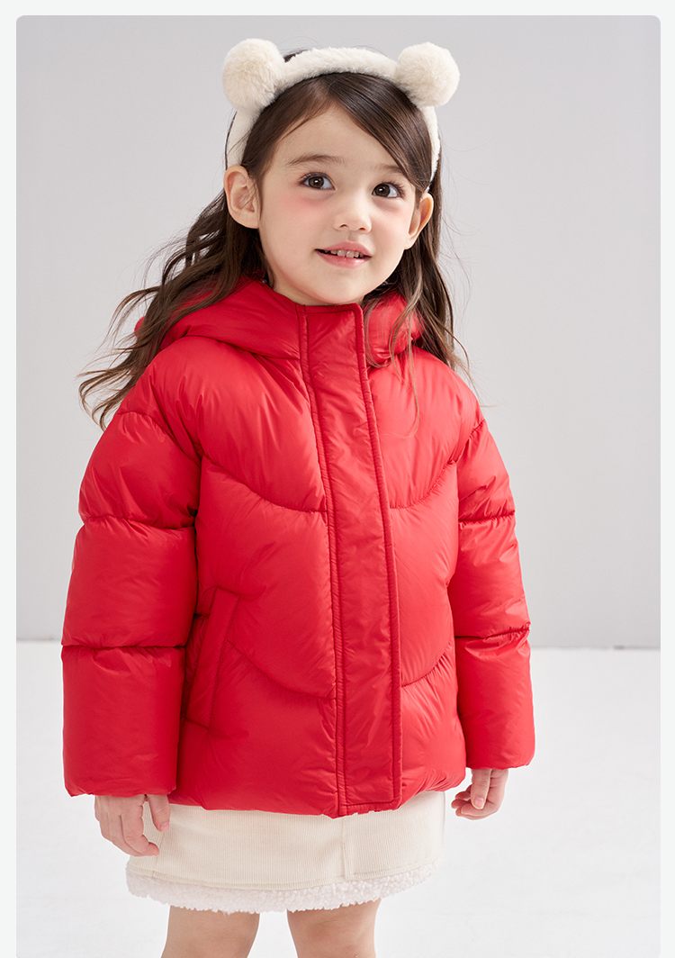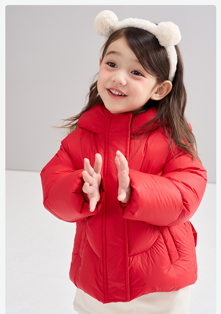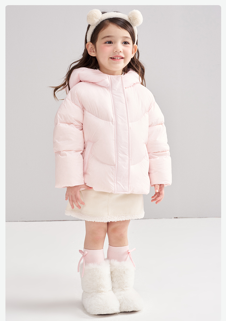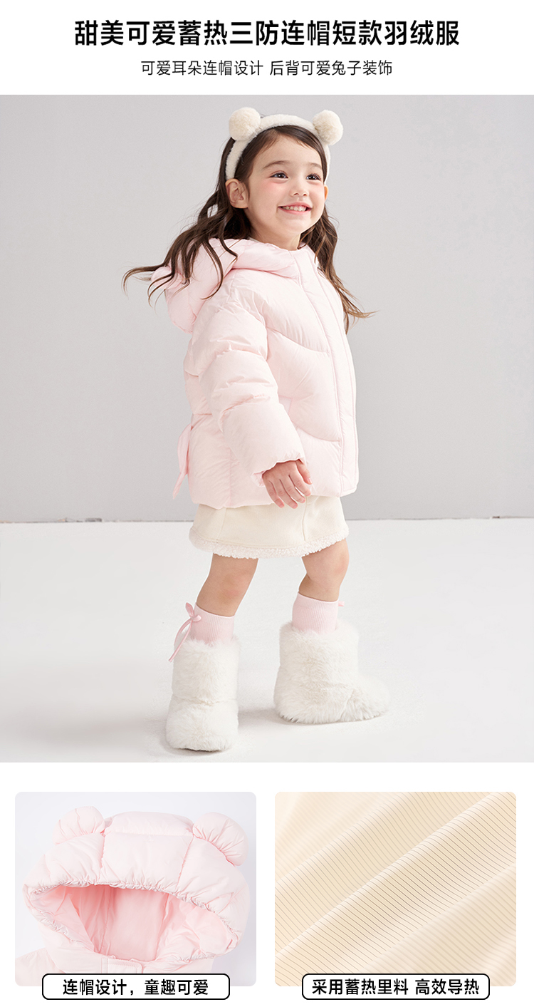 笛莎Deesha 2025冬季女童甜美可爱蓄热三防连帽短款羽绒服