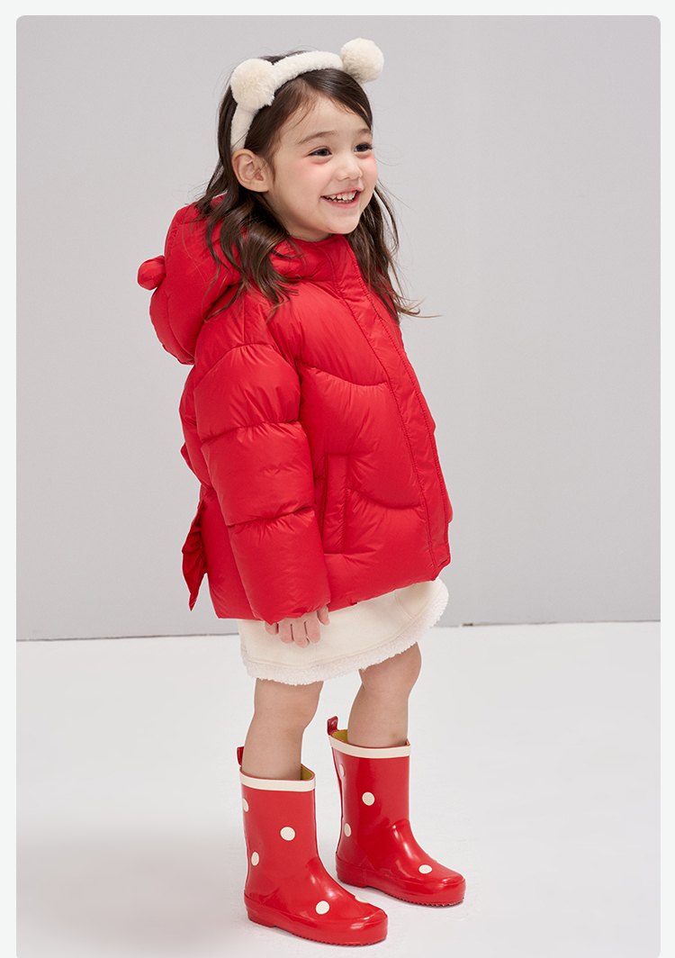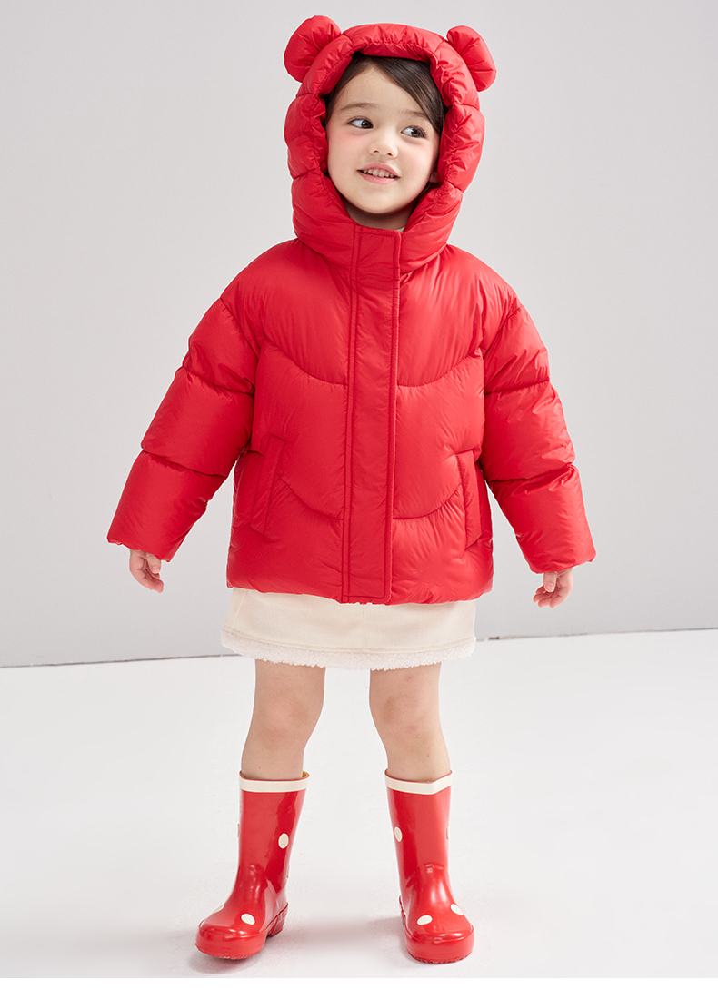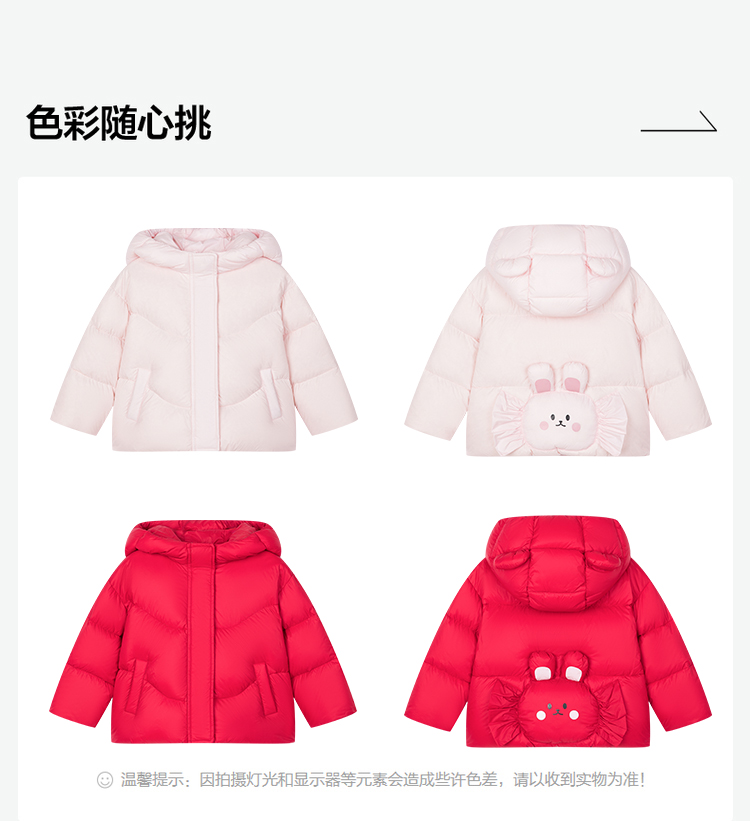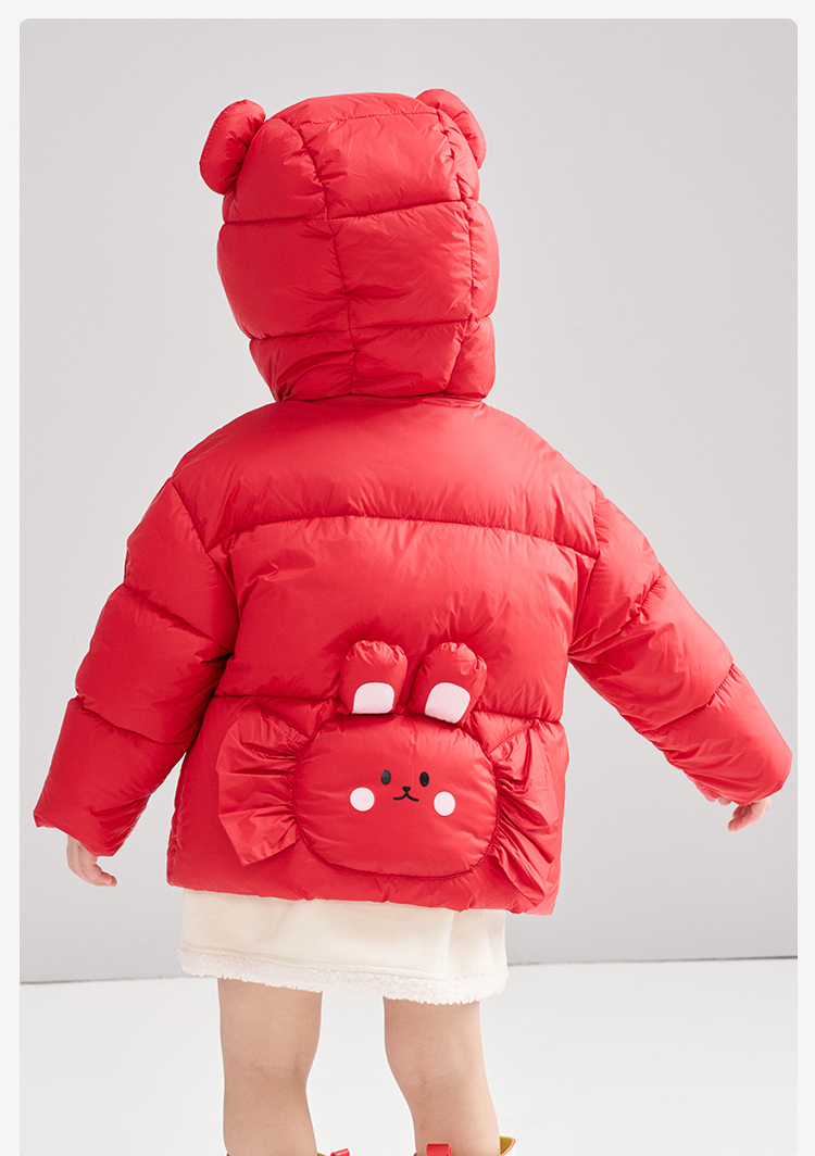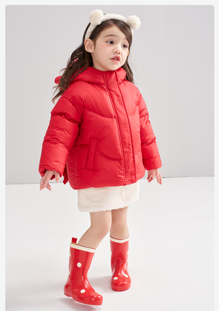 笛莎Deesha 2025冬季女童甜美可爱蓄热三防连帽短款羽绒服