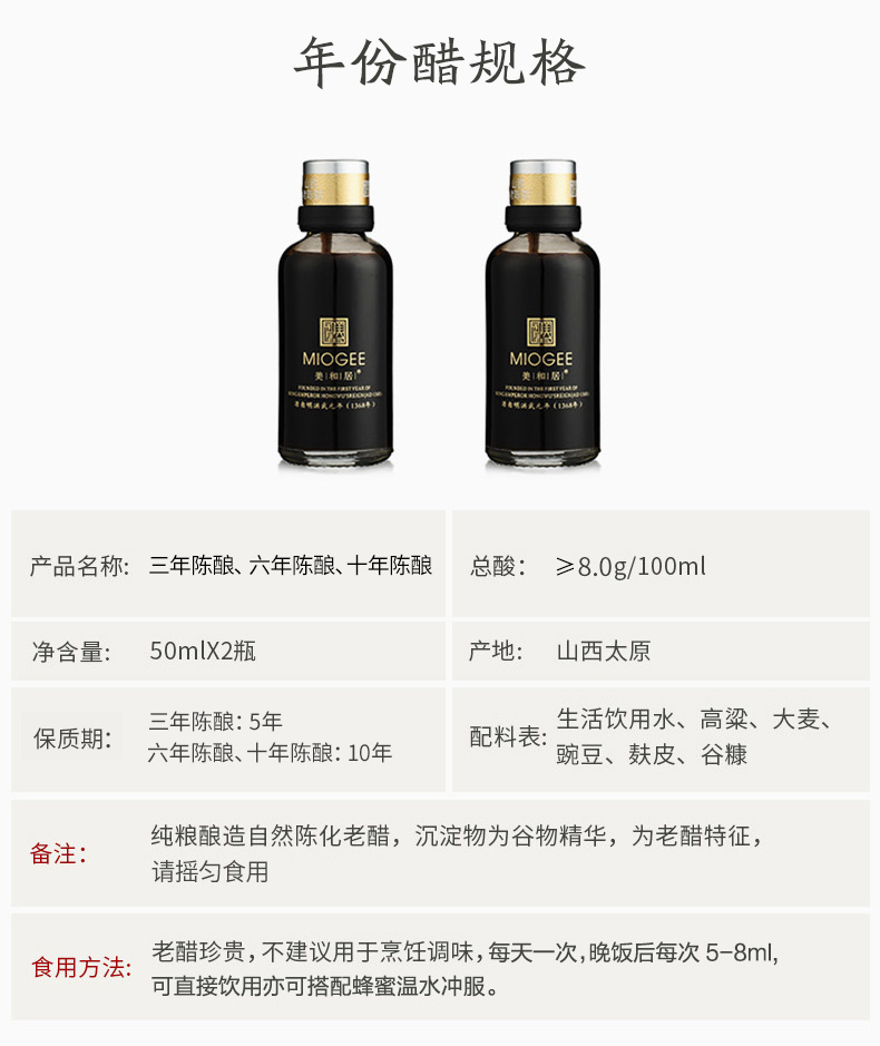 非遗工艺手工酿造的老陈醋 50ml*2(年份醋)/500ml(原味醋)【开封后不支持七天无理由退换,外包装为一次性包装耗材需扣除费用】