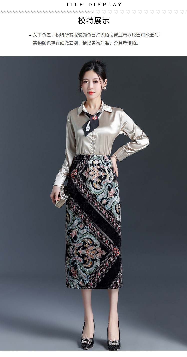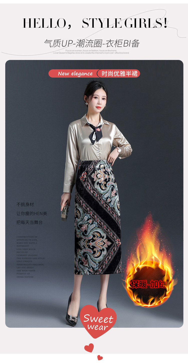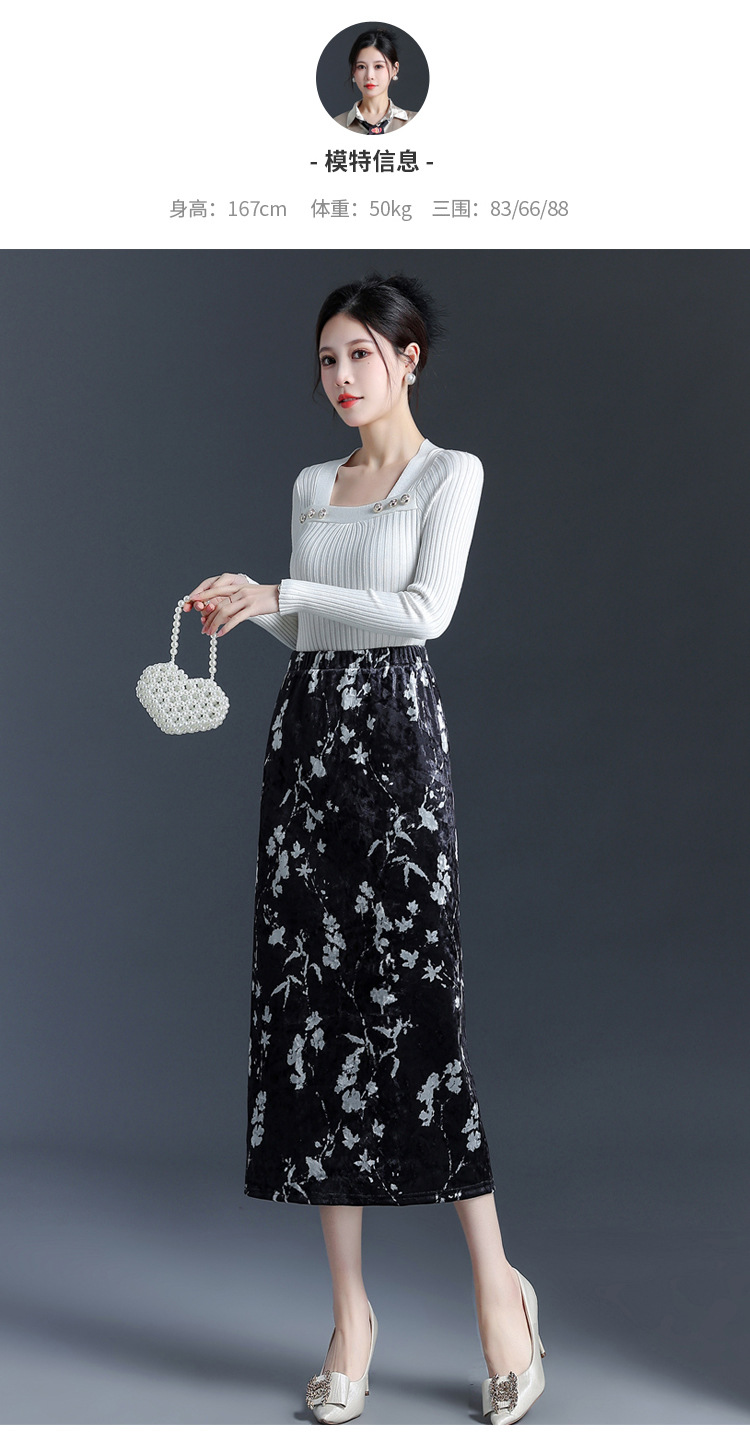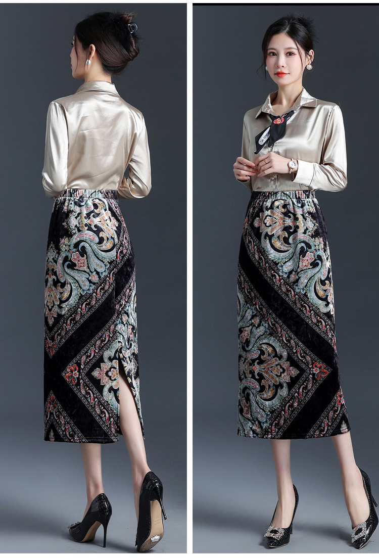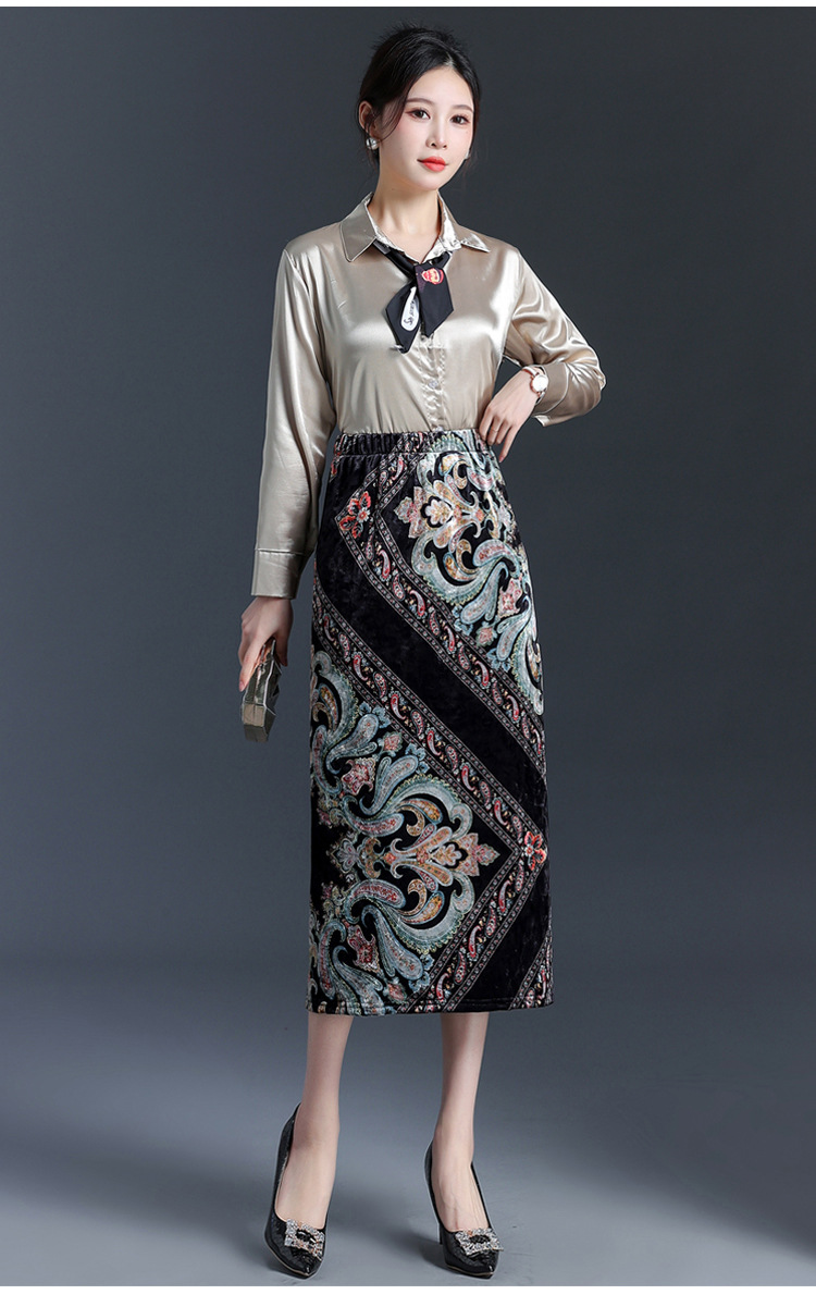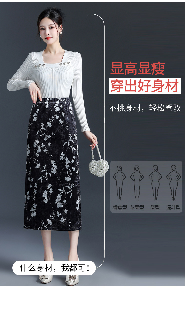 印花中长款通勤优雅时尚包臀裙,秋冬款高腰修身气质半身裙MYX-6713