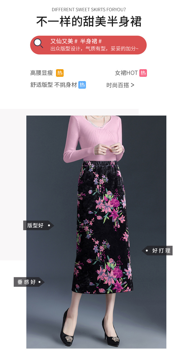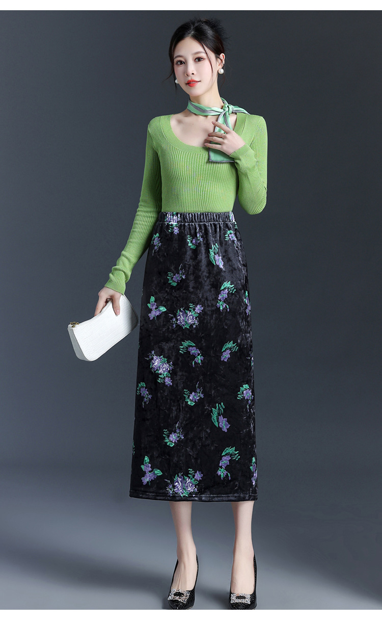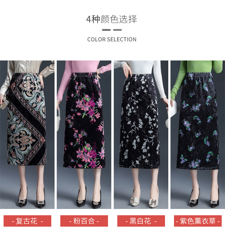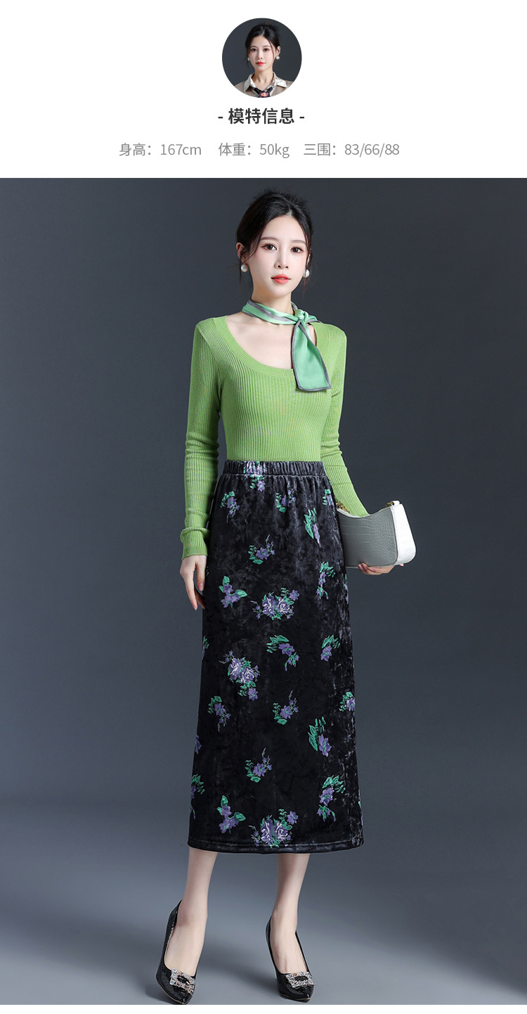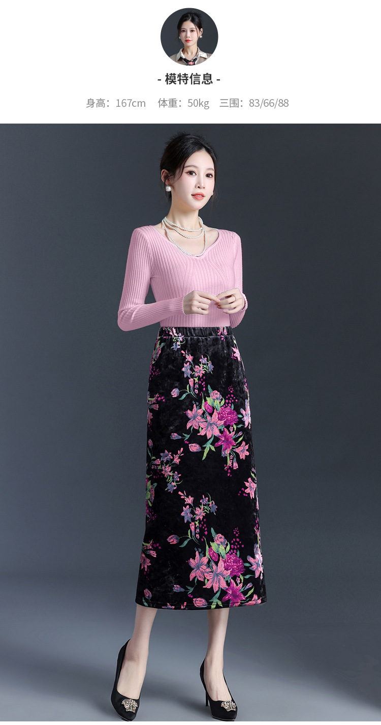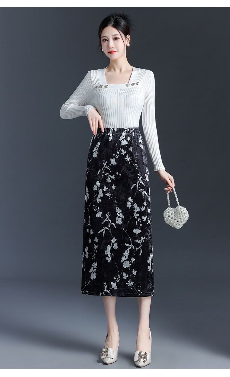 印花中长款通勤优雅时尚包臀裙,秋冬款高腰修身气质半身裙MYX-6713