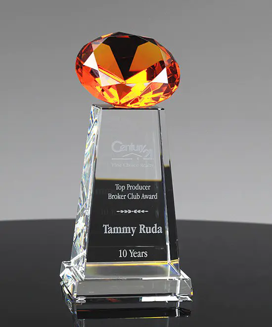 金色创意水晶奖杯刻字定制