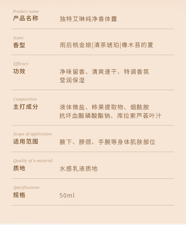 独特艾琳纯净香体露-清茶琥珀/雨后桃金娘/橡木苔的夏
