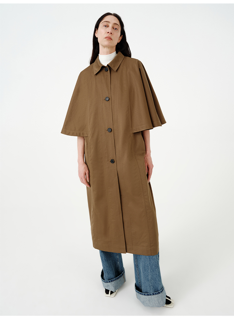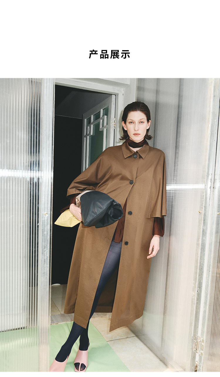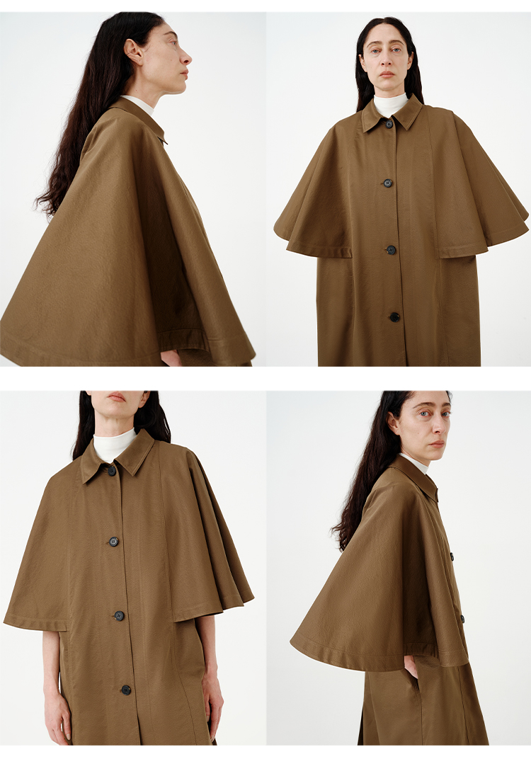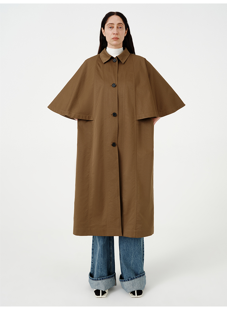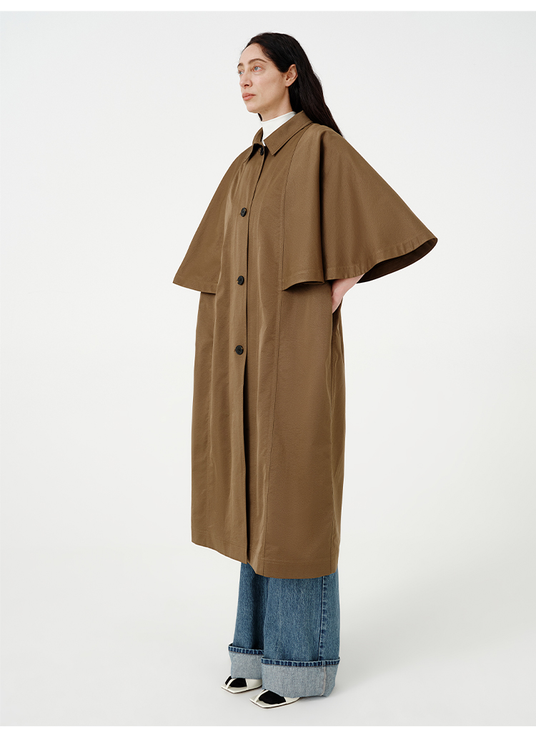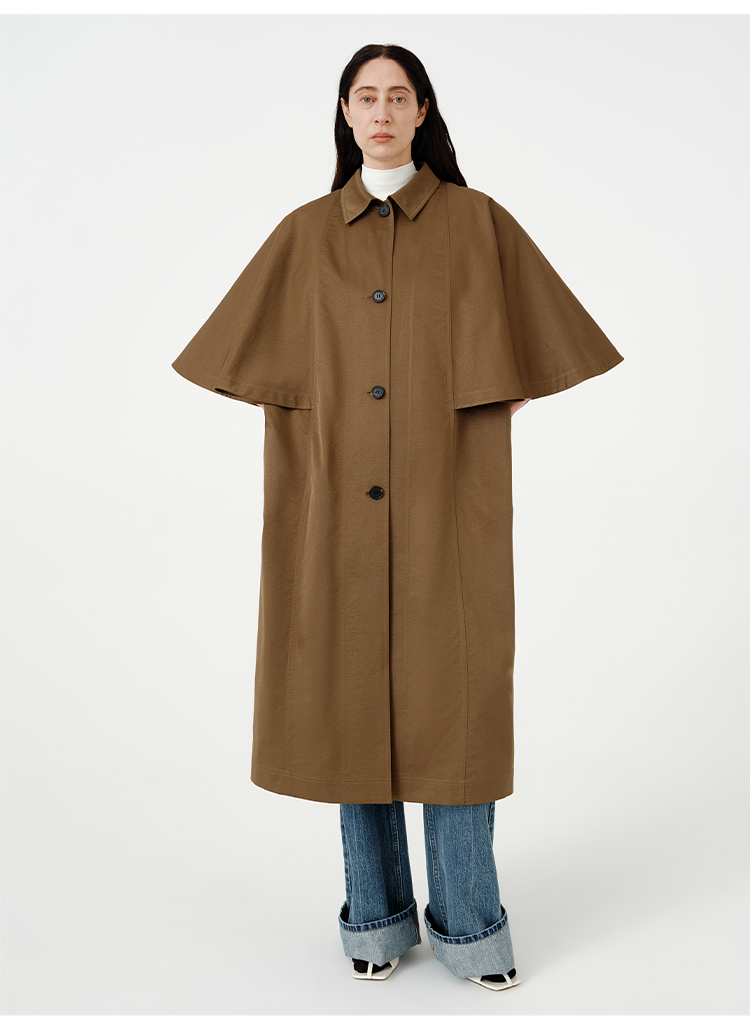 HIDEMI 极简斗篷设计感大廓形翻领复古长款风衣