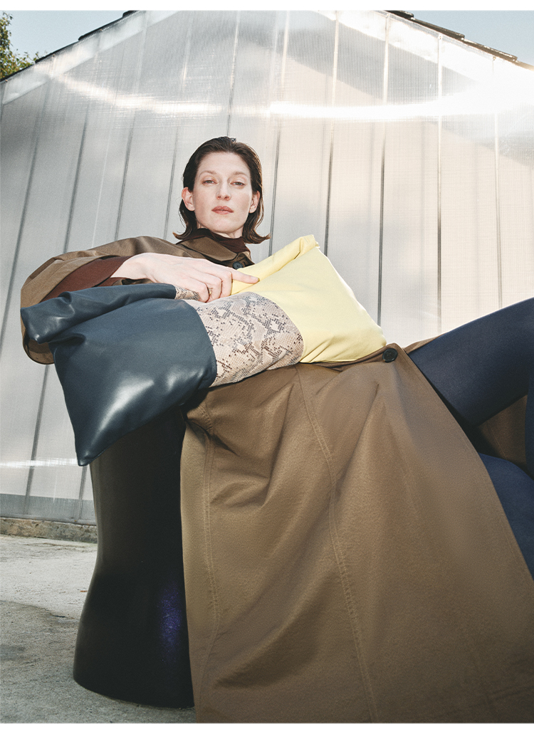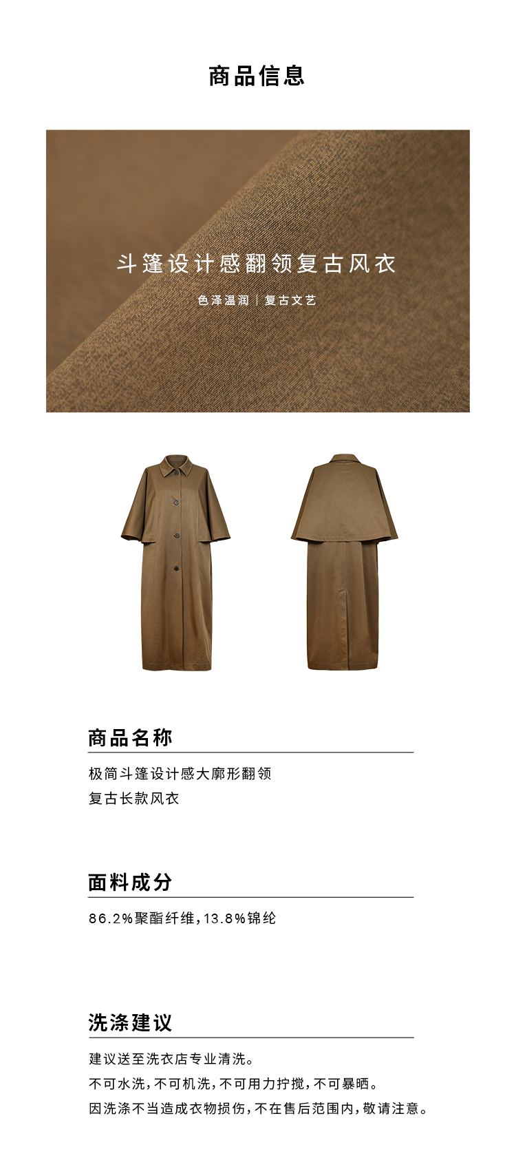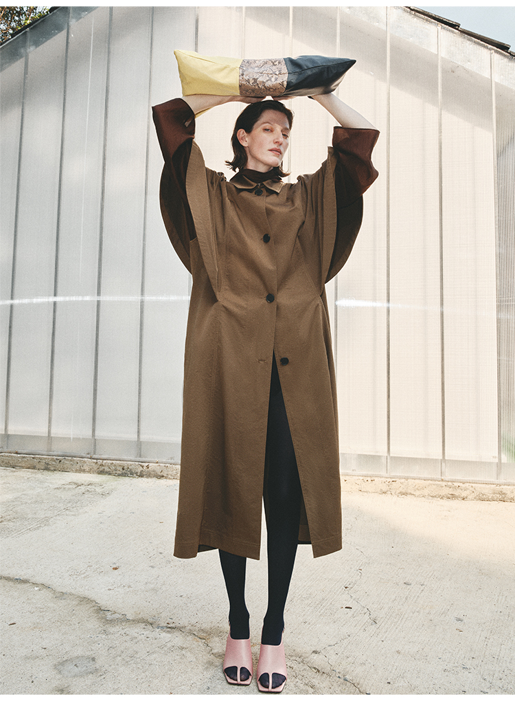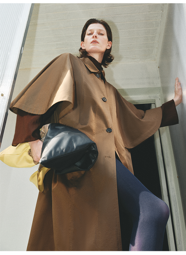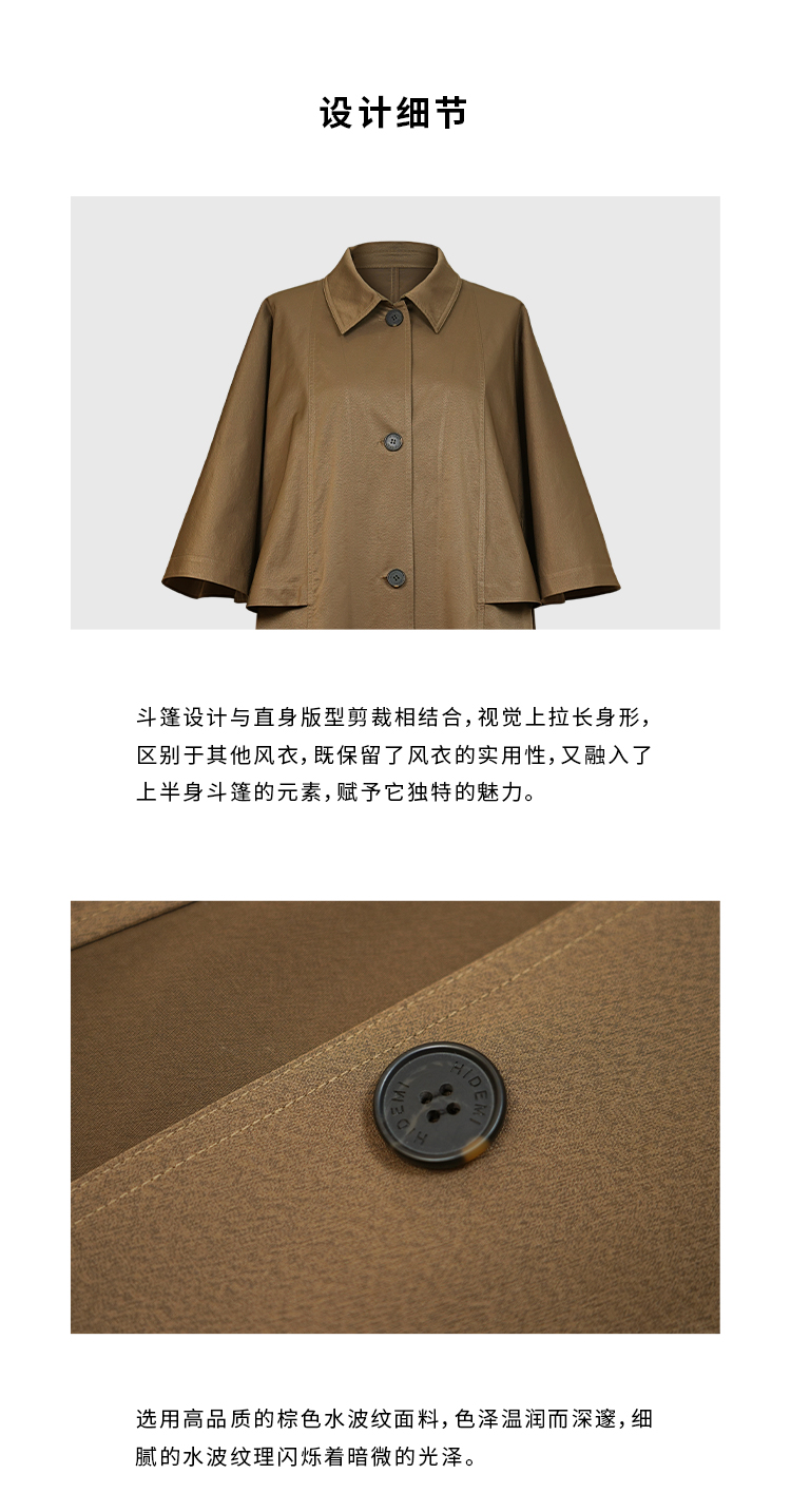HIDEMI 极简斗篷设计感大廓形翻领复古长款风衣