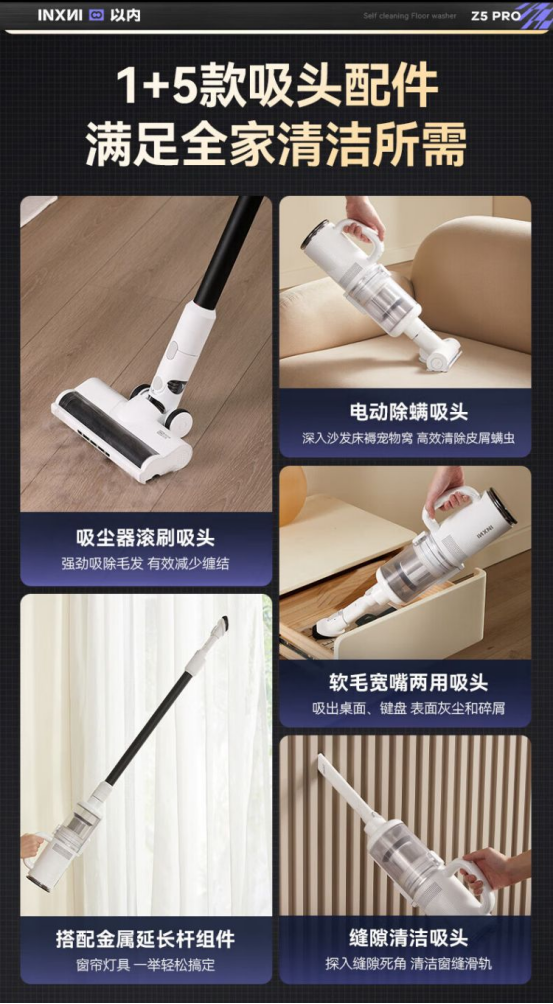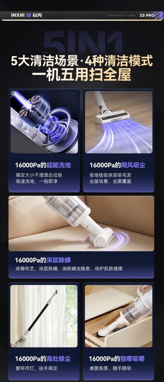 🌸【INXNI以内五合一多功能洗地机Z5pro】💰 ✅五合一多功能洗地机🍉(洗地/吸尘/除螨/扁吸/长吸)⭕️ ✅4000mAh 超长续航; ⚠️16000Pa超强飓风大吸力