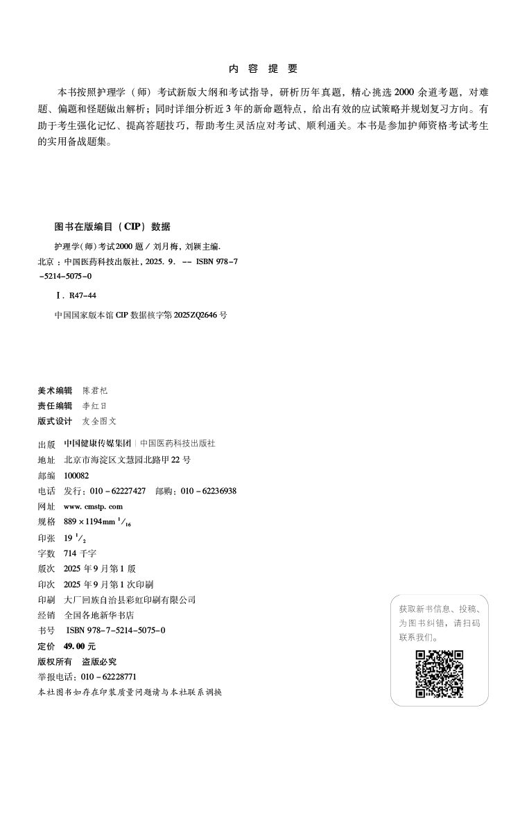 2026护理学(师)考试通关2000题 护考应急包 刘月梅 刘颖 主编 护师资格考试考生的实用备战题集9787521450750中国医药科技出版社