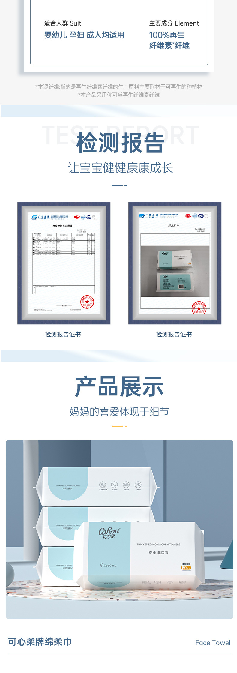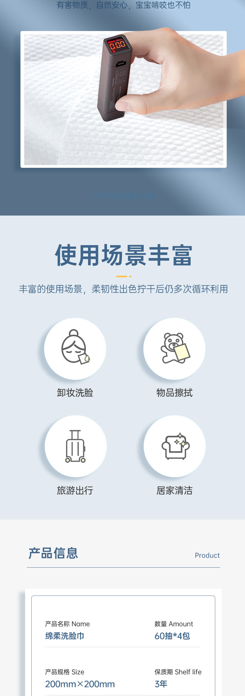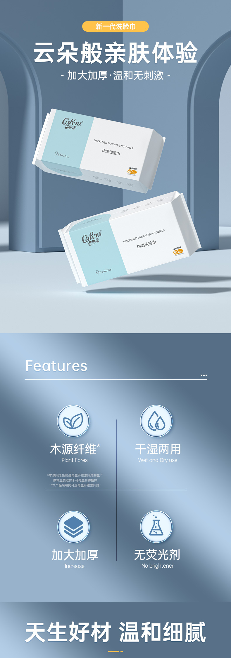 可心柔婴儿植物绵柔巾新生儿干湿两用洗脸巾加厚绵柔巾60抽4包MJ60-4