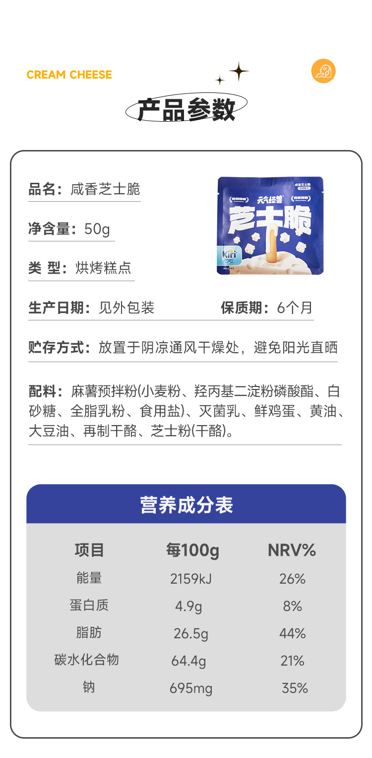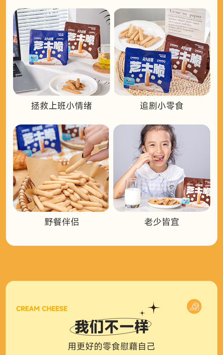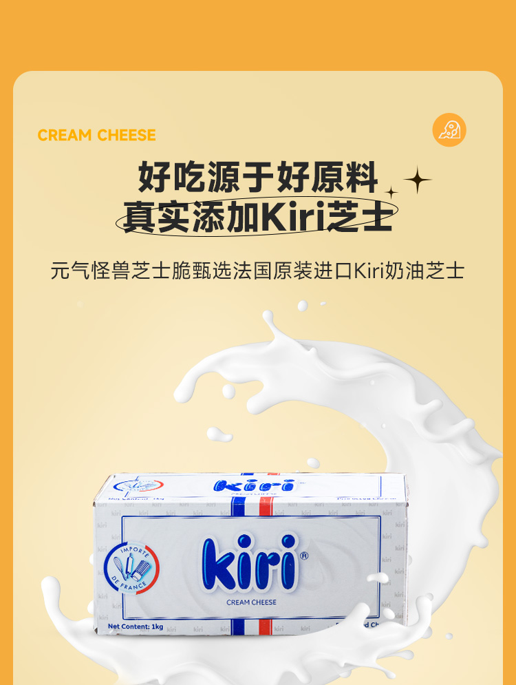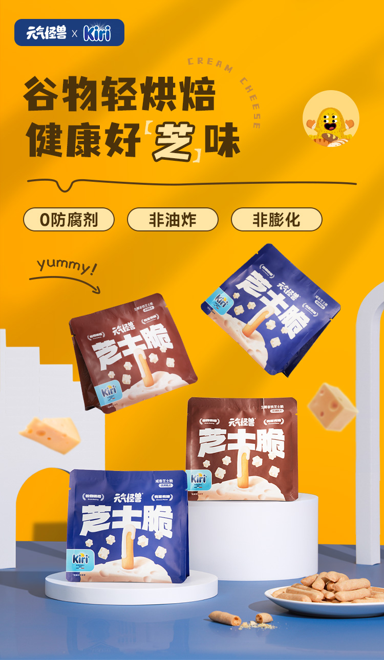 元气怪兽 x Kiri芝士脆 进口优质原材料 谷物烘烤 浓郁芝士非油炸 混合口味手指饼干 休闲解馋零食50g/包