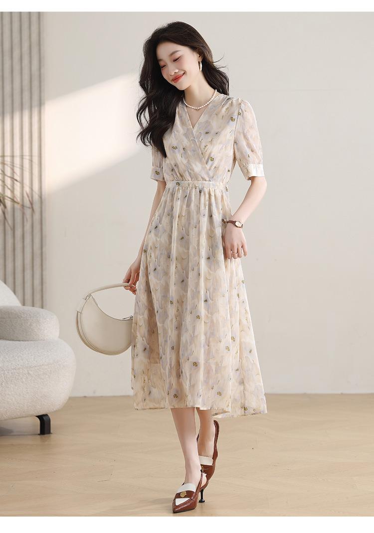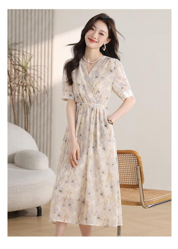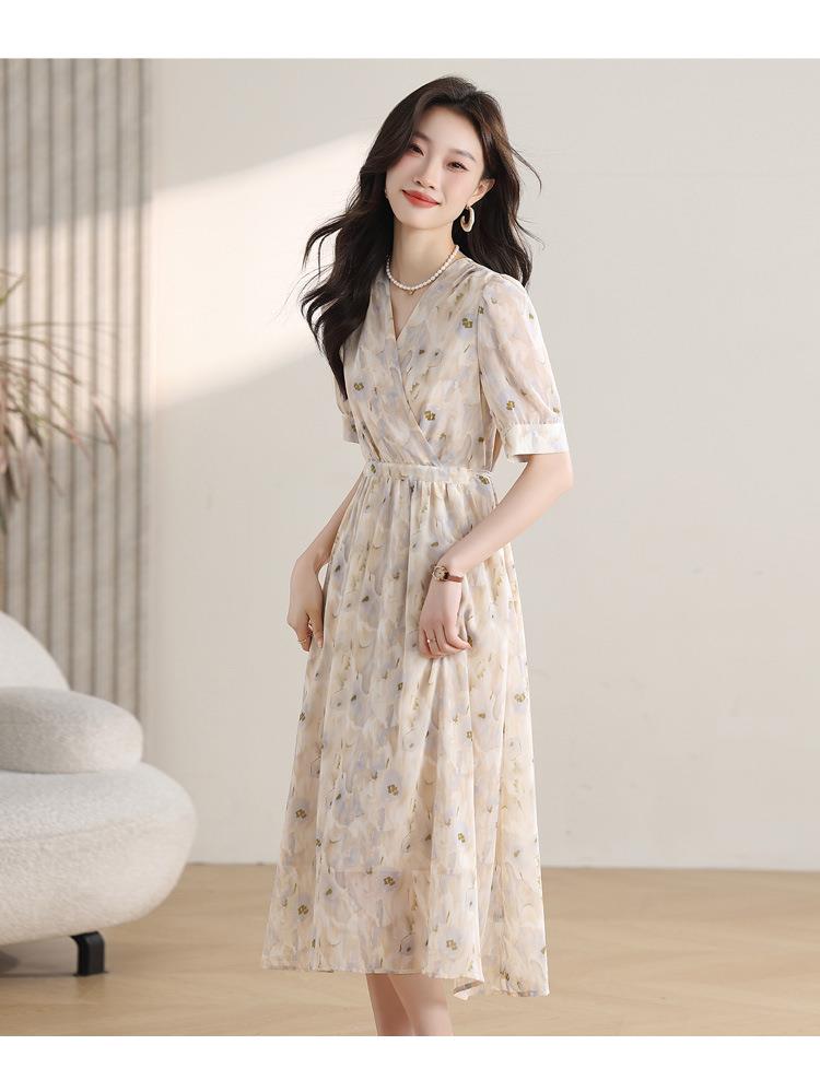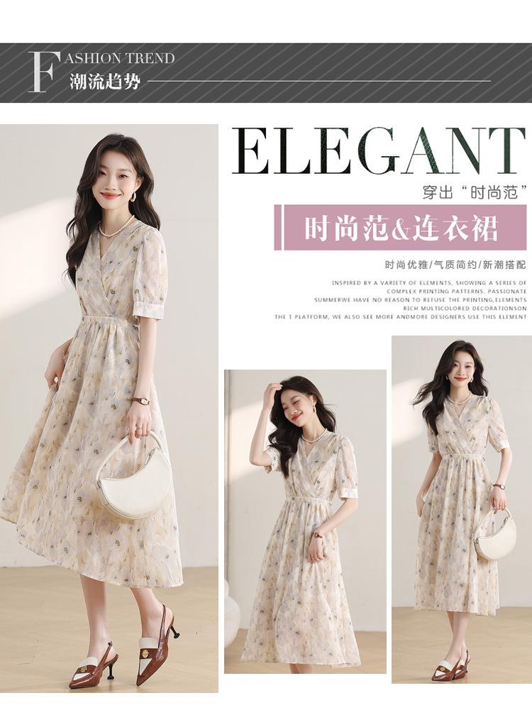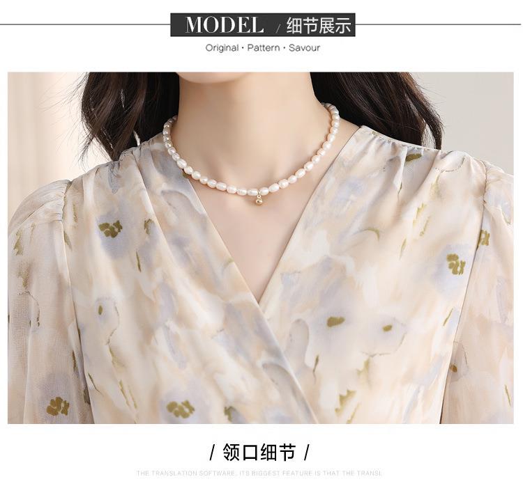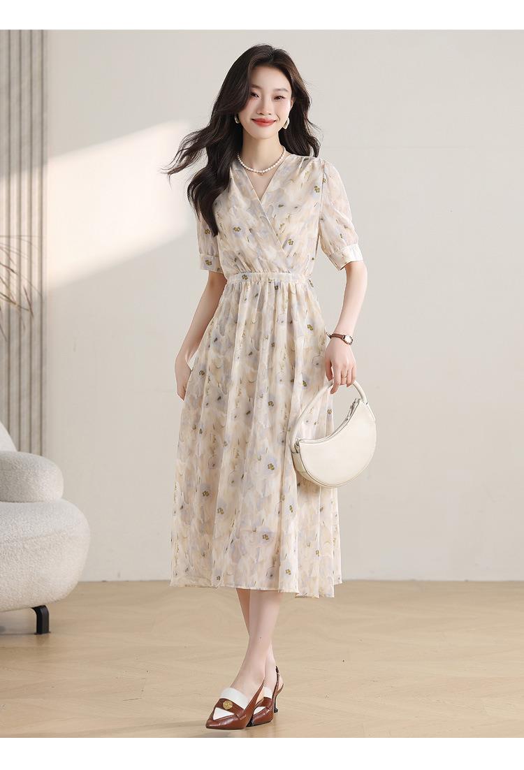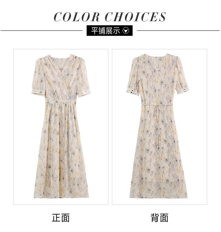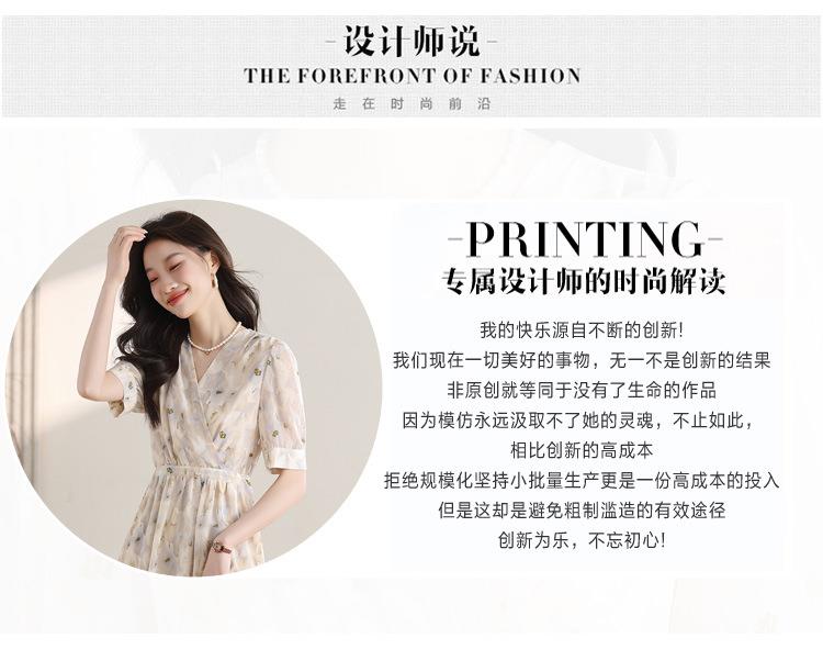 温柔风碎花连衣裙子女装夏季2024新款茶歇法式高级感显瘦v领长裙