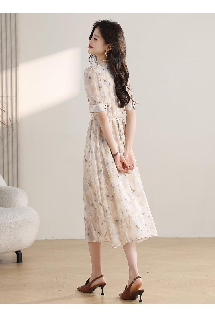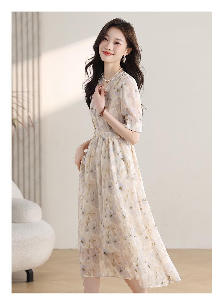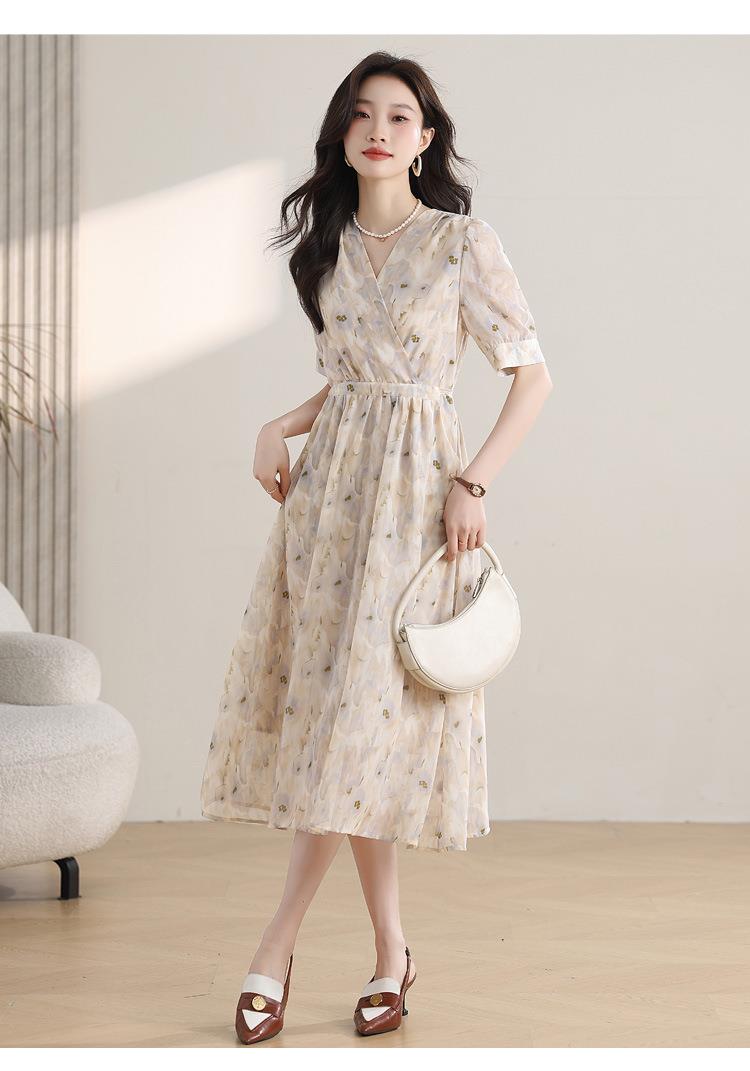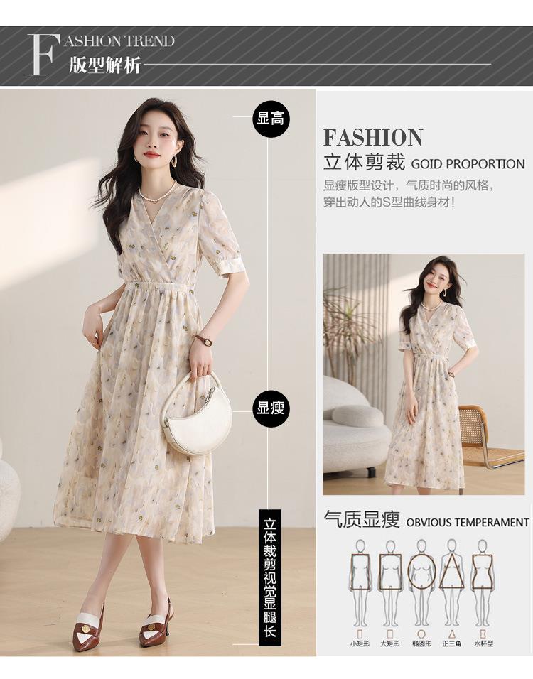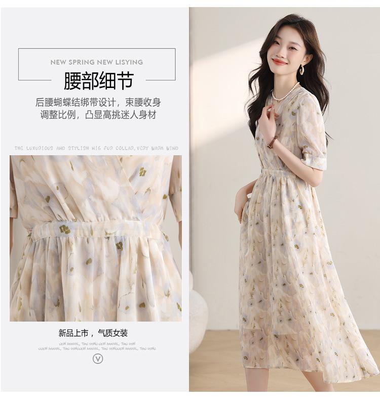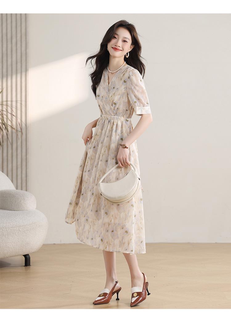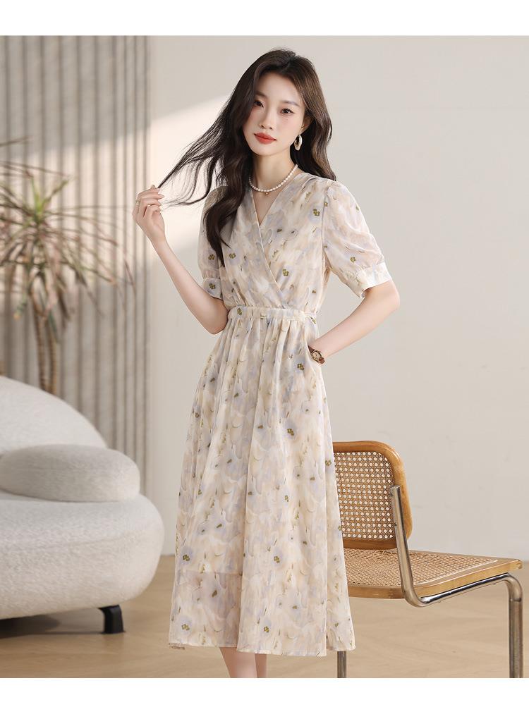 温柔风碎花连衣裙子女装夏季2024新款茶歇法式高级感显瘦v领长裙